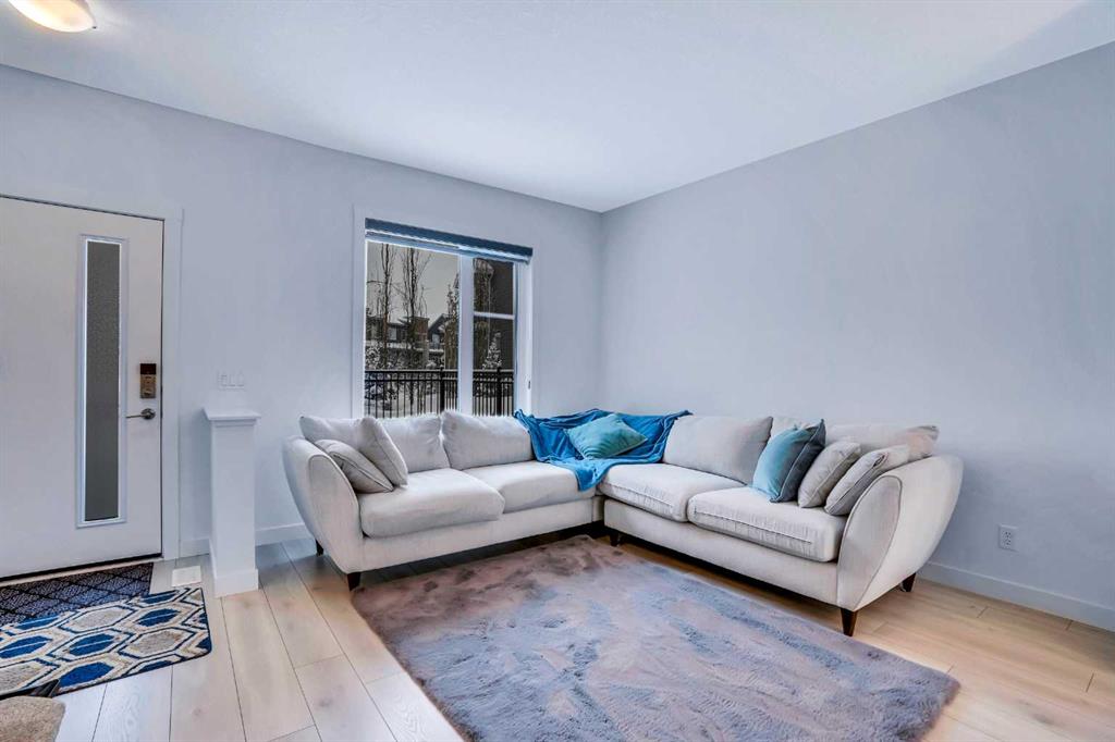 Experience contemporary living in the heart of Livingston with this bright and spacious 3-bedroom, 2.5-bathroom townhouse. Ideally located within walking distance to the future community hub, this home offers both comfort and convenience in one of Calgary’s most exciting up-and-coming neighborhoods. Step inside to discover an open-concept layout featuring 9-foot ceilings and expansive windows that flood the space with natural light. The modern kitchen is a chef’s dream, complete with a large island, quartz countertops, and sleek finishes. Just off the kitchen, a built-in work nook provides a flexible space for a home office or study area. Upstairs, you'll find three generously sized bedrooms, including a serene primary suite with a walk-in closet and private ensuite bathroom. Additional features include ample storage and a double attached garage for added convenience. Enjoy the outdoors on your private, fenced front patio — perfect for relaxing or entertaining. Livingston is a thoughtfully master-planned community offering scenic walking paths, parks, and easy access to major roadways and future amenities at the community hub.