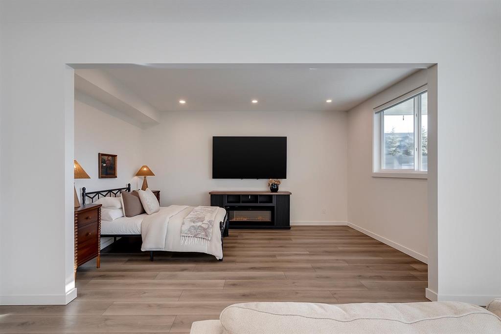 Welcome to 161 Kingsmere Cove SE, where thoughtful design meets refined living. Nestled in a quiet cul-de-sac, on an pie shaped lot just shy of 9,000 sq. ft., this pristine walkout home backs onto a tranquil pond and walking path. Offering picturesque views, privacy and a safe family-friendly connection to nature; this home captivates as you enter. Inside, a soaring 22’ ceiling frames the striking stone surround gas fireplace, filling the open concept layout with warmth and natural light through the expansive windows. The chef-inspired kitchen features granite countertops, soft-close cabinetry, a walk-through pantry, and a large island overlooking the dining area; perfect for cooking, conversation, and connection. The thoughtful layout lets you flow from inside to the balcony, which is complete with two gas lines. Here you can unwind with southwest-facing sunset views over the water. Upstairs, you'll find three generous bedrooms including the primary, a bright bonus room and laundry. The primary oasis offers vaulted ceilings, a spa-like 5-pc ensuite with heated floors, soaker tub, six jet shower, dual sinks, and walk-in closet. The upper laundry adds convenience with its sink, shelving, and countertop workspace. The finished walkout basement expands living to 3,168 sq. ft., ideal for a 4th bedroom, gym, or office space, and includes a 3-pc bath featuring heated floors and a large recreational room for board games or watching your favourite sports team! Outside, you'll love the covered patio, a show stopper for entertaining and lounging alike! This outdoor sanctuary is fully equipped with sprinklers, privacy walls, a gas line, hot tub rough-in that opens to a fully fenced yard including a dog run, a custom shed to match the home, a fully manicured lawn with mature trees, and your own private gate to the pathway for evening strolls in the fall. You can also enjoy skating with your family and neighbours on the pond in winter! This home has received over $160,000 in upgrades since 2019; including new roof, shelving & organizers in the heated triple garage with space for a lift, furnace, A/C, powered shades with solar charging, smart security, composite siding, 6-zone built-in speakers & so much more. No detail was missed in this stunning masterpiece. It blends sophistication, comfort, and lifestyle in perfect harmony! All of this comes with easy access to great schools, parks, playgrounds, shopping & the new HWY 2 intersection at 40th Avenue.