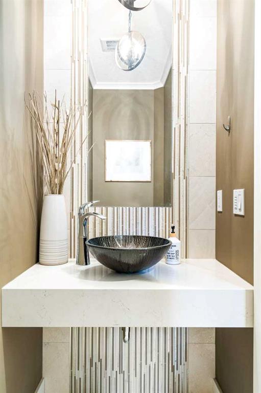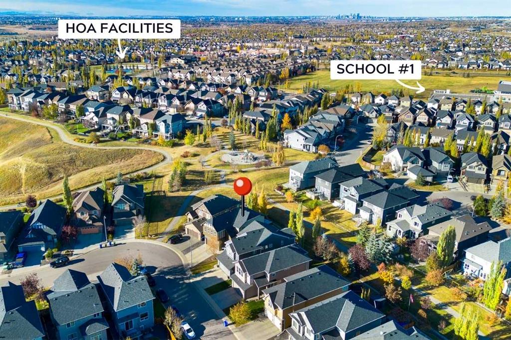 *See links for video, virtual tour, floor plans, and more!* Imagine a distinctively crafted family home, meticulously upgraded and enhanced from top to bottom with uncompromising taste and skill. Welcome to 163 Cranarch Landing – a residence that stands apart for countless reasons, and a stunning example of craftsmanship, comfort, and family function. With over 3,100 sq ft of finished space, exceptional finishings, four bright upper bedrooms, and an epic exterior amenity package, this home has it all. The main floor features warm hardwood throughout, a statement stone fireplace, and custom built-ins framing the sweeping great room. The chef’s kitchen is both elegant and functional, with full-height cabinetry, quartz counters, gas range with pot filler, and a walk-through butler’s pantry with second fridge and coffee station – ideal for entertaining or busy family mornings. Just off the entry hall, a pocket office provides the perfect spot for remote work or homework, while the mudroom offers built-in lockers and custom tile. Upstairs are four generous bedrooms, a five-piece bath, large laundry room, and a central bonus room with fireplace and surround sound, and the space every growing family needs. The primary retreat is completely remade into a boutique hotel-inspired en suite spa with heated floors, freestanding tub, shiplap walls, and oversized dual-head steam shower. A cozy fireplace, custom lighting, wood shelving, blackout blinds, and upgraded carpet complete this serene 1,415 sq ft upper level. The professionally developed sunshine basement offers full-sized windows, media area, gym, games room, dry bar, fireplace, wine cellar, and ample storage. Step outside to discover what truly sets this home apart. A Trex composite deck with aluminum pergola, polycarbonate roof, retractable screens, and heaters creates a multi-season outdoor living space overlooking a private landscaped yard. The custom outdoor kitchen features powder-coated cabinets, Dekton countertop and backsplash, bar fridge, and built-in Artisan gas grill and pizza oven. A seven-person hot tub sits amid Trex decking and pergola, with shed, hot/cold hose bibbs, Gemstone lighting, irrigation system, and Hardie board/Lux metal siding. The generous pie lot features a concrete sport court ready for every activity from summer basketball to winter hockey. Behind the scenes, find dual furnaces with HRV and HEPA filters, central A/C, new hot water tank, water softener, humidifier, radon mitigation, integrated Sonos audio, and a custom overflow mudroom that extends into the heated garage for ultimate functionality. Perfectly situated in a quiet crescent backing onto green space, playground and the Cranston Ridge trails, this home offers direct access to mountain views, Fish Creek Park, Bow River, YMCA, and vibrant amenities and future LRT of Seton. 163 Cranarch Landing is more than a home – it’s the comfort, connection, and elevated family life you've been waiting for.