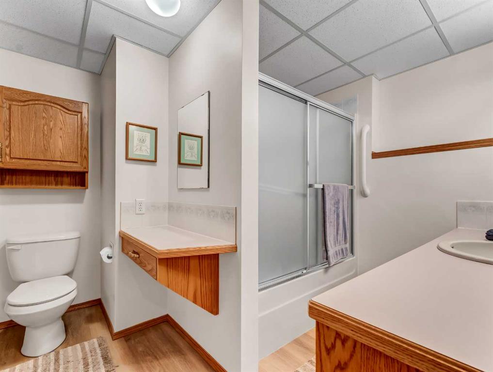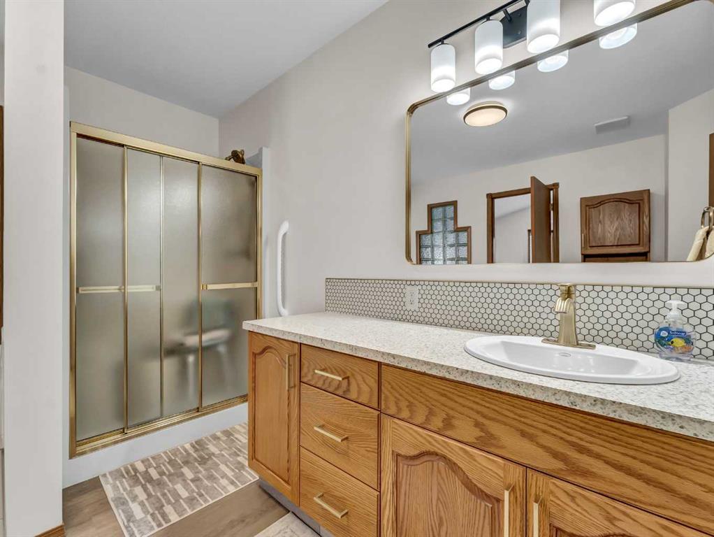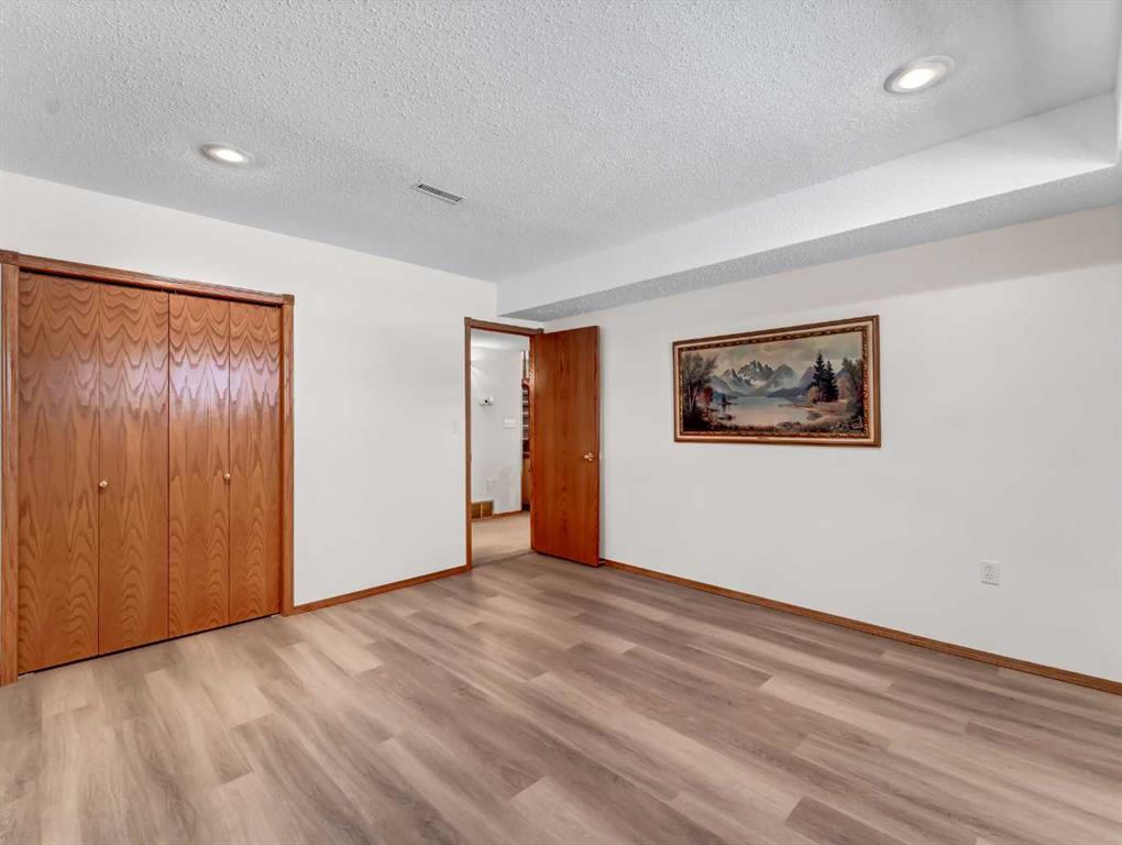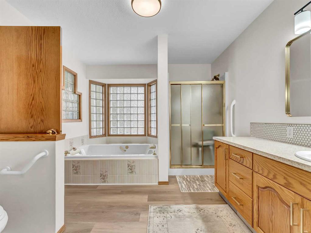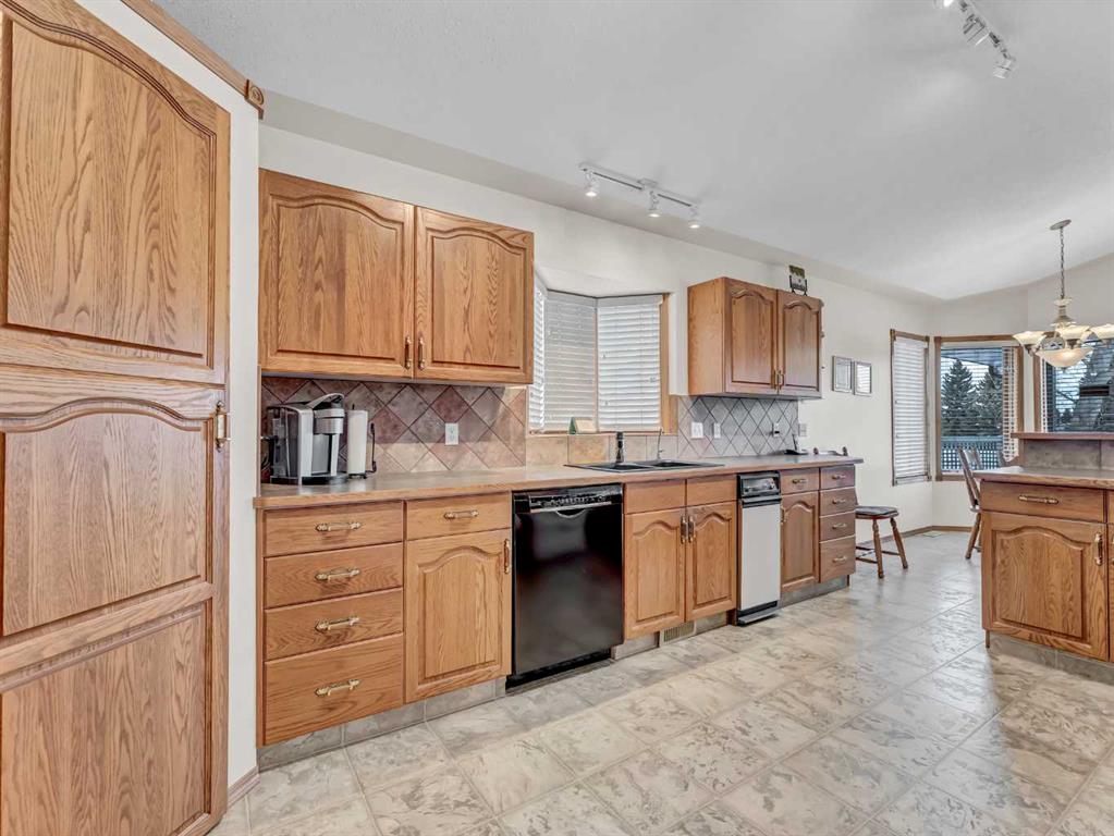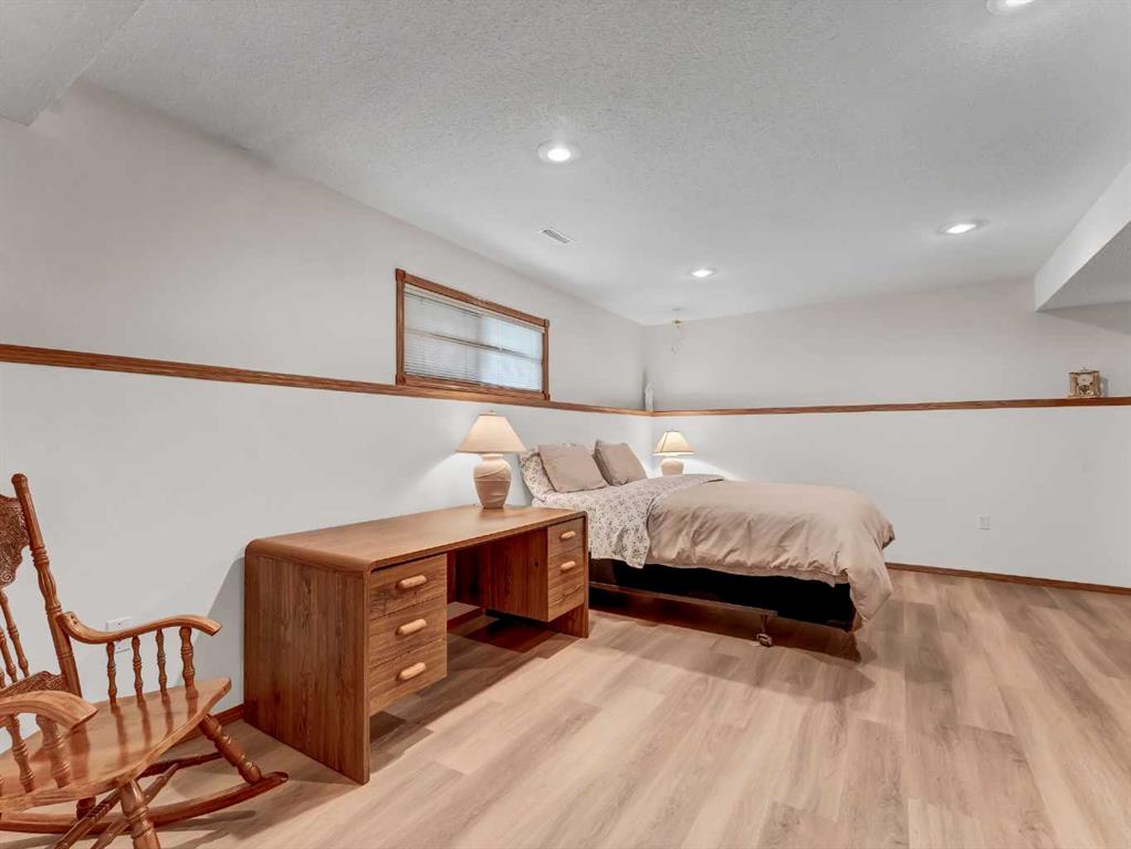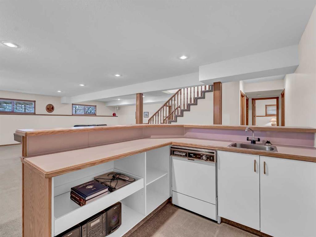 Every once in a while, a home becomes available in that perfectly tucked-away quiet corner of the city that very few people know about and is extremely central. A home that has not been offered for sale in decades. A home that has been preserved and maintained to the highest standard. A home that backs onto a substantial, yet seldom-used green space. This is that home. Surrounded by properties that are equally well cared for by long-time owners, this home fits seamlessly into a neighborhood where pride of ownership is clearly evident. The landscaping is in near-perfect condition and is supported by underground sprinklers, while the extensive brick accents and exposed concrete details in the driveway add timeless character and curb appeal to the exterior. Inside, the open-concept design is highlighted by high vaulted ceilings, bay windows, and a fireplace that creates a warm and welcoming focal point. The master bedroom features an expansive bay window, new vinyl plank flooring, and a very generous updated ensuite with a walk-in / walk-through closet. Throughout the home you’ll find an abundance of solid wood trim and solid wood cabinetry in excellent condition, adding warmth and a rich, inviting presence. The convenience of main floor laundry further enhances the thoughtful layout of the home, and zoned heating with two furnaces provides efficient and comfortable climate control throughout. Step outside to enjoy a large, shady covered deck that offers an ideal space for relaxing or entertaining while overlooking the quiet green space behind the home. The oversized double heated garage offers exceptional functionality, featuring a commercial-grade concrete floor, a raised storage area, a large work space, and enough room to comfortably accommodate two full-size trucks. Over the years, numerous thoughtful updates and necessary upgrades have been completed, including new overhead garage doors in 2004, new aluminum deck railing in 2005, new front concrete in 2010, a new fence in 2012, a new roof in 2016, and a new garage furnace also installed in 2016. New water heater 2019 and Hunter Douglas window coverings. All 32 window casings were professionally refinished, while the front windows and dining room window received new sealed units. The upper arch windows were also tinted to help reduce interior summer heat. The fully finished basement is accessed by a formal staircase that leads into a very large family room complete with a wet bar, creating an ideal space for relaxing or entertaining. The lower level also includes a third generous bathroom and two additional bedrooms. Completing the basement is an impressive storage room measuring over 23 feet in length. The basement family room has the prep for an additional gas fireplace.