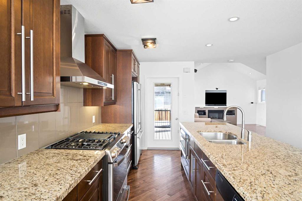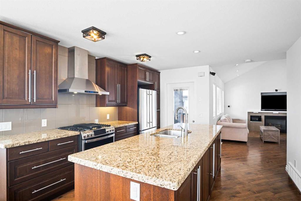 Welcome to this beautiful home nestled in a quiet cul-de-sac in the sought-after golf course community of Stonebridge Glen. Thoughtfully designed and well-built, this property offers exceptional features and must be seen to be fully appreciated. The inviting front entry opens into a bright living room with soaring ceilings, large windows, and a cozy gas fireplace—perfect for relaxing or entertaining. The spacious kitchen is a true highlight, featuring a large island, gas stove with hood fan, built-in microwave, and an oversized pantry for ample storage. The adjoining dining area is surrounded by windows, offering plenty of natural light and lovely views of the yard. This level has hardwood floors. Convenience is key with a powder room and dual access to the garage from both the kitchen and front entry. Upstairs, an impressive stairwell leads to the primary retreat, complete with a walk-in closet and a private ensuite featuring in-floor heating. Two additional bedrooms, a full bathroom, and a laundry area complete the upper level. Recent updates include fresh paint on the main floor and brand new carpet upstairs. The fully developed lower level offers even more living space, including a large bedroom with its own ensuite and a versatile flex room to suit your needs. Step outside to enjoy the fully fenced yard, featuring a two-tiered deck and a hot tub—perfect for outdoor living year-round. There is even a dog run that can be accessed from the garage. The garage is oversized and fits a truck and car. This exceptional home offers incredible value and won’t last long. Book your showing today!
