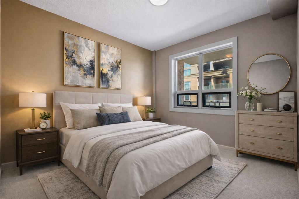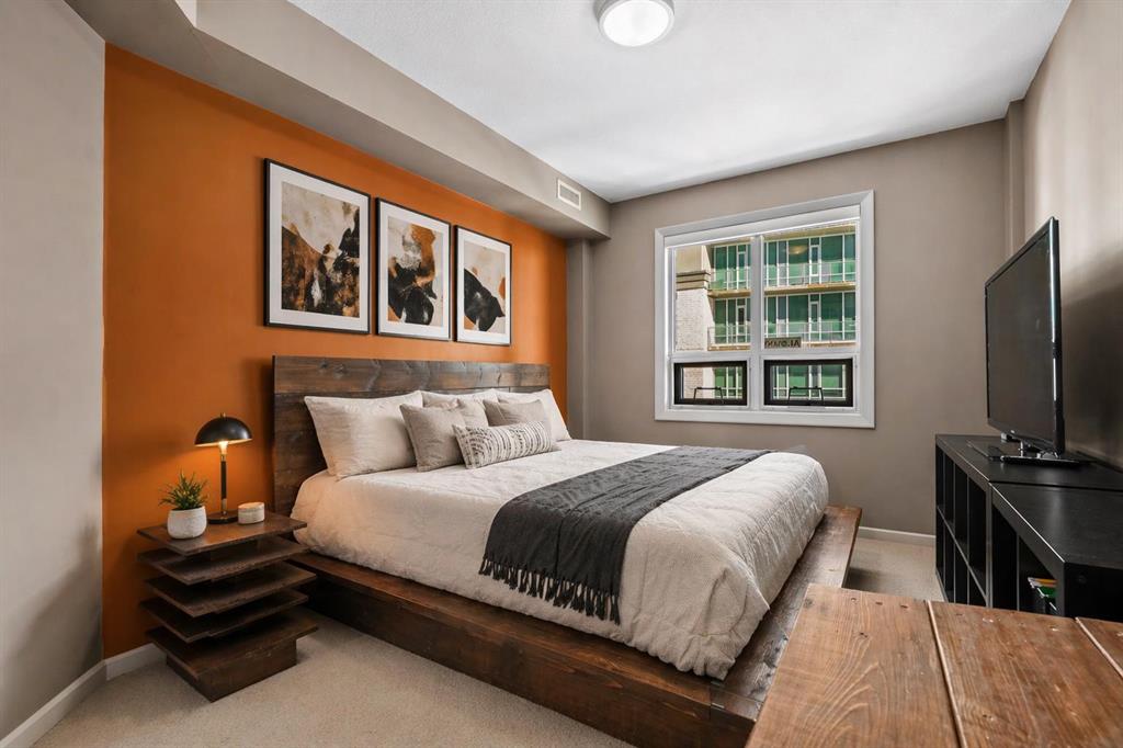Your urban retreat at VETRO - where value meets presence and lifestyle meets location. Step inside this nearly 1,000 sqft space and feel the tone immediately. A moody, masculine kitchen sets the stage - rich espresso cabinetry, granite counters, stainless steel appliances and a breakfast bar island built for connection. Morning coffees, late-night pours and conversations that linger. Just off to the side, a built-in bar niche with beverage cooler quietly elevates the experience. The layout is smart and intentional. A true 2-bedroom, 2-bathroom split design that gives space where it matters. Whether it’s guests, a roommate or a work-from-home setup - this floor plan adapts. The primary retreat comfortably fits a king, with a walk-through closet leading into your private ensuite. The open-concept living and dining areas flow effortlessly, creating a space that feels larger than it is - designed for both quiet nights in and hosting when it counts. Function meets ease with in-suite laundry, heated underground parking and a dedicated storage locker. And then there’s the building itself. VETRO delivers with a full lineup of amenities: fitness centre, hot tub, games area and a private theatre room - everything you need without ever leaving home. But the real story? It's the location. Steps to the new arena district. Moments to Stampede Park and the BMO Centre. Surrounded by restaurants, pubs, cocktail bars and everyday essentials. A quick walk to the downtown core. Victoria Park C-Train Station right there when you need it. This isn’t just convenience - it’s access, energy and movement. A sharp, lifestyle-driven condo in one of Calgary’s most connected pockets - offering undeniable value in a market that doesn’t wait.