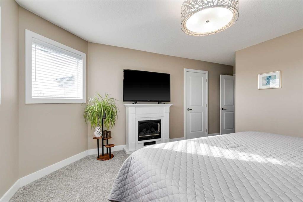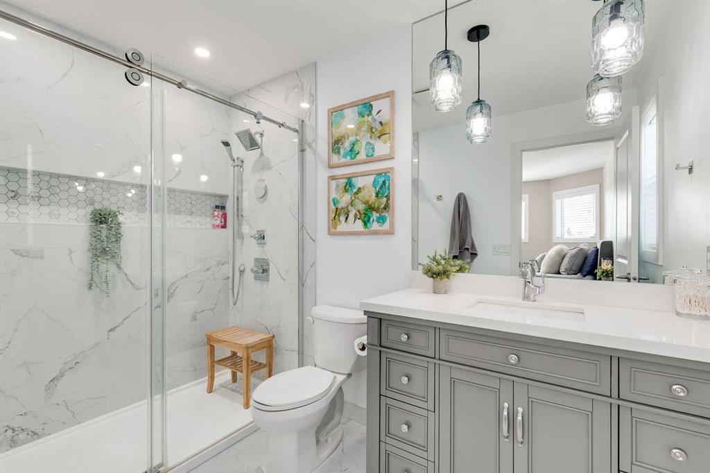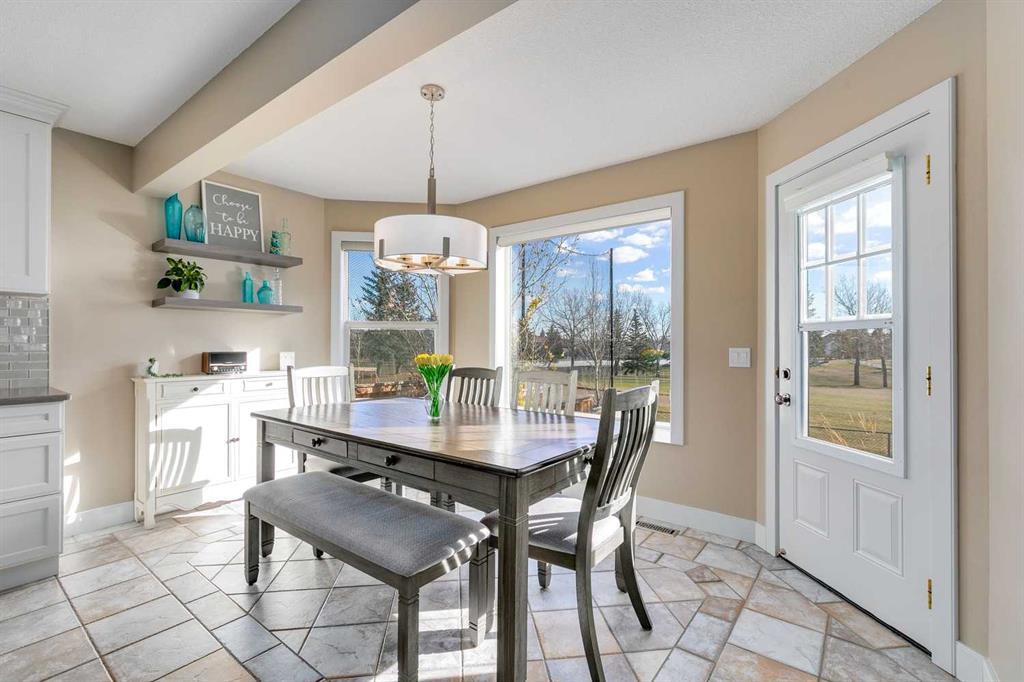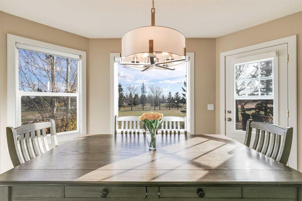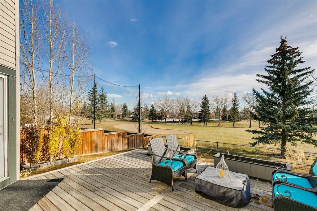 Welcome to 1719 Woodside Blvd NW, a beautifully renovated two-storey home backing directly onto the Woodside Golf Course — offering the perfect balance of modern updates, privacy, and mature landscaping. Every renovation and upgrade has been professionally completed, making this home feel brand new while preserving the charm of one of Airdrie’s most established communities. Step inside and be greeted by a grand curved staircase, a stunning architectural centerpiece that sets the tone for the quality and design found throughout the home. The foyer features a built-in bench, a walk-in closet, creating a welcoming and practical entryway. The main floor showcases a designer kitchen with two-tone cabinetry, quartz countertops, cabinets to the ceiling with crown molding, a glass tile backsplash, and a massive island perfect for family gatherings. A walk-in pantry adds convenience and storage, while the large dining area, surrounded by windows, offers picturesque views of the golf course — the perfect backdrop for family meals or entertaining. The living room features a cozy gas fireplace (recently serviced and cleaned) and big, bright windows that fill the space with natural light and frame the serene outdoor scenery. Throughout the home, you’ll find updated light fixtures, knockdown ceilings, new interior doors, trim, and baseboards, creating a cohesive, elevated look. The layout includes a spacious mudroom, half bath with laundry, and ample storage throughout — perfect for busy family living. Upstairs, you’ll find three generous bedrooms, including a primary suite designed for relaxation with a large walk-in closet and a luxurious ensuite featuring dual shower heads, gorgeous tile, and quartz finishes. The main 4-piece bathroom includes an extended vanity for extra counter space, generous storage, and a second linen closet. The fully finished basement expands your living space with a fourth bedroom, office nook, wet bar, spacious family room, and a beautifully updated full bathroom with a walk-in tiled shower. Step outside to the elevated backyard deck, offering multiple seating areas, a fire table, and unobstructed golf course views — an ideal setting for entertaining or quiet evenings surrounded by mature trees. The exterior siding and battens have been updated for timeless curb appeal, and both the house and garage feature upgraded blown-in attic insulation, improving comfort and energy efficiency. Additional upgrades include knockdown ceilings, modern lighting, and recently serviced mechanical systems, ensuring peace of mind and long-term comfort. With its combination of high-end renovations, thoughtful design, and unbeatable location, 1719 Woodside Blvd NW delivers the rare combination of modern luxury, peaceful surroundings, and community connection — all in one of Airdrie’s most loved neighborhoods.