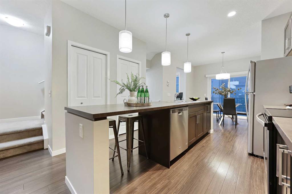 Open house Saturday October 4th from 12:30-2:30pm This stunning home with over 1700 square feet of living space and a walkout basement, perfectly blends modern design with everyday convenience. Featuring a front attached garage and front driveway—a rare find—this home offers both style and practicality. As you step inside, you’re greeted by a spacious foyer with direct access to the garage and a versatile walkout basement space that opens onto a private patio. The main floor is bright and open, designed with an impressive open-concept layout. The kitchen showcases a massive 9-foot island, flowing seamlessly into the dining area, office/flex space, and inviting living room. Step out onto the balcony, complete with a gas line for your BBQ, making outdoor dining a breeze. A generously sized half bathroom completes this level. On the top floor, the primary suite features large windows and an abundance of natural light, along with a large walk in closet and a private ensuite bathroom. Down the hall, you’ll find two additional bedrooms, a full bathroom, and the convenience of upstairs laundry. This complex is well managed with low fees, tons of visitor parking and a beautiful outdoor courtyard complete with walking paths. Located just moments away from parks, schools, shopping and more - this home offers many unique features rarely found in similar properties.