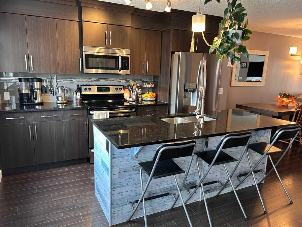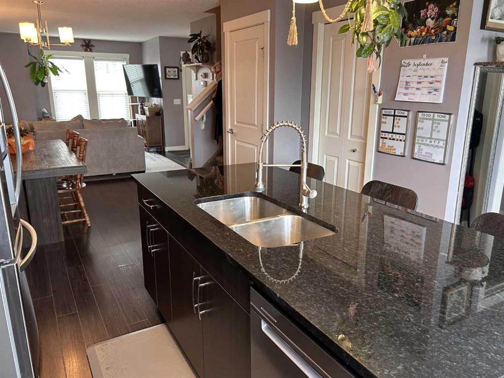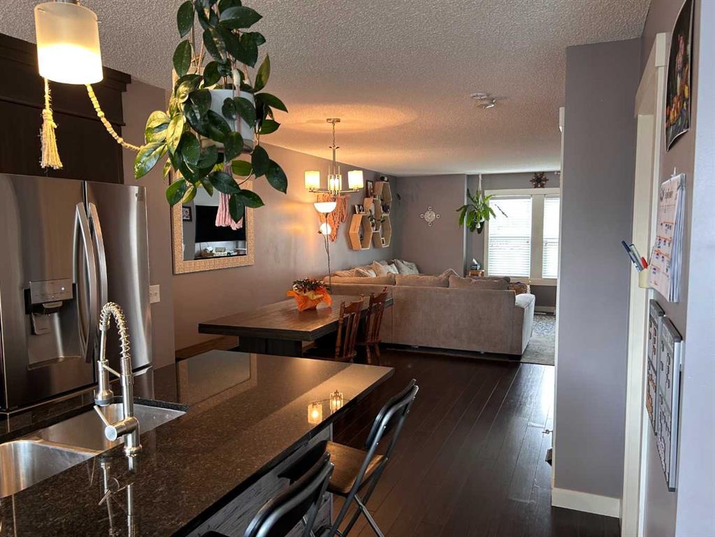 *OPEN HOUSE OCT 4: 2-4* Welcome to stylish townhome living nestled in the popular picturesque and family friendly area of Fireside. NO CONDO FEES! A superbly finished home with 3 bedrooms & 2 1/2 baths. Coming up the walk you're greeted by classical accented architecture and a gracious entrance. At night watch the house shine with programmable built in soffit lighting. Through the inviting foyer, there's an open concept main floor plan with quality laminate, ample windows & natural lighting. Spacious living and dining rooms with an open kitchen, great for day to day and entertaining. An offset private 1/2 bath on the main floor. Kitchen offers ample gorgeous cabinetry, large island, granite countertops, pantry, S/S appliances with updated DW & Fridge. Step out and relax on the custom deck with plenty of space to watch the kids play. Retreat upstairs to the private primary bedroom which features a walk-in closet and ensuite. Two more sizable bedrooms and a 2nd full bath complete the second floor. The unfinished lower level offers versatile functional space for say office, home gym, big screen, storage. Fenced yard with two rear stalls. Excellent location with Catholic and Public schools both K-8 within walking distance. The community offers 4 parks and pump track for families to explore, ample green spaces and walking paths with community gardens and fire pits. In the winter skate on the well maintained NHL sized outdoor rink. Steps to bistro, shops and services. Via Hwy 22 / Hwy 1 it’s a breeze to Calgary or off to the Rockies. Pride of ownership - a great opportunity - come and see!