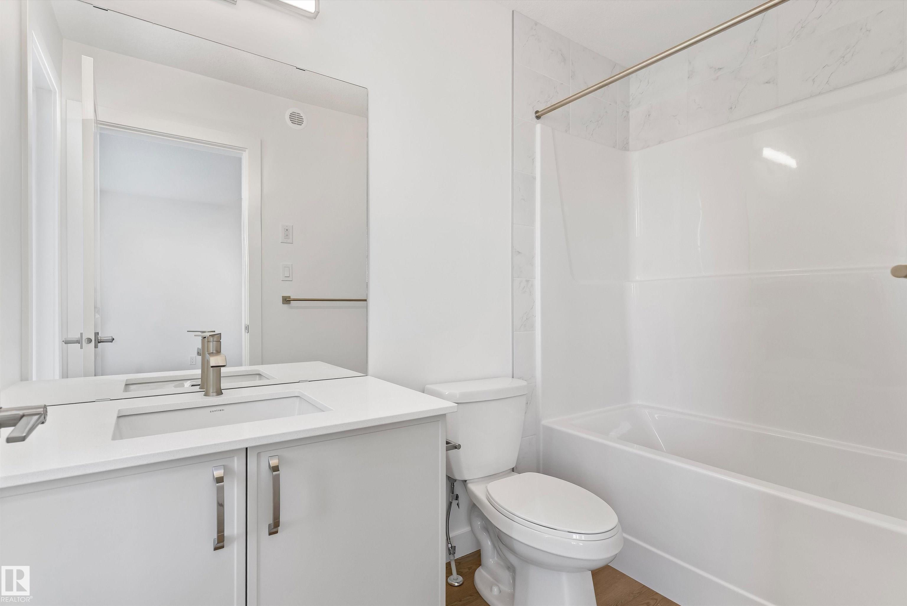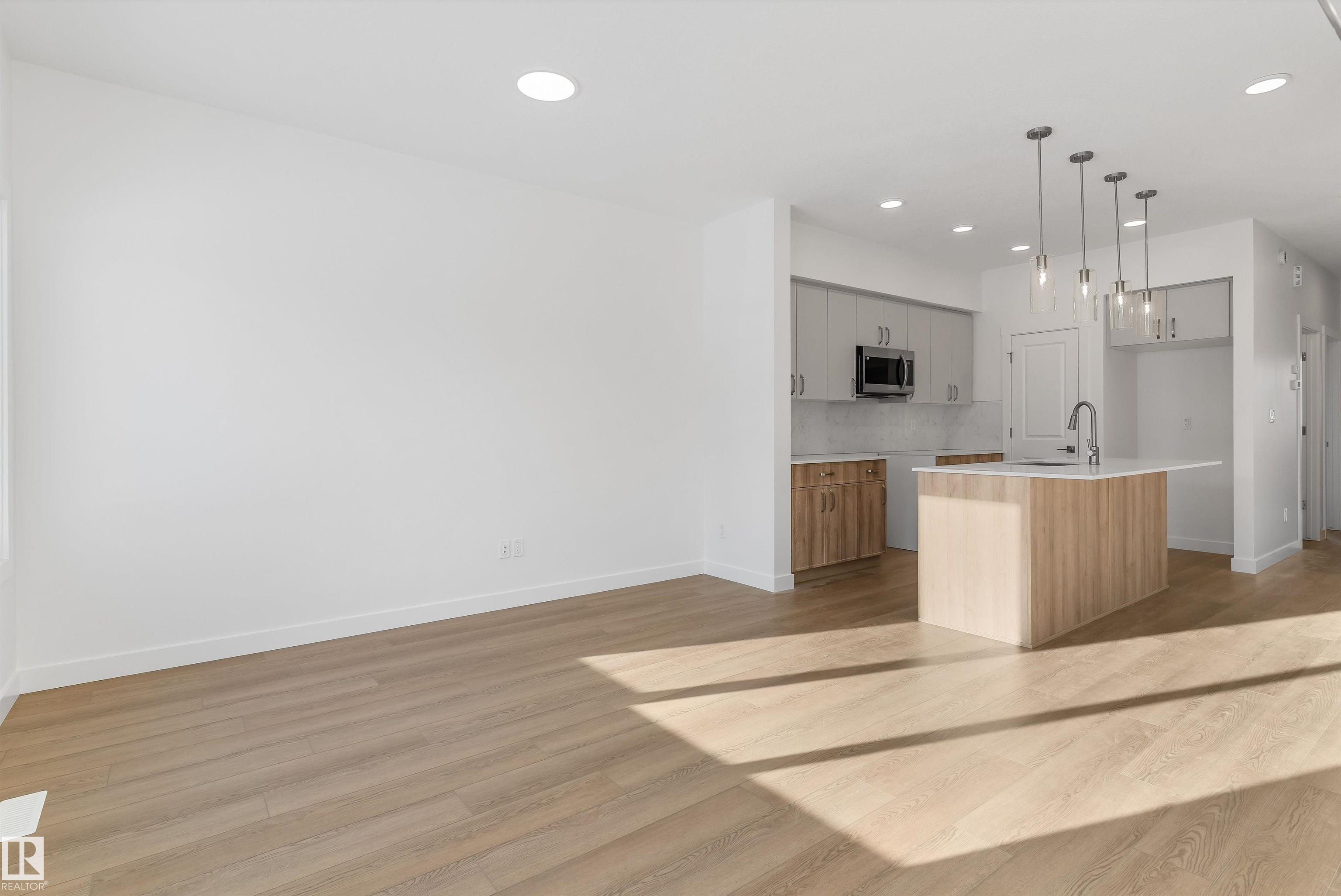 The Sapphire is a 1,615 sq. ft. standout featuring 9’ ceilings and Luxury Vinyl Plank flooring. The main level uniquely offers a front bedroom and full three-piece bath with a walk-in shower, providing a versatile guest or office space. At the home’s center, a chef-inspired kitchen boasts Quartz surfaces, a flush-ledge island, a corner pantry, and premium soft-close cabinetry. Large windows in the rear living room and nook flood the space with light, while a central garden door offers seamless backyard access. Upstairs, the layout includes a relaxing bonus room and a primary retreat with a walk-in closet and ensuite. Two additional bedrooms share a main bath and a space-saving stackable laundry closet. Complete with brushed nickel fixtures, a separate side entrance, and a basement rough-in, the Sapphire is a masterpiece of smart, functional living.