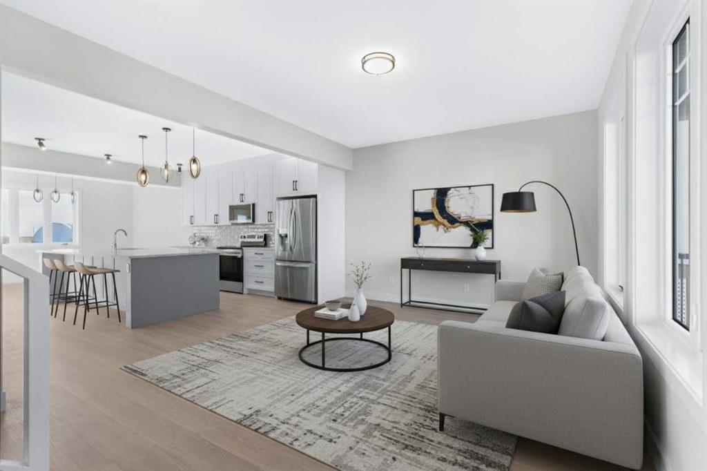 Quality new construction home built by a local Master Builder in Crossfield, who has lived in the community for 30+ years! Situated on what is arguably the best lot in this new development, this West facing end unit provides additional parking options and overlooks the baseball diamond and adjacent green space. Additionally, this location offers walking distance two schools, the local Community Centre and just minutes from the quaint downtown offering a multitude of amenities. This 3 bedroom, 3 bathroom semi-detached home spans over 1500 sq ft and features an open main floor layout. The Kitchen boasts abundant cabinetry, high-end appliances, and a beautiful, functional center island, ideal for extra counter space, homework, and entertaining guests. A patio door off the dining area leads directly to the deck and backyard, uncommonly found in this price point. This home has back lane access and a parking pad, a garage could still be added at an additional cost. Upstairs, the Primary Bedroom includes a walk-in closet and full ensuite bathroom. The two additional bedrooms are generously sized with convenient access to the centrally located main bathroom. Laundry is also conveniently located on this upper floor. Additionally, the home features side door access for private entry to the unfinished basement, allowing for additional future living space and includes bathroom rough-in. What sets this home apart is its construction by a Local Master Builder, employing Journeyman Tradesmen in all aspects of the build. These builders, along with their families, have been part of this community for multiple generations and take pride in constructing quality homes for local families. No expense has been spared in the use of upgraded materials during both the building process and the finishing touches. Features include Lux windows, stone countertops, upgraded plumbing fixtures and lighting fixtures, as well as higher-end appliances which includes the washer and dryer, also not a common inclusion. This home is currently under construction. There is still some opportunity for custom upgrades, if you act fast! The area size was calculated by applying the RMS to the blueprints provided by the builder.