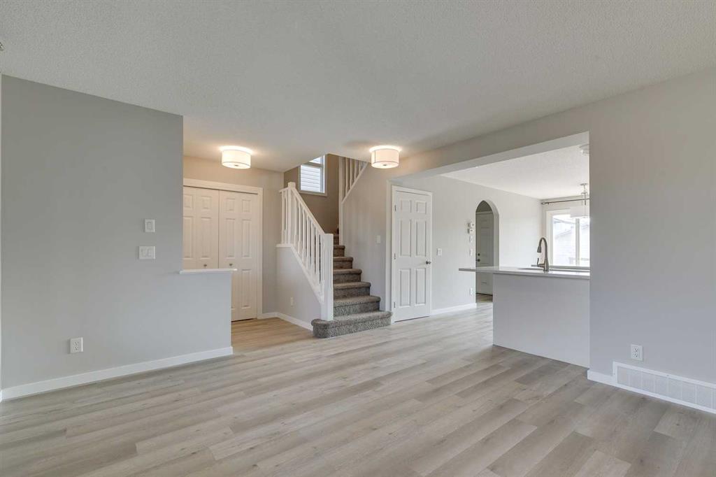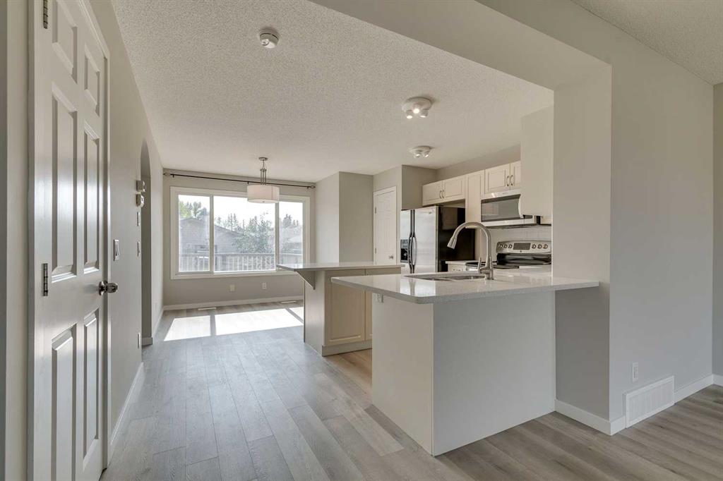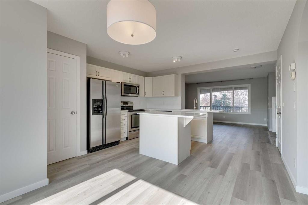 Welcome to this charming 2-storey in Airdrie’s beloved Reunion community, where everyday comforts meet thoughtful updates. A classic front porch sets the scene for morning coffees or evening lounging, while inside sunlight pours through large windows into the living room, anchored by a cozy gas fireplace. The kitchen is the true heart of the home—quartz counters gleam against beautiful cream coloured cabinetry, and stainless steel appliances stand ready for your next culinary adventure. The island and breakfast bar offers the perfect perch for taste-testers and storytellers alike, with a sunny dining nook overlooking the south-facing backyard. Upstairs, three inviting bedrooms await, including a serene primary suite with its own private ensuite, while the additional bedrooms share a bright, well-appointed bath. The newly developed fully finished basement extends your living space with a spacious family room, a fourth bedroom, and a full bath—ideal for guests, teens, or cozy movie nights. Recent upgrades include new vinyl plank flooring, designer lighting, fresh paint, and a newly built double detached garage. Outside, the sunny backyard and deck invite barbecues, barefoot summers, and long afternoons in the sun, while the schoolyard just across the street adds to the sense of community and convenience. This is more than a house—it’s the backdrop for countless memories yet to be made.