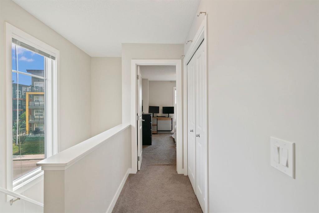 Offering nearly 1,300 sq. ft. of stylish living space, this beautifully maintained home blends comfort, function, and contemporary design. The open-concept main floor is perfect for both everyday living and entertaining, featuring a sleek kitchen with rich dark cabinetry, stainless steel appliances, and a spacious island with seating. Oversized windows fill the living and dining areas with natural light, while the private balcony provides a perfect spot to enjoy your morning coffee or evening BBQs. Upstairs, you’ll find two generous bedrooms, each with its own ensuite ideal for roommates, guests, or a dedicated home office setup. Convenient upper-floor laundry adds practicality to your daily routine, while the main-level powder room and attached garage offer extra comfort and ease. Perfectly located just steps from the South Health Campus, YMCA, shops, restaurants, and transit, this home delivers exceptional walkability and quick access to major routes. Whether you’re a first-time buyer, investor, or downsizer, you’ll love the style, space, and convenience this home provides. Move-in ready and waiting for you to enjoy the best of Seton living!