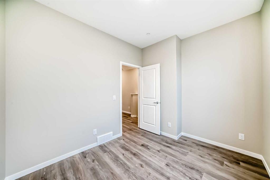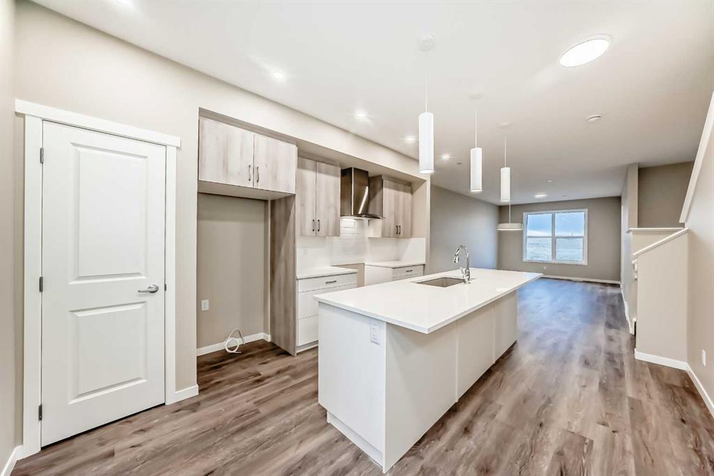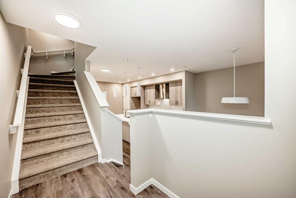 This brand-new “Rayn” pairs stylish family living with built-in flexibility thanks to a separate side entrance—perfect for a future suite or private lower-level development (A secondary suite would be subject to approval and permitting by the city/municipality). Inside, the main level impresses with warm natural vinyl plank flooring and modern finishes throughout. The central kitchen is the showpiece: natural wood-tone cabinetry to the bulkhead, sleek subway backsplash, chimney hood fan, stainless steel appliances, and bright white quartz that wraps an oversized island—ideal for coffee catch-ups or weekend entertaining. The dining area sits perfectly between kitchen and living, comfortably fitting an extended table for holidays. At the rear, the living room features floor-to-ceiling windows for great light, plus a smartly tucked back entry with a 2-piece bath. Two unique spaces elevate daily life: a versatile flex room just off the kitchen (home office, playroom, or gym) and a raised homework/tech nook overlooking the main floor—clean, functional, and surprisingly fun. Upstairs, a cozy bonus room anchors the level (movie nights, play space, or reading corner). The primary retreat sits quietly at the back with an oversized window, a generous walk-in closet, and a stylish 4-piece ensuite featuring dual sinks and a full-size shower—finishes you’d expect in a much larger home. Hotchkiss is one of southeast Calgary’s newest master-planned communities, celebrated for its wide-open prairie and mountain vistas, quick connectivity, and nature-first design. Framed by Stoney Trail and Highway 22X for easy commuting—and just minutes to nearby Mahogany and Seton—Hotchkiss puts shopping, services, the South Health Campus, and daily essentials within easy reach. The community is anchored by a 30-acre natural wetland with boardwalks and pathways, part of a broader green network that’s planned to include roughly 51 acres of park space and trails, creating a true outdoor playground for walking, jogging, and wildlife watching. Family-friendly planning is central here, with future amenities that include a K-9 school and about four acres of neighbourhood commercial, plus new parks and play areas as the community builds out across its ~237 acres. In short, Hotchkiss offers the calm of nature, the convenience of the southeast, and the promise of a thoughtfully connected community as it grows.