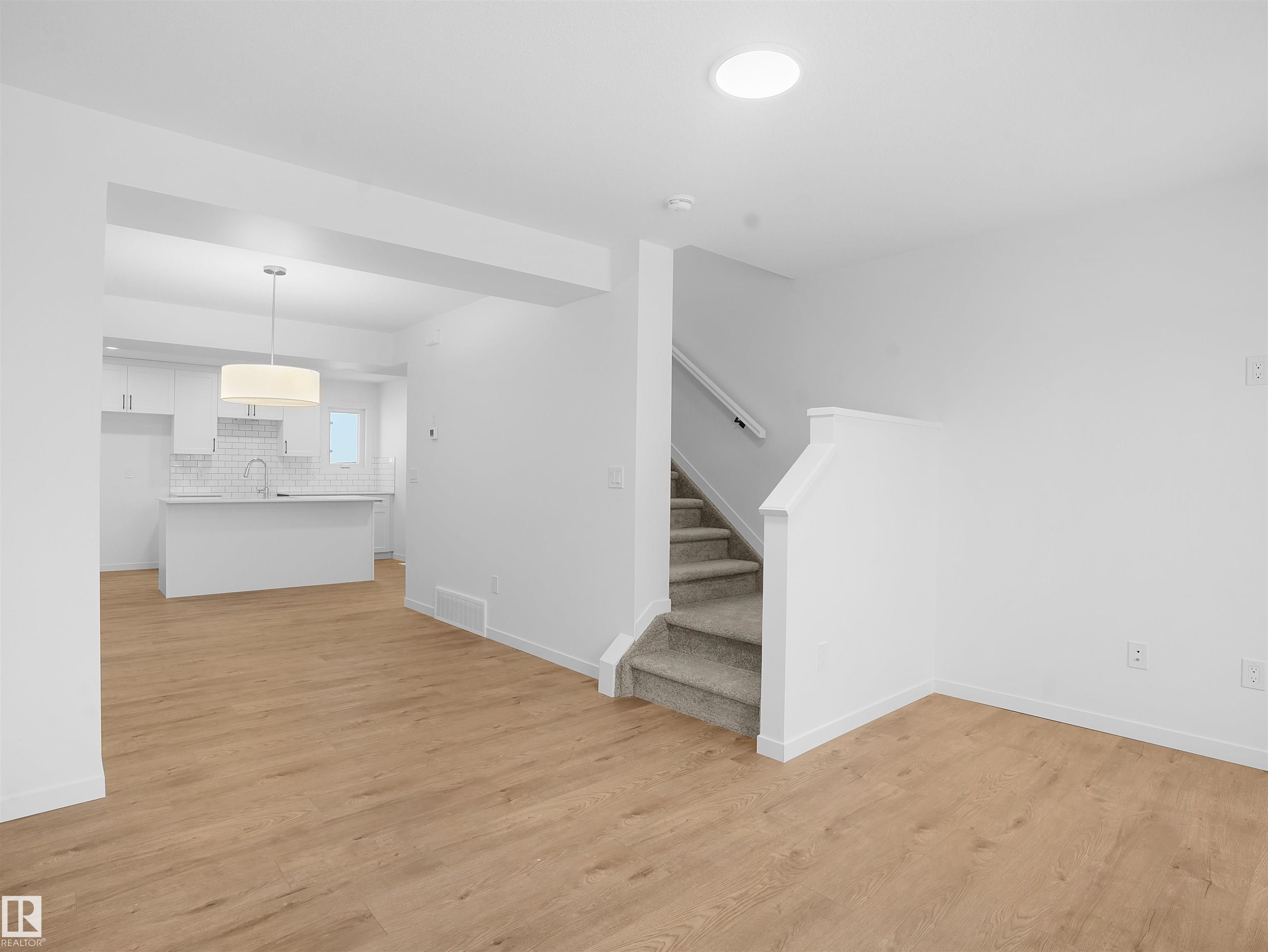 NO CONDO FEES and AMAZING VALUE! You read that right welcome to this brand new townhouse unit the “Gabriel" Built by StreetSide Developments and is located in one of Edmonton's newest premier South West communities of Keswick Landing. With almost 1100 square Feet, it comes with front yard landscaping and a single over sized attached garage, this opportunity is perfect for a young family or young couple. Your main floor is complete with upgrade luxury Vinyl Plank flooring throughout the great room and the kitchen. The main entrance/ main floor has a large sized foyer with a 2 piece bathroom and a office / bedroom. Highlighted in your new kitchen are upgraded cabinets, upgraded counter tops and a tile back splash. The upper level has 2 bedrooms and 2 full bathrooms. This home is now move in ready!