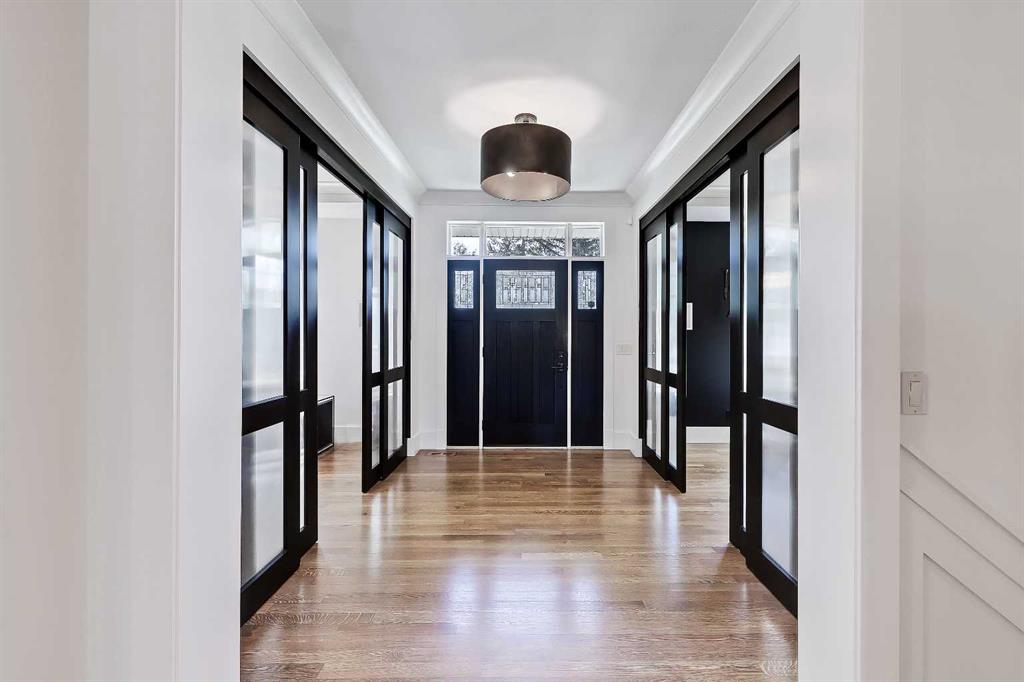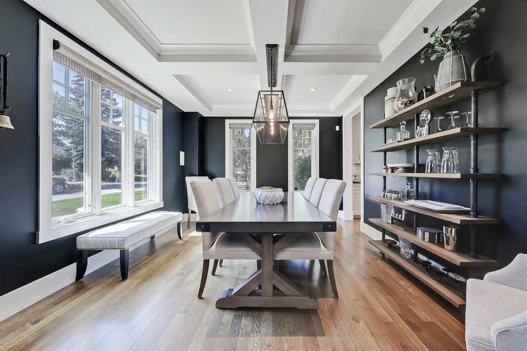 *VISIT MULTIMEDIA LINK FOR FULL DETAILS, INCLUDING IMMERSIVE 3D TOUR & FLOORPLANS!* Exquisitely crafted and set on an expansive 60’ x 100’ lot across from a tranquil greenspace in Glendale, this custom estate home offers more than 5,400 sq ft of fully developed living space with 5 bedrooms, 4.5 bathrooms, serene outdoor escapes, and an oversized, insulated/drywalled double attached rear garage. A rare offering in the inner city, this residence boasts an estimated rebuild cost exceeding $3M. The timeless façade is composed of acrylic stucco, wood shake, and cultured stone, enhanced by pitched rooflines, landscaped grounds, and exposed aggregate walks. Inside, a stained-glass front door opens to a bright foyer with site-finished hardwood, crown mouldings, and custom millwork. A front office with coffered ceilings and built-ins overlooks the greenspace, while the formal dining room boasts coffered ceilings, designer lighting, and a seamless connection to the butler’s pantry with dual beverage fridges, quartz counters, prep sink, and extensive cabinetry. The gorgeous chef’s kitchen showcases custom cabinetry with organizers, a marble-topped island, premium Thermador appliances (fridge/freezer, dual wall ovens, gas cooktop, hood fan), and an Asko dishwasher. A walk-in pantry provides extra storage, while the casual dining nook with French doors opens to the patio, allowing for easy indoor-outdoor living. The living room features a panelled wall, quartz-framed gas fireplace, oversized windows, and built-in speakers. A stylish powder room and a mudroom with built-ins complete the main level. Upstairs, four bedrooms (a rarity in the inner-city) include a front bedroom with vaulted ceiling, walk-in closet, and ensuite, plus two bedrooms sharing a Jack & Jill bath with dual sinks, marble counters, and a tiled tub/shower. The primary retreat offers vaulted ceilings, spa-inspired ensuite with heated herringbone floors, freestanding tub, steam shower, and an enormous walk-in closet with custom built-ins. A vaulted reading nook and a well-equipped laundry room add convenience. The basement is designed for entertaining with 9’ ceilings, in-floor heating, a rec room boasting a projector and screen, and a kids’ play nook. A gym/sports room with puck board walls doubles as a 6th bedroom, while a guest bedroom and full bath complete the level. Outdoors, two aggregate patios, cedar soffit lighting, outdoor speakers, a BBQ gas line, and a zoned irrigation system enhance the fully fenced yard. Additional features include dual high-efficiency furnaces, A/C, on-demand boiler with hot water tank, Sonos system, and central vacuum. Set in Glendale, one of Calgary’s most desirable communities, this home offers estate-level living with family-friendly charm, excellent schools, parks, and quick access to downtown and major roadways. Schedule your private showing today!