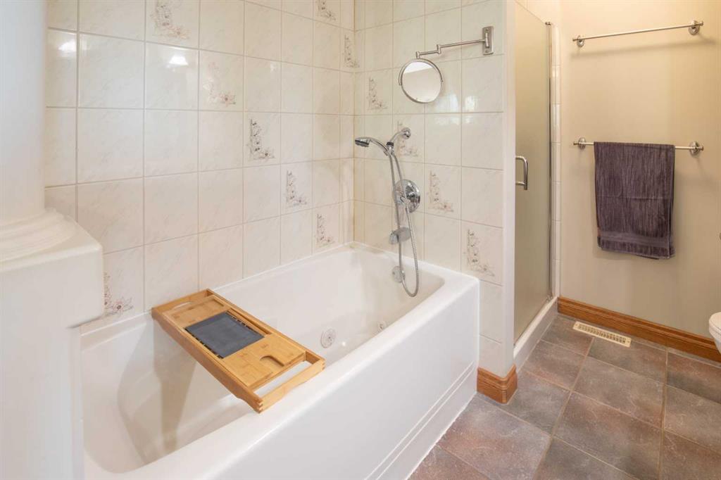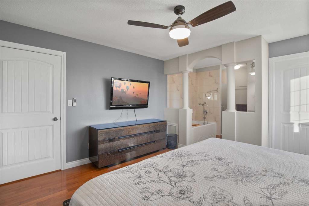 The Ultimate Family Home in Sylvan Lake—TWO Garages & Room to Grow! Imagine your family living in beautiful Sylvan Lake, just minutes from the water and surrounded by everything this vibrant community has to offer. Now picture coming home to this spacious, stylish 4-bedroom, 3-bath gem with a finished basement and not one—but TWO garages! Step inside and feel the warmth of high ceilings, hardwood floors, and a bright open-concept layout that brings everyone together. The kitchen is a showstopper with granite counters, modern grey tones, and plenty of space for baking, homework, or hosting family dinners. Two bedrooms and a full bath complete the main floor. Just a few steps up, the private primary bedroom offers a peaceful retreat with a walk-in closet and ensuite bath. Downstairs, cozy up in the family room with a gas fireplace, enjoy a spacious fourth bedroom and full bath, plus a large laundry room and cold storage for all your seasonal gear. Outside, the three-tiered deck leads to a sunny, fenced backyard, a relaxing hot tub, and dry storage under the deck wired for a workshop or hobby space. The 18x24 detached garage features a drive-thru design with an 8' door—ideal for trucks, boats, or toys—while the attached garage is fully finished, heated, and freshly painted. Bonus features include underfloor heating, central air (3-ton unit), and new shingles (2018). This home checks every box for comfort, convenience, and family fun. your Sylvan Lake dream lifestyle starts here!