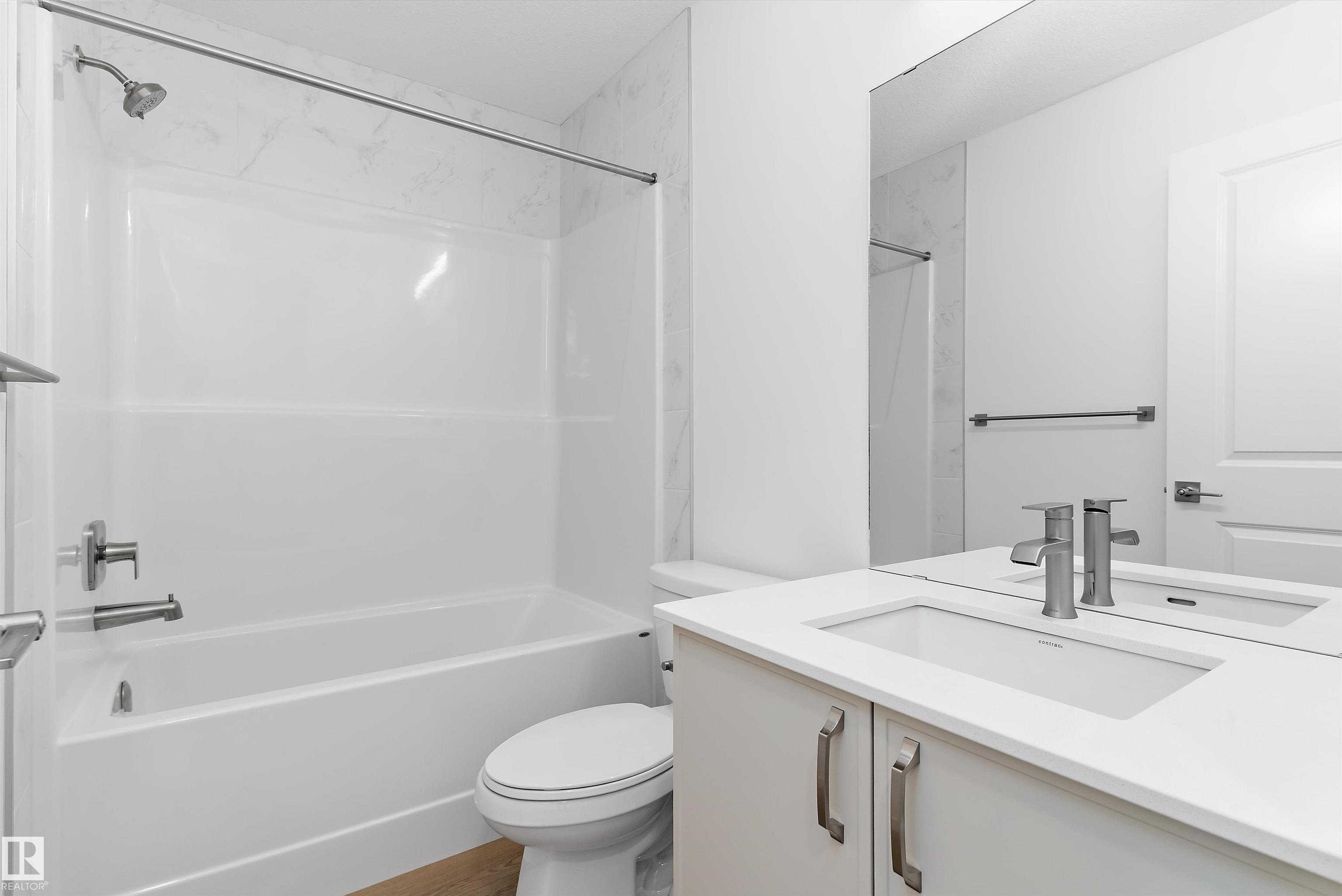 Welcome to the Sapphire by Sterling Homes, a well-designed 1,623 sq ft home ideal for modern family living. The main floor features 9’ ceilings and luxury vinyl plank flooring, creating a bright, open feel. The kitchen offers quartz countertops, island with flush eating ledge, Silgranit undermount sink, over-the-range microwave, full-height tile backsplash, upgraded Winston cabinet door profile, and a corner pantry. Large windows brighten the living room and nook, while a centrally located garden door provides backyard access. A main-floor bedroom and 3-piece bath with walk-in shower add flexibility. Upstairs includes a bonus room, primary suite with walk-in closet and 4-piece ensuite with tub/shower combo, two additional bedrooms, a 4-piece main bath, and a laundry closet for stackable appliances. Black fixtures, 9’ basement ceilings, a separate side entrance, and basement rough-in plumbing complete this home.
