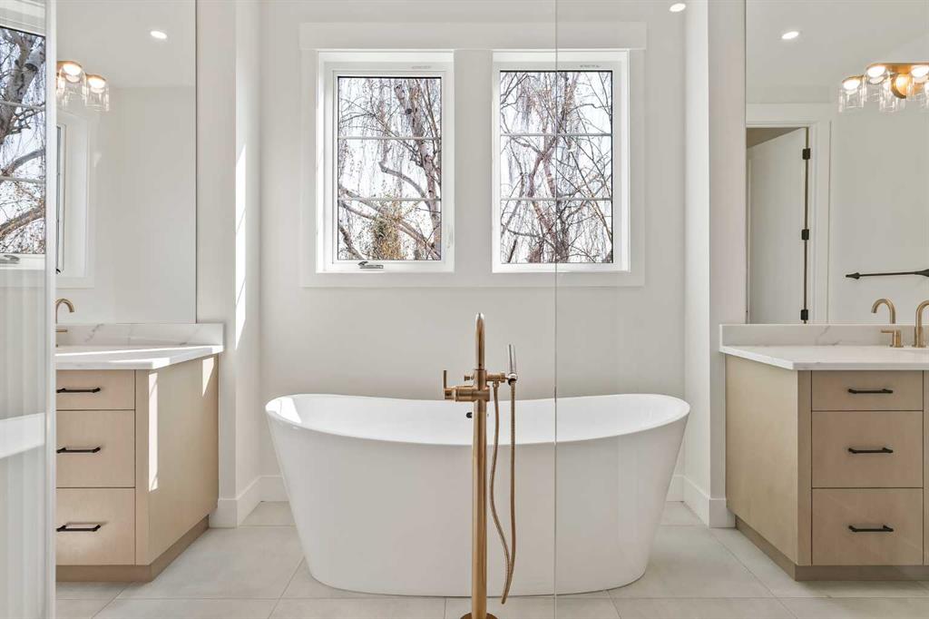 Proudly presenting a stunning urban-inspired masterpiece in the coveted community of Killarney. Thoughtfully designed & impeccably crafted, this three-story residence offers nearly 3650 SF of refined living space. The open-concept main floor showcases striking architectural details, including white oak hardwood floors, custom-milled cabinetry, oak & metal railings, & expansive windows that bathe the interior in natural light. The kitchen stands as a true showpiece featuring bespoke cabinetry with undermount lighting, exquisite quartz slab countertops & backsplash, premium JennAir appliances, Silgranit sink, & a impressive 12-foot island with seating for five. In the living area, a handsome floor-to-ceiling fireplace surround, & 8-foot garden doors make a bold yet sophisticated statement while white oak hardwood, mullioned windows, & an inviting dining area further elevate the curated, light-filled main floor. Completing the level is a convenient mudroom with built-ins & a pretty powder room. The gorgeous oak hardwood continues to the second level where the centrally situated bonus room is flanked by two distinguished bedrooms, each boasting its own ensuite with custom vanities, quartz counters, & beautifully tiled showers with glass doors while spacious walk-in closets with built-ins & large windows enhance the comfort & appeal of these inviting retreats. The third level is a sanctuary of elegance and comfort. The airy primary suite is flooded with natural light & features expansive sliding doors to a private balcony perfect for enjoying quiet morning coffee from the convenient beverage centre. The stunning ensuite exudes spa-like luxury with double custom oak vanities & refined quartz countertops, a dramatic steam shower, in-floor heating, & an opulent stand-alone waterfall tub. Completing this exceptional level is a considerable walk-in closet with extensive custom millwork. The professionally developed lower level delivers 900 SF of living space built with the same attention to detail. Providing a spacious family room, wet bar, fitness area, 4th bedroom with walk-in closet, & 5th bathroom this additional level makes an ideal area for entertaining or accommodating family members & guests. Equally impressive is the extraordinary curb appeal displaying genuine brick accents, James Hardie board cladding, acrylic stucco, mullioned windows, & an aggregate patio. The quiet West-facing backyard offers a tranquil setting perfect for children at play, summer barbecues, or simply unwinding at the end of the day. Other notable highlights of this remarkable residence include a double insulated & drywalled garage, Ply Gem windows with 2-year warranty, Delta fixtures, & 200-amp electrical panel. Situated close to parks, shopping, schools, transit, & the vibrant amenities of 17th Ave, this extraordinary property delivers a beautiful lifestyle in an excellent Killarney location. Welcome home to 2013–34 St SW where exceptional design meets timeless luxury. Feature Sheet in listing