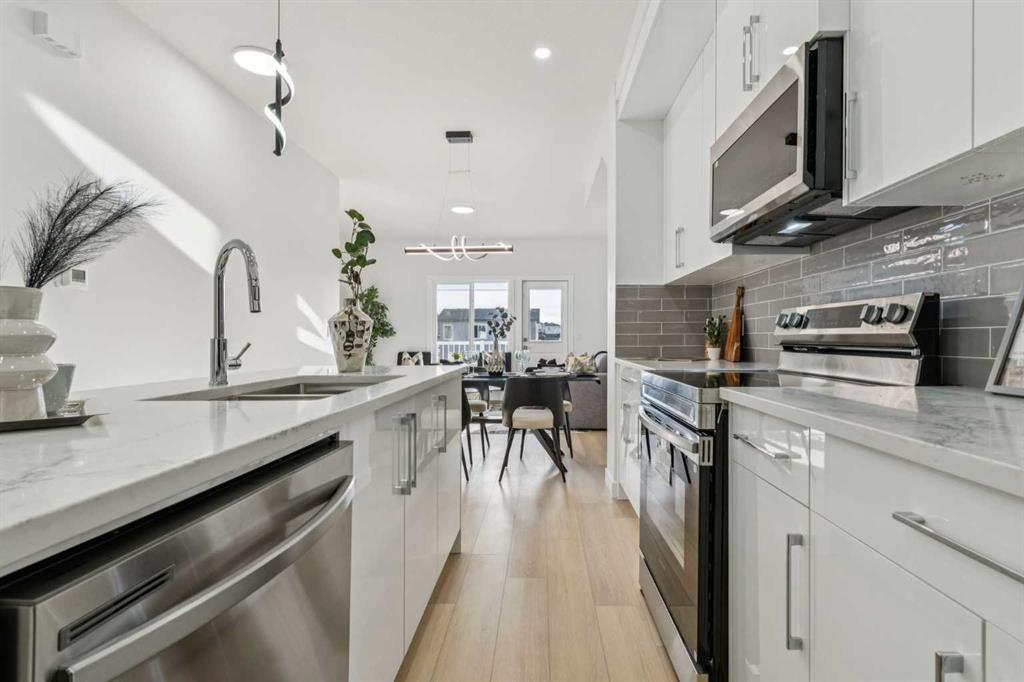 LOW CONDO FEES | MOVE-IN READY | 4 BED + DEN, 4 BATH UNIT | MAIN-FLOOR PRIVATE GUEST SUITE | TOTAL 1,840 SQ FT | Welcome to Unit 204 at Saddlecrest Living, a 4-bedroom plus den, 4-full-bath townhome located in a brand-new 43-unit community in Calgary’s Northeast. This home is spread across three levels with an attached garage, offering both space and flexibility for families. A standout feature is the main-floor private guest suite with a full bathroom and separate rear entry, ideal for extended family, guests, or future rental income potential. The main living area features an open-concept layout with 9-foot ceilings and triple-pane windows that bring in natural light while improving energy efficiency. The kitchen is finished with floor-to-ceiling cabinetry and premium quartz countertops, and stainless steel appliances, creating a clean and modern look. Upstairs, all bathrooms feature full-height tile for a contemporary finish. Carpeted bedrooms add comfort, and luxury vinyl plank flooring on the main level ensures durability and easy maintenance. Built for Calgary’s climate, the exterior combines stucco and Hardie siding for hail protection and low maintenance. Saddlecrest Living is a connected, family-friendly community close to schools, playgrounds, Saddletowne LRT, shopping, medical clinics, and fitness centres, with quick access to Stoney Trail, Calgary International Airport, Costco, CrossIron Mills, and New Horizon Mall. Whether this is your first home, a step up for a growing family, or a smart investment, Unit 204 offers space, versatility, and long-term value in one of Calgary’s fastest-growing corridors. Units in this building (#201-#205) are available for purchase individually or as a full package.