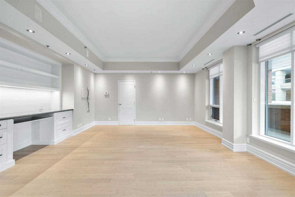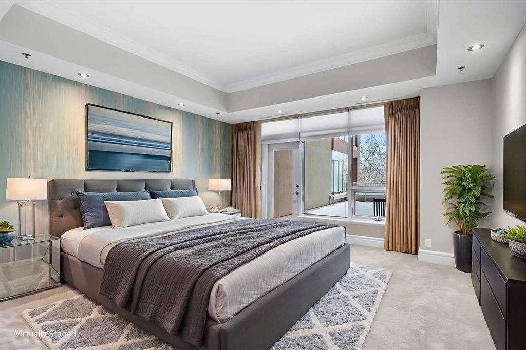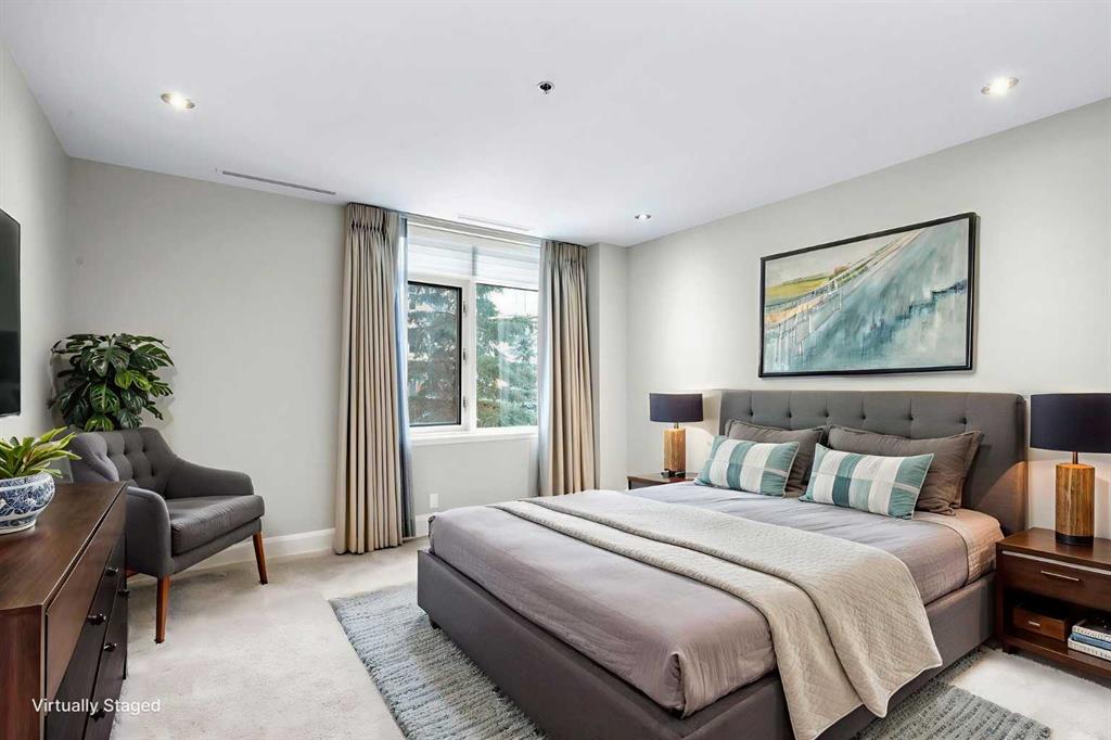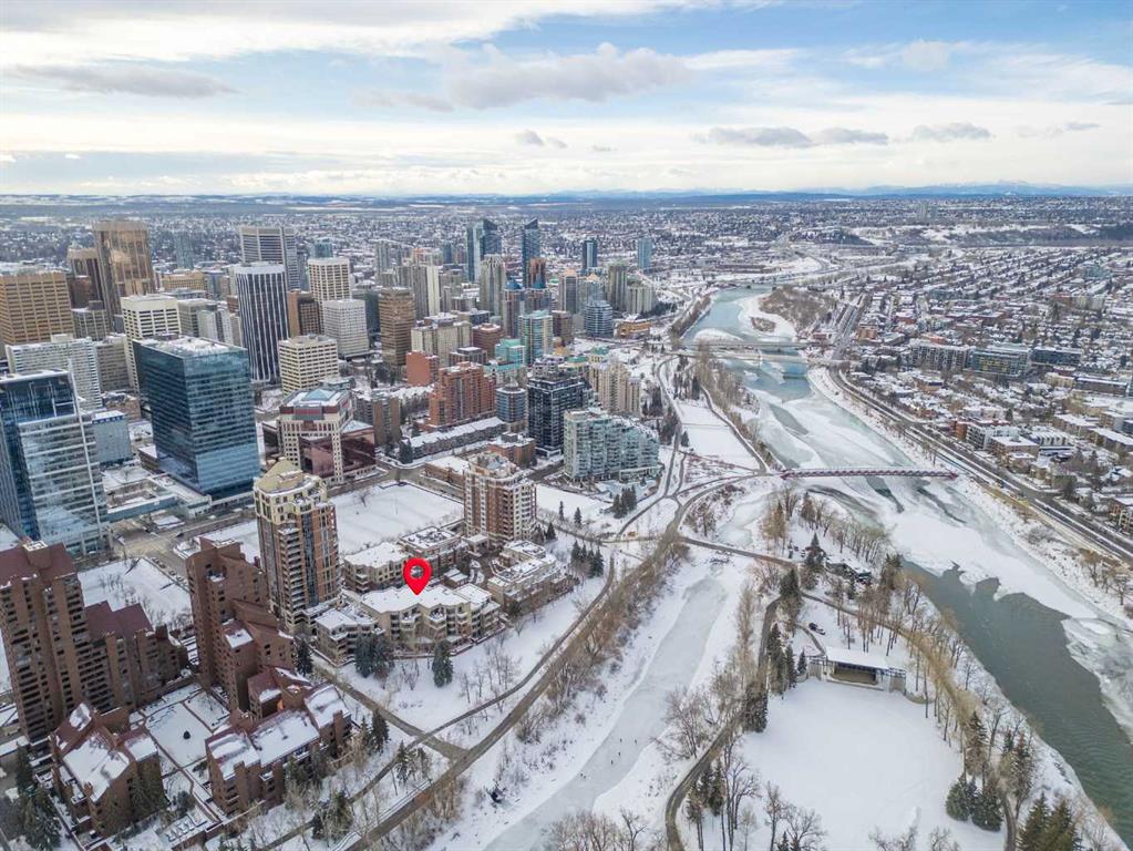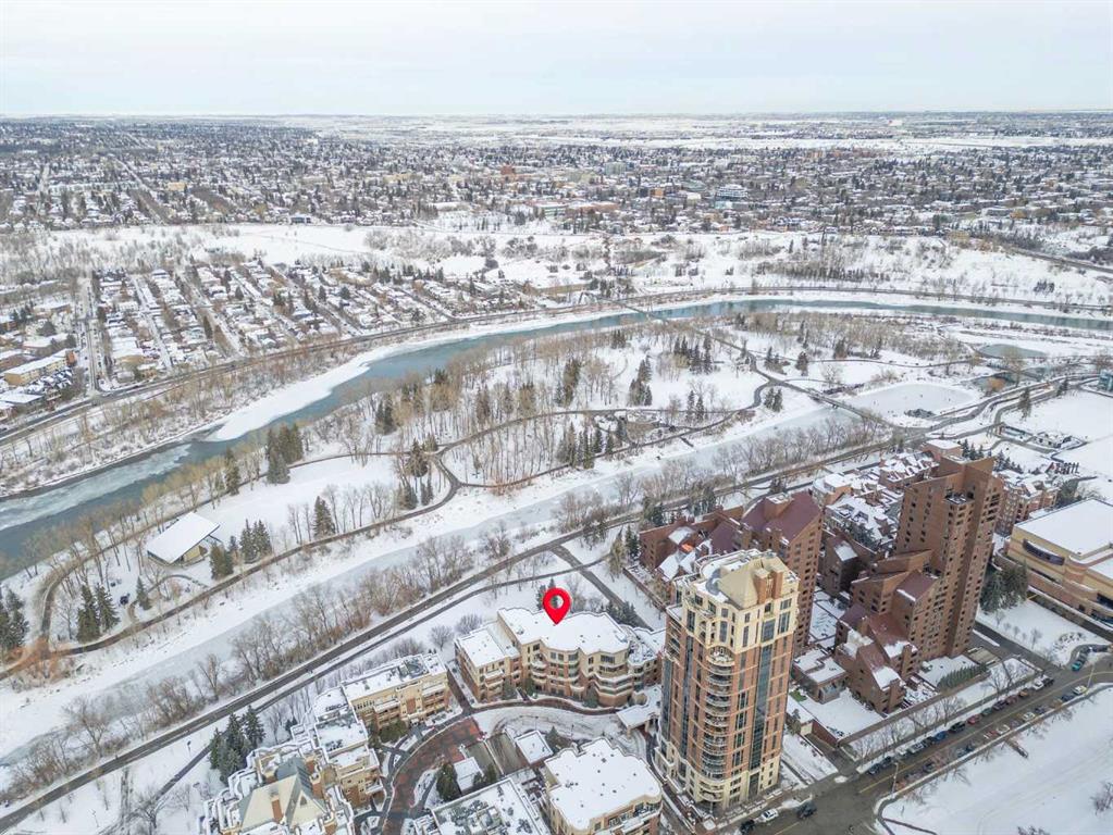 For those who value excellence, this distinctive executive residence in the Princeton Grand, a name synonymous with exclusivity, privacy, and luxury, is set amidst the most desirable residential enclave in Eau Claire. Your lifestyle will appreciate the opulent convenience of a private in-suite elevator coupled with exceptional amenities including 24 hour dedicated concierge, temperature controlled wine room with private storage lockers & tasting room, events area with full kitchen, TV’s and terrace, 2 private guest suites, a fully equipped fitness centre, yoga centre, steam room, dry sauna, showers, change room with lockers, full kitchen & bathroom, full service U/G car wash bay, bicycle storage, and a separate freight elevator. The beautifully manicured grounds create a private park-like setting, nestled along the south bank of the Bow River next to beautiful Prince's Island Park and incredible Pathway System! Walking distance to office towers, shopping, entertainment, restaurants, +15 skywalk system, transportation and the LRT, Peace Bridge, Kensington Shops and Calgary's vibrant City Center. Presenting a rare offering of 2892 sq.ft. of harmoniously appointed living space displaying the highest level of craftsmanship and luxurious interior tailoring, with pride of ownership complimenting the timeless prairie palette that flows seamlessly throughout the integrated floor plan that embraces the stunning backdrop of the Bow River. This exceptional luxury residence features a private elevator for the ultimate in convenience which opens to your stylish and spacious foyer, and then presents an exceptionally open entertaining floor plan, large floor to ceiling windows that provide exceptional natural light, with the open concept living/dining areas overlooking the private treed views to the Bow River. The master quarters overlooks the river and offers a large walk-in closet, relaxing, sensual 5 piece spa inspired ensuite with heated floors, a convenient office area and direct access to the expansive north terrace overlooking the Bow River and Prince's Island. The very private second bedroom is totally secluded from the living areas. The bright professional-grade gourmet kitchen was designed as the epicenter of the space with direct access to the south terrace, coupled with the north terrace can accommodate gatherings of all sizes. This peaceful and park-like setting offers two spectacular and spacious outdoor living spaces, a stunning 680 sq ft covered deck overlooking the mature trees and Bow River to the north, and a second sunny south facing covered balcony off the kitchen and family room, great for year round BBQs. An exceptional floor plan that's perfect for entertaining. Home includes built-in speaker system, vacuum system, a wine fridge, 1 gas fireplace, high ceilings, lge bright windows, 2 titled parking stalls and titled storage locker. Enjoy your refined lifestyle against a backdrop of luxury services, finishes and accoutrements in the Princeton Grand.