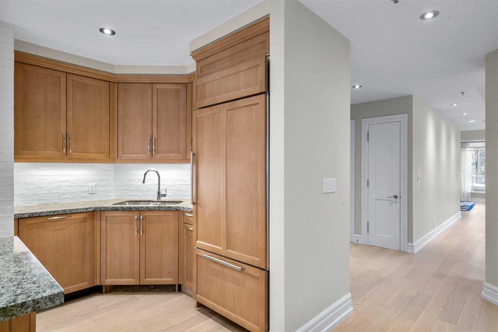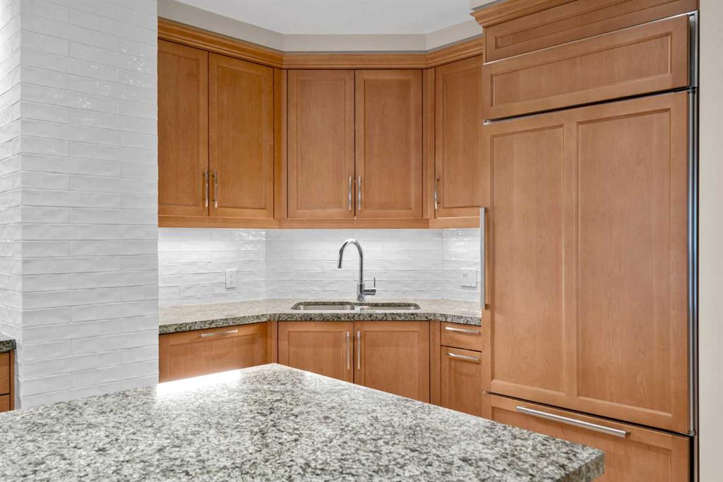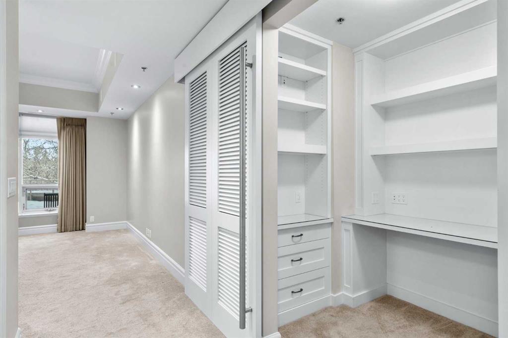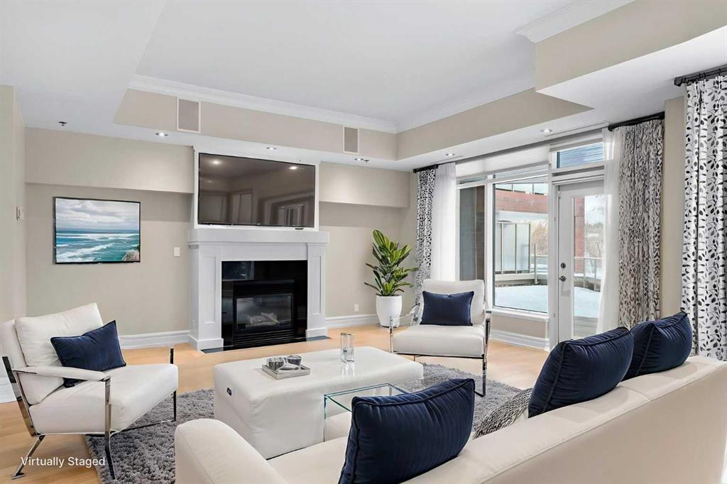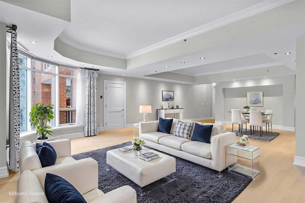 For those who value excellence, this distinctive executive residence in the Princeton Grand, a name synonymous with exclusivity, privacy, and luxury, is set amidst the most desirable residential enclave in Eau Claire. Your lifestyle will appreciate the opulent convenience of a private in-suite elevator coupled with exceptional amenities including 24 hour dedicated concierge, temperature controlled wine room with private storage lockers & tasting room, events area with full kitchen, TV’s and terrace, 2 private guest suites, a fully equipped fitness centre, yoga centre, steam room, dry sauna, showers, change room with lockers, full kitchen & bathroom, full service U/G car wash bay, bicycle storage, and a separate freight elevator. The beautifully manicured grounds create a private park-like setting, nestled along the south bank of the Bow River next to beautiful Prince's Island Park and incredible Pathway System! Walking distance to office towers, shopping, entertainment, restaurants, +15 skywalk system, transportation and the LRT, Peace Bridge, Kensington Shops and Calgary's vibrant City Center. Presenting a rare offering of 2892 sq.ft. of harmoniously appointed living space displaying the highest level of craftsmanship and luxurious interior tailoring, with pride of ownership complimenting the timeless prairie palette that flows seamlessly throughout the integrated floor plan that embraces the stunning backdrop of the Bow River. This exceptional luxury residence features a private elevator for the ultimate in convenience which opens to your stylish and spacious foyer, and then presents an exceptionally open entertaining floor plan, large floor to ceiling windows that provide exceptional natural light, with the open concept living/dining areas overlooking the private treed views to the Bow River. The master quarters overlooks the river and offers a large walk-in closet, relaxing, sensual 5 piece spa inspired ensuite with heated floors, a convenient office area and direct access to the expansive north terrace overlooking the Bow River and Prince's Island. The very private second bedroom is totally secluded from the living areas. The bright professional-grade gourmet kitchen was designed as the epicenter of the space with direct access to the south terrace, coupled with the north terrace can accommodate gatherings of all sizes. This peaceful and park-like setting offers two spectacular and spacious outdoor living spaces, a stunning 680 sq ft covered deck overlooking the mature trees and Bow River to the north, and a second sunny south facing covered balcony off the kitchen and family room, great for year round BBQs. An exceptional floor plan that's perfect for entertaining. Home includes built-in speaker system, vacuum system, a wine fridge, 1 gas fireplace, high ceilings, lge bright windows, 2 titled parking stalls and titled storage locker. Enjoy your refined lifestyle against a backdrop of luxury services, finishes and accoutrements in the Princeton Grand.