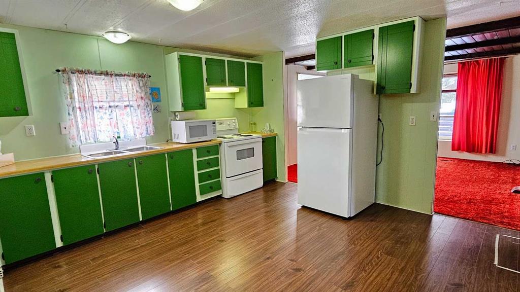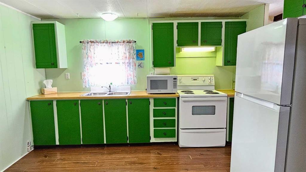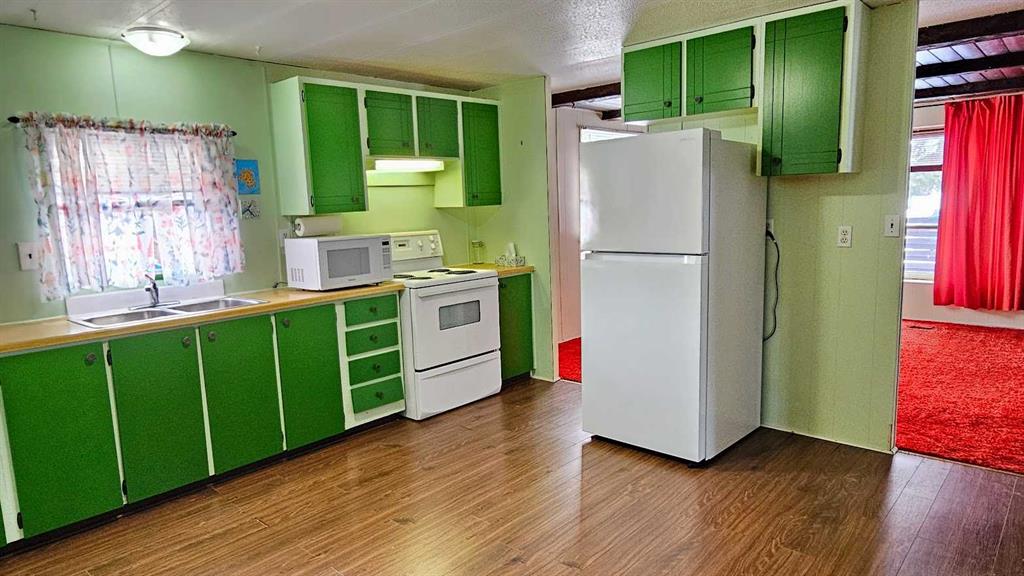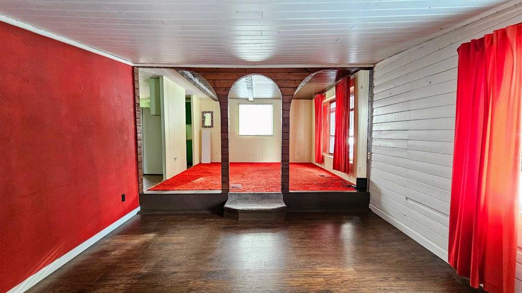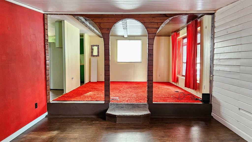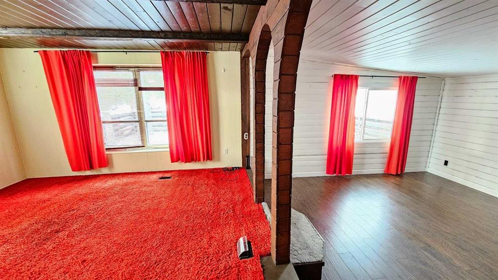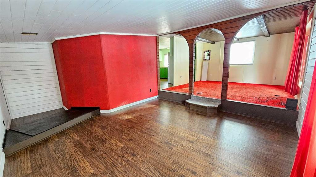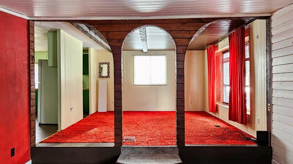 Welcome to This Far-Out Sundre Pad! Groove on over to the NW corner of Sundre, where this throwback beauty is serving up serious 70’s vibes with room to stretch out & live large. This older mobile comes with two generous additions, giving you over 1,100 sq ft of living space—because even disco legends need space to dance. Inside, you’ll find two living rooms, perfect for entertaining, lounging, or setting up a retro rec room. One living room features rich red shag carpet that’s pure vintage cool, & the primary bedroom carries that same plush, cozy throwback style. Bell bottoms optional, comfort guaranteed. The decent-sized kitchen with eating area is ready for morning coffee, late-night snacks, or a fondue party if the mood strikes. With four bedrooms total—including one currently used as an office—you’ve got flexibility for family, guests, or a work-from-home setup. A full 4-piece bathroom with laundry keeps things practical while you enjoy the funkier side of life. Step outside & prepare to be impressed: the huge 9,663 sq ft lot is landscaped & framed with privacy trees at the back, creating a peaceful retreat. The property gently slopes down to an alley & greenspace behind, adding extra breathing room & a touch of nature that the deer sure find right-on. There’s plenty of space to build a garage, workshop, or dream setup. Parking? No problem, baby. The front parking pad fits up to four vehicles, or your vehicles plus an RV—because road trips are always in style. This home is funky, flexible, & full of potential. Whether you lean into the retro charm or add your own modern twist, this Sundre gem is ready for its next groove. “Home Is Where Your Story Begins!”