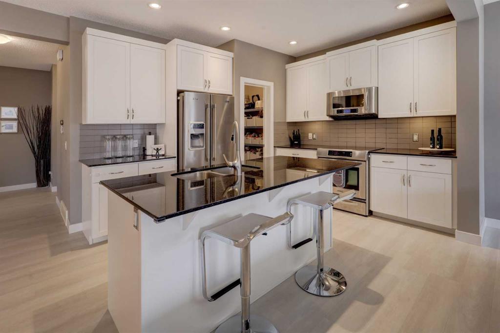 HOME SWEET HOME! LIVE STEPS FROM THE RIDGE WALKING TRAILS AND EVANSTON WEST LOOKOUT POINT! Welcome to this unbelievable, FRESHLY UPDATED 2 storey family home situated on a quiet street in the sought-after NW community of Evanston. This home was built by the award-winning Calgary home builder Cardel Homes offering charming curb appeal, amazing pride of ownership,3 bedrooms, 2.5 bathrooms and 3,199+ SQFT of immaculately maintained living space throughout. RECENT UPGRADES include a new Roof (2025), gutters (2025), back/side siding (2025), main floor luxury vinyl plank flooring (2025), boiler, humidifier and furnace motor (2025), garage door opener and springs (2024), fridge (2023) and paint touch-ups (2025). Heading inside you will be blown away by the modern open concept floor plan with a sun-drenched living room with tons of windows complimented by a cozy gas burning fireplace, a formal dining area, with access to the large deck, 2 piece vanity bathroom, convenient mudroom, foyer and the gourmet chef’s kitchen complete with quartz countertops, a focal point quartz center island with a breakfast bar, walk-through pantry, stylish backsplash, ample cabinet space and premium stainless steel appliances. Upstairs, you will find the bonus room that’s perfect for a growing family with access to a private balcony to enjoy your views, 2 great-sized bedrooms, a lovely 4 piece bathroom, laundry room and the spectacular primary bedroom with a spa-like 5 piece ensuite with vanity sinks, a cozy soaker tub and a walk-in close perfect for all your needs. The unfinished basement has 2 large windows, a full bath rough-in that is waiting for your special touch for future development as its suitable to build a 4th bedroom, den, family room, full bath, utility room and a storage room. Outside, you will find your double attached garage with additional driveway parking and the beautifully manicured and fully fenced backyard with a garden, mature plans and underground sprinklers. Garage is extra deep, for your longer vehicles. This prime location is close to all major amenities including schools, public transportation, parks, many different shopping options, numerous pathways and quick access to Stony Trail and other major roadways! This GEM is a MUST VIEW, book your private showing today!
