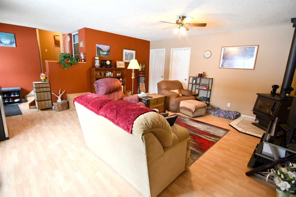 If you are looking for a quiet rural setting with incredible natural surroundings and close access to the west country forest and Crown Land-this ridge side property is perfect for you! A scenic wooded drive to the wooded frontage, and your own ravine which borders one side of the property-a natural setting where wildlife frequents. The home is situated on the edge of a ridge with sweeping south facing views and a focus on being a natural setting with less yard work. Home has just had all plumbing lines upgraded to PEX. The spacious home includes a substantial addition of 30 x 40 ft which allows flexibility and generous space to the property. The addition is heated by a newly installed wood stove in 2022 (WETT certified). It is currently being used as a large living room, extra bedroom, storage room, and an attached garage. The 30 ft length of garage allows space for sports equipment, tools, and/or vehicle. It does have a gas line for a heater. From the large south deck enjoy wildlife moving through the valley and mountain views. This property provides the perfect balance of privacy and accessibility-with lakes, forest and Crown Land nearby-perfect for hiking, hunting, fishing, quadding, snowmobiling, and year round recreation. 10 minutes to town for groceries and the well loved Caroline Supplies. Nearby larger center options are Sundre or Rocky Mountain House.