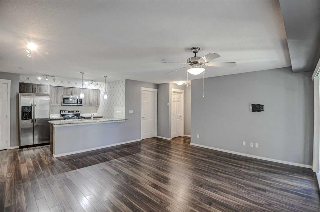 ***OPENHOUSE SUNDAY NOV 02,2025 2-4PM*** Embrace a peaceful, low-maintenance lifestyle in this beautifully designed walkout end unit perfectly positioned just steps from Wildflower Pond and Copperfield’s surrounding green spaces. Offering a seamless blend of modern comfort and natural serenity, this bright, move-in-ready home welcomes you with an open-concept layout and timeless design. The kitchen impresses with quartz countertops, stainless steel appliances, rich cabinetry, and chic feature walls, all centered around a peninsula island ideal for casual dining or entertaining. Gleaming laminate floors flow throughout the main living areas, creating an easy sense of connection between spaces. The adjacent living room is bright and spacious, inviting relaxation and gathering, while large patio doors extend the living space to a covered outdoor area perfect for morning coffee, summer barbecues or simply enjoying the peaceful community setting. This thoughtful walkout design also offers convenient direct access for guests or quick strolls to nearby parks and paths. A generous primary bedroom with a private 3-piece ensuite provides a personal retreat, complemented by a second bedroom and a full 4-piece bathroom for guests, roommates or a home office. In-suite laundry adds everyday convenience. A EXTRA LARGE titled underground parking stall and assigned storage locker offer practical function, while visitor parking ensures easy hosting. Located in the family-friendly, amenity-rich community of Copperfield, residents enjoy skating rinks, tennis courts, playgrounds and an active community centre with year-round events. Scenic ponds, parks and extensive walking paths create a tranquil environment with nature right outside your door. When you do venture out, shopping and dining are close at hand in McKenzie Towne and South Trail Crossing, with quick access to both Deerfoot and Stoney Trail for effortless commuting. Combining modern design, thoughtful layout and an unbeatable location this inviting walkout unit is ready to welcome you home!