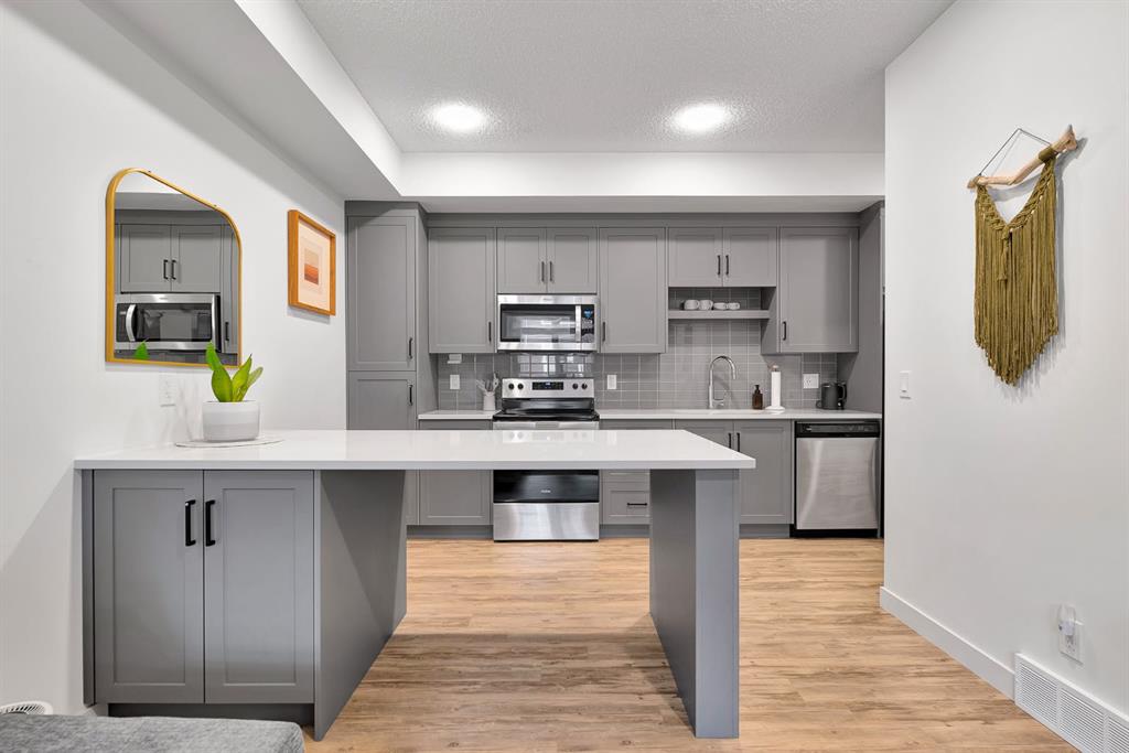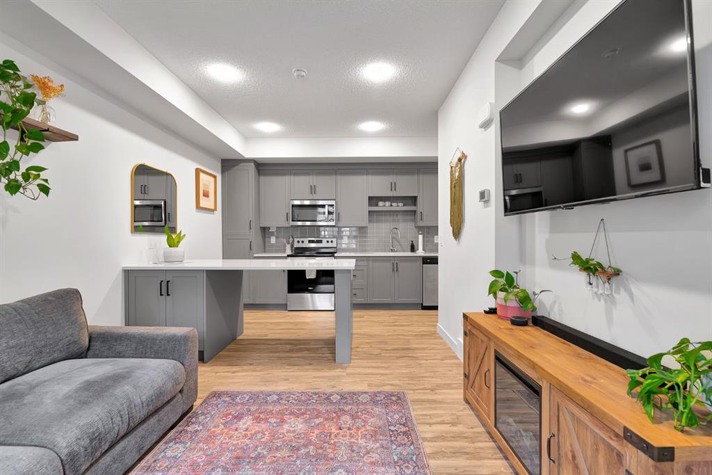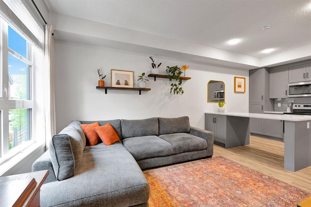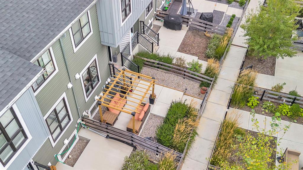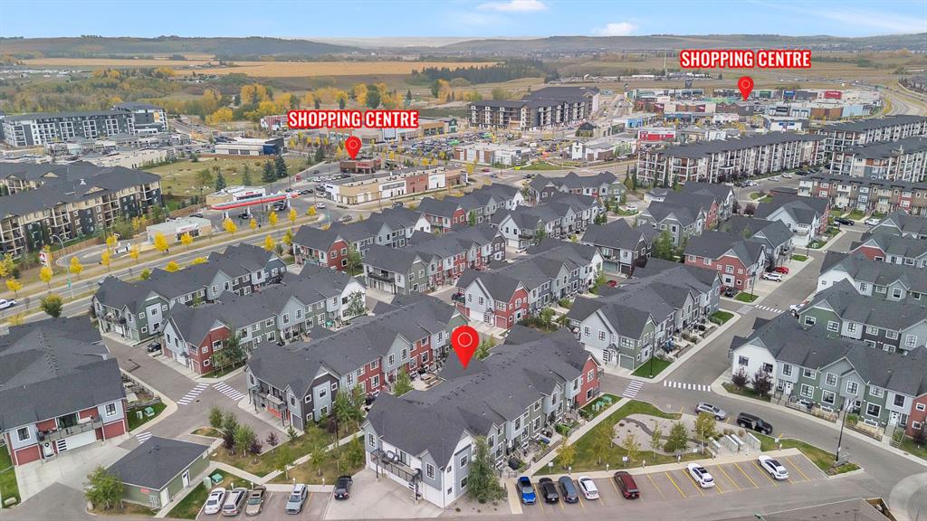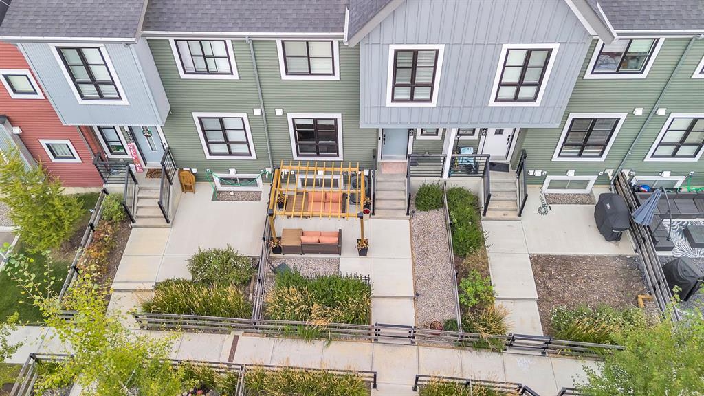Welcome Home to this beautifully maintained HOMES BY AVI townhome offering nearly 1000 sq ft of stylish living space with 2 bedrooms and 2.5 bathrooms in one of Calgary’s most desirable communities. The open-concept main floor is bright and inviting, featuring LUXURY VINYL PLANK flooring throughout. The chef-inspired kitchen showcases shaker cabinetry, QUARTZ COUNTERTOPS, an oversized island, stainless steel appliances, and a subway tile backsplash, flowing seamlessly into the living and dining areas. A convenient half bath completes this level. Upstairs you’ll find two spacious bedrooms, each with its own bathroom. The primary suite includes a WALK IN CLOSET and PRIVATE ENSUITE, while the second bedroom is served by another full bath. Smart storage with both a linen and broom closet adds to the functionality. The undeveloped basement provides future potential with rough-in bathroom plumbing, front load laundry, and plenty of storage. Enjoy outdoor living in your fenced courtyard with concrete patio, and GAZEBO, perfect for summer BBQs. STAY COOL all summer long with CENTRAL AC. A titled parking stall is included, with visitor parking nearby. Outstanding location—steps to Fish Creek Park, schools, playgrounds, dog parks, and sports fields, plus quick access to shopping and dining at Township at Legacy. Easy commuting with nearby public transit, Stoney Trail, and Deerfoot Trail. This is modern, low-maintenance living at its best!