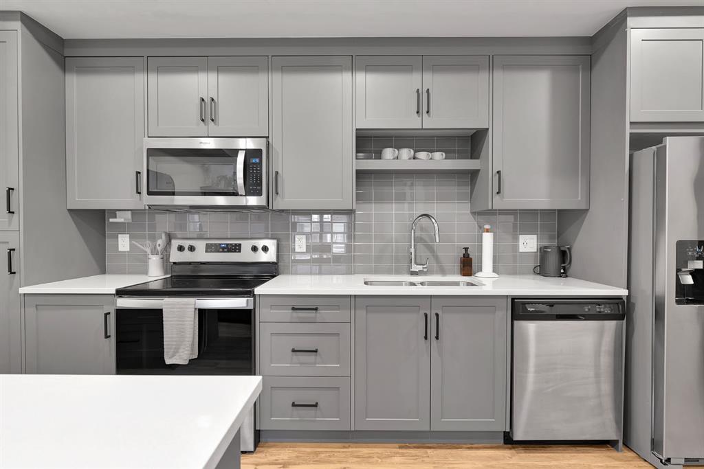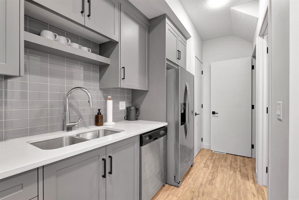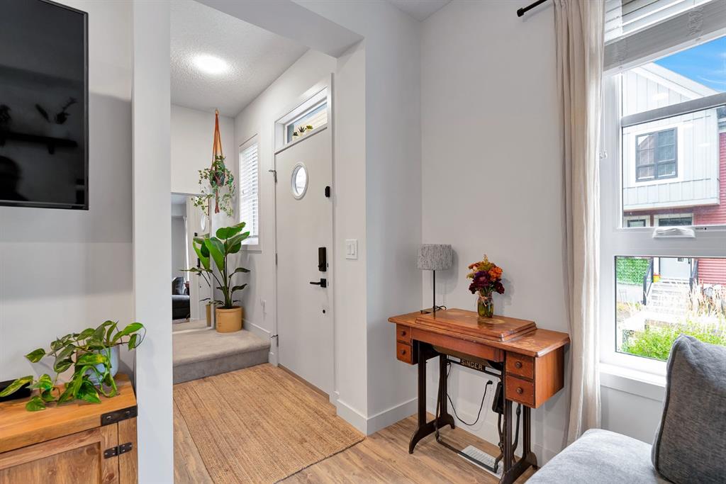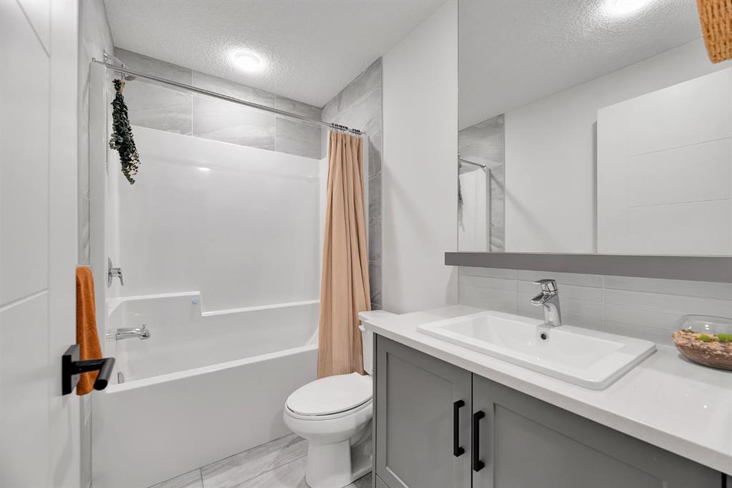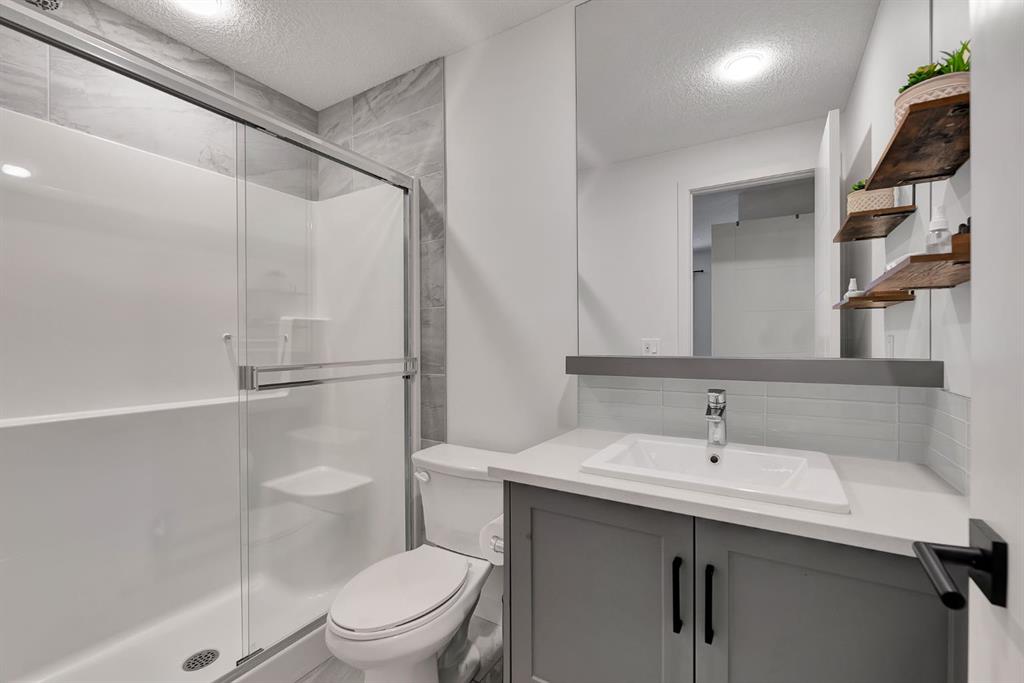 Welcome Home to this beautifully maintained HOMES BY AVI townhome offering nearly 1000 sq ft of stylish living space with 2 bedrooms and 2.5 bathrooms in one of Calgary’s most desirable communities. The open-concept main floor is bright and inviting, featuring LUXURY VINYL PLANK flooring throughout. The chef-inspired kitchen showcases shaker cabinetry, QUARTZ COUNTERTOPS, an oversized island, stainless steel appliances, and a subway tile backsplash, flowing seamlessly into the living and dining areas. A convenient half bath completes this level. Upstairs you’ll find two spacious bedrooms, each with its own bathroom. The primary suite includes a WALK IN CLOSET and PRIVATE ENSUITE, while the second bedroom is served by another full bath. Smart storage with both a linen and broom closet adds to the functionality. The undeveloped basement provides future potential with rough-in bathroom plumbing, front load laundry, and plenty of storage. Enjoy outdoor living in your fenced courtyard with concrete patio, and GAZEBO, perfect for summer BBQs. STAY COOL all summer long with CENTRAL AC. A titled parking stall is included, with visitor parking nearby. Outstanding location—steps to Fish Creek Park, schools, playgrounds, dog parks, and sports fields, plus quick access to shopping and dining at Township at Legacy. Easy commuting with nearby public transit, Stoney Trail, and Deerfoot Trail. This is modern, low-maintenance living at its best!