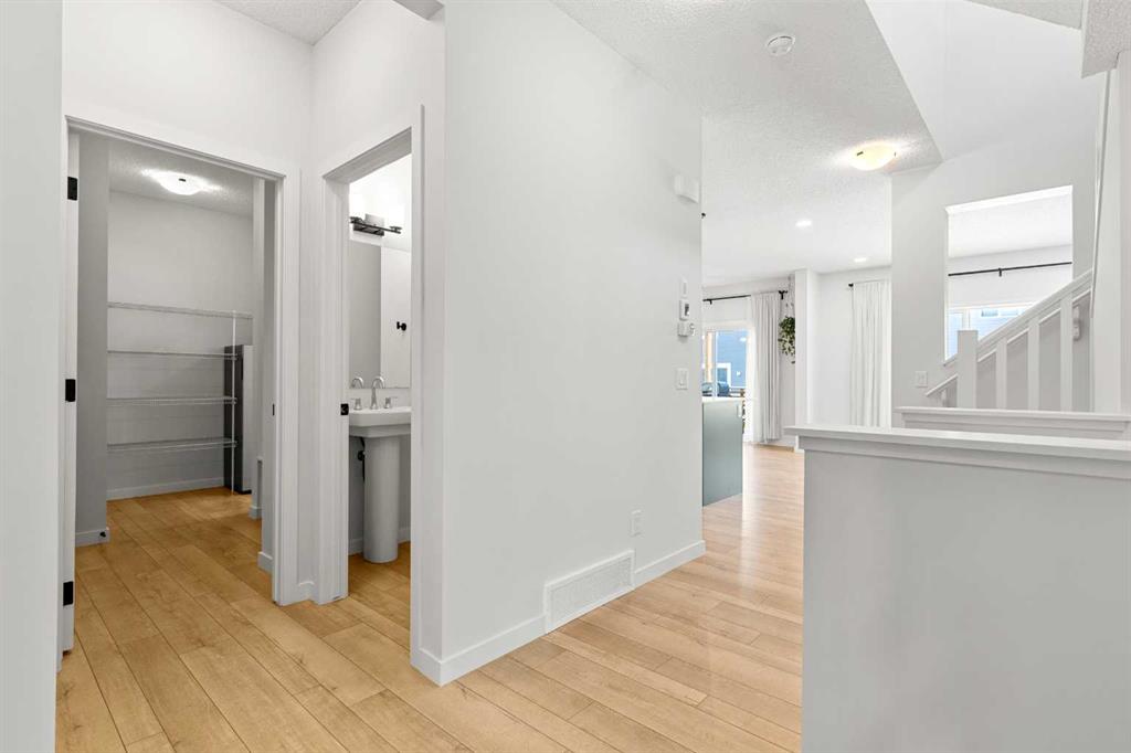 Nearly new 3 bedroom, 2.5 bathroom home offering over 2,000 sq ft of thoughtfully designed living space in the friendly community of Heartland. This move-in ready home offers stylish finishes, functional family living, and a great location within walking distance to Heartland shopping, parks, green space, and walking trails, with easy access to Highway 1A. The main floor features high ceilings, a spacious front entry, convenient 2-piece bath, desk nook, and a heated double attached garage that is slightly larger than average with room for a truck. The kitchen is sure to impress with a large quartz island, dual tone kitchen cabinetry, abundant cupboard space and walk-through pantry leading to a spacious mudroom with hooks and benches. The cozy living room features a gas fireplace with built-in bookshelves on both sides and a wood mantle. Luxury vinyl plank flooring runs throughout the main floor. Upstairs, you’ll find carpet throughout with a bonus room featuring upgraded vaulted ceilings, built-in cabinetry, 2 good-sized bedrooms with large windows, a spacious upper laundry room, and a large 5-piece bath with dual sinks. The primary bedroom offers plenty of space to relax, along with a gorgeous 5-piece ensuite with his and hers walk-in closets. Step outside to enjoy the rear deck with pergola and the fully fenced south-facing backyard. The low-maintenance front landscaping with gravel and mulch adds curb appeal, and there is even room to park a small RV or extra vehicle in the summer. The bright, wide open basement awaits your ideas, whether you need an additional bedroom, rec room, home office, or home gym. Located in the welcoming community of Heartland, this home offers easy access to neighborhood amenities and outdoor spaces. Built by Excel Homes in 2021, this is a fantastic opportunity to own a modern family home in one of Cochrane’s popular communities
