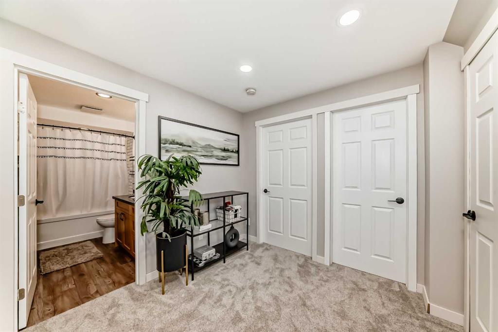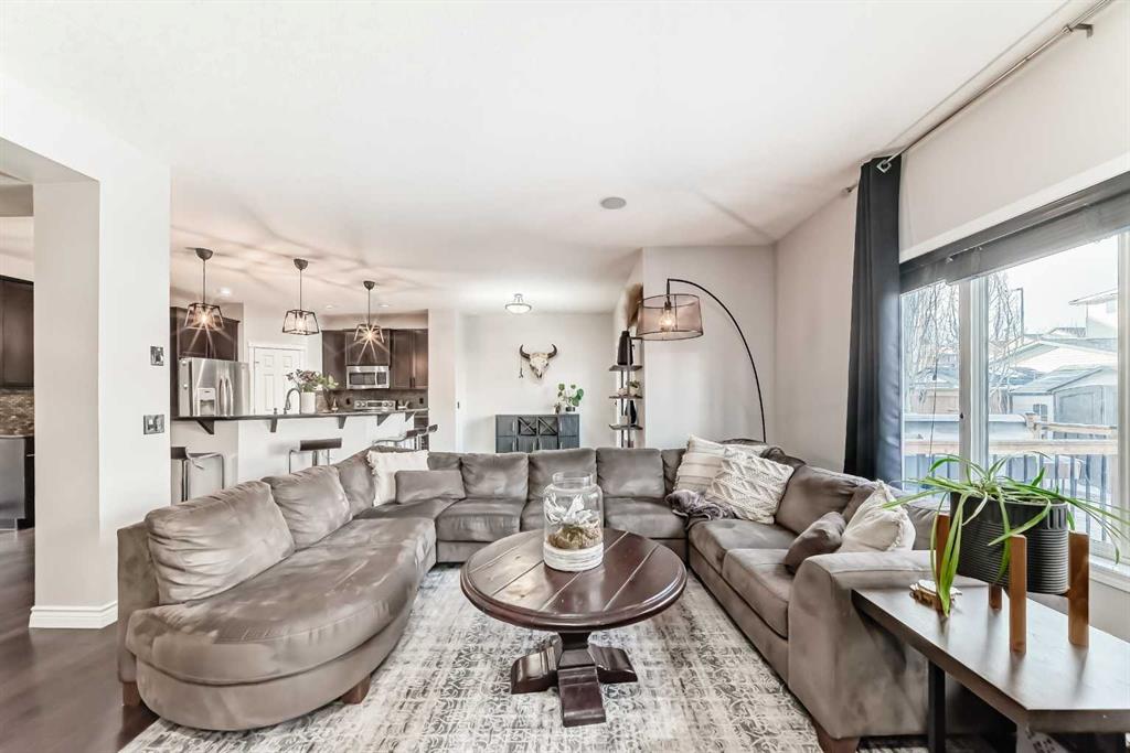 Welcome to this beautifully maintained detached home in the sought after community of Reunion, a family-friendly neighbourhood close to schools, parks, and scenic pathways. Offering over 2,600 sq ft of finished living space, this four bedroom, three and a half bathroom home is thoughtfully designed for comfortable everyday living and effortless entertaining. A large entrance with soaring ceilings and a spacious foyer creates a stunning first impression and flows seamlessly into the open concept main floor. At the heart of the home, the kitchen features a large two-tier wet island, walkthrough pantry, stainless steel appliances, and easy connection to the dining and living areas, ideal for gatherings and busy family life. Built-in speakers and pre-wiring for exterior speakers enhance your hosting experience, while fresh paint and brand new carpet throughout provide a bright, move-in-ready feel. Located just off the double-attached insulated garage, the main floor laundry room seamlessly doubles as a functional mudroom, creating the perfect drop zone for busy families. This well designed space offers a stacked washer and dryer, custom built-in cabinetry, a laundry sink, and convenient garage access with built-in storage racking to keep everything organized. Upstairs, a spacious south-facing bonus room is filled with natural light, offering the perfect retreat for movie nights or a kids play space. The primary bedroom features a trendy feature wall, a large walk-in closet, and a private ensuite complete with a soaker tub and separate shower. Two additional bedrooms, each with their own pinterest-inspired accent walls, add personality and charm to the upper level. The partially developed basement adds valuable living space with a generous fourth bedroom, a four-piece bathroom, a finished office or common area, and ample storage, with flexibility to further personalize if desired. Step outside to enjoy the beautifully landscaped backyard, designed for both relaxation and play, featuring a large deck, dog run, shed, mature trees, fire pit, raspberry bushes, and cedar planters. Don't wait, come take a look and see how this is an exceptional opportunity to own a spacious, family-focused home in one of Airdrie’s most desirable communities.