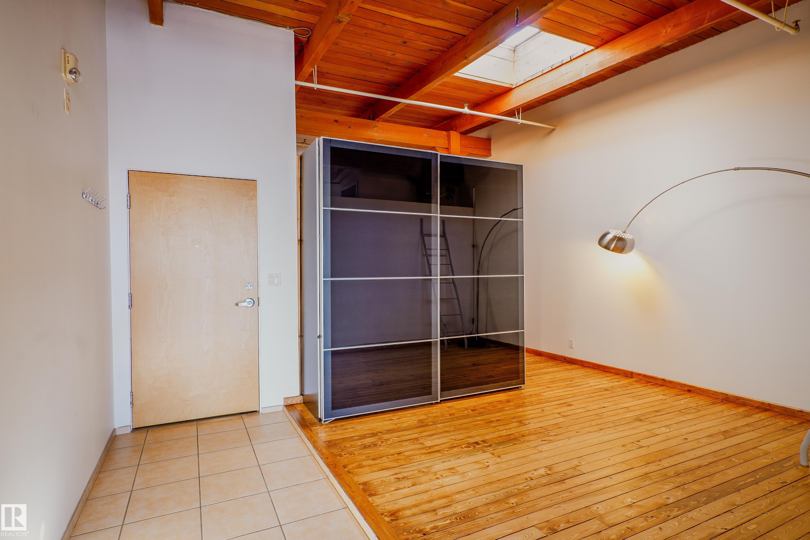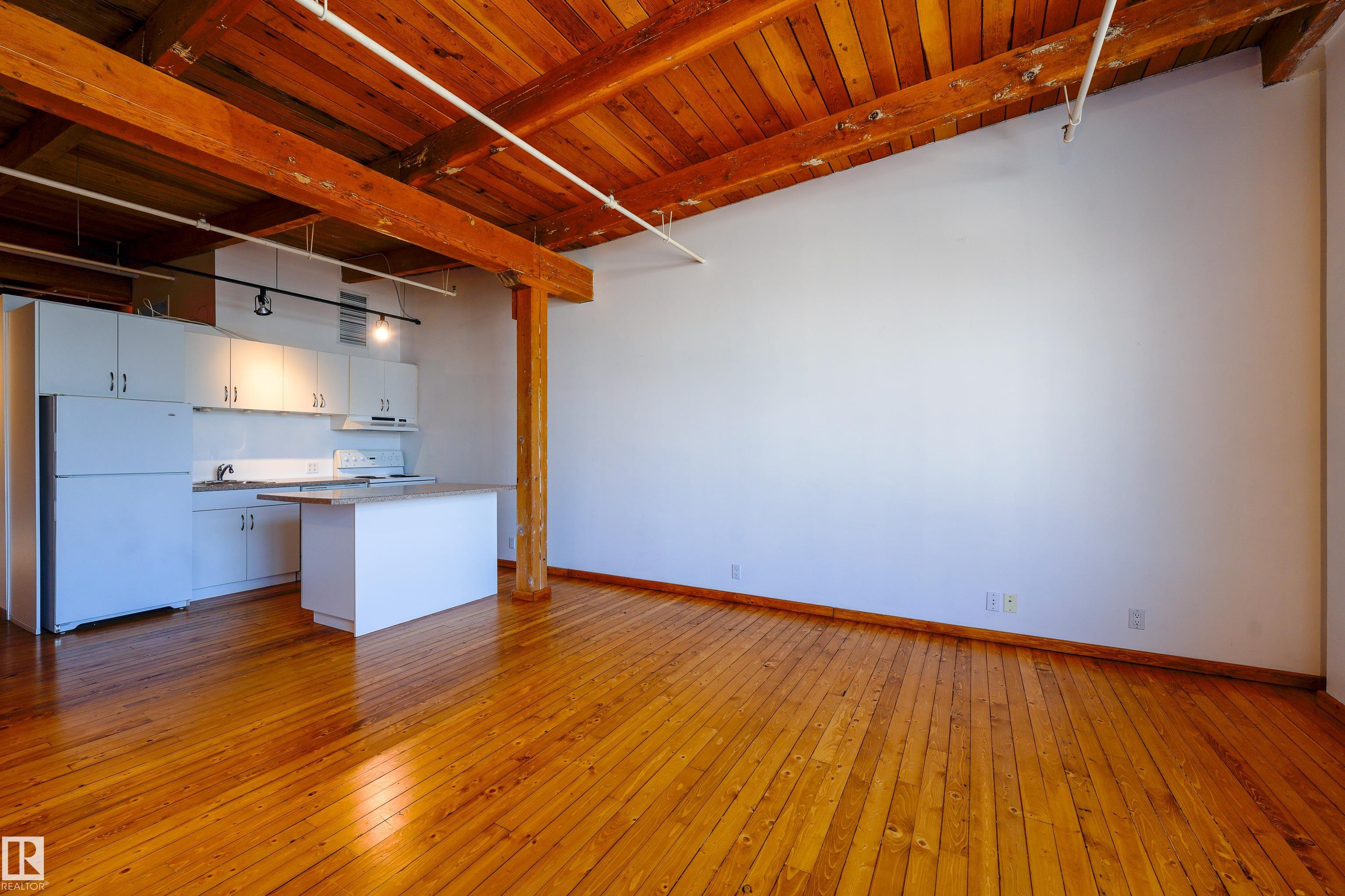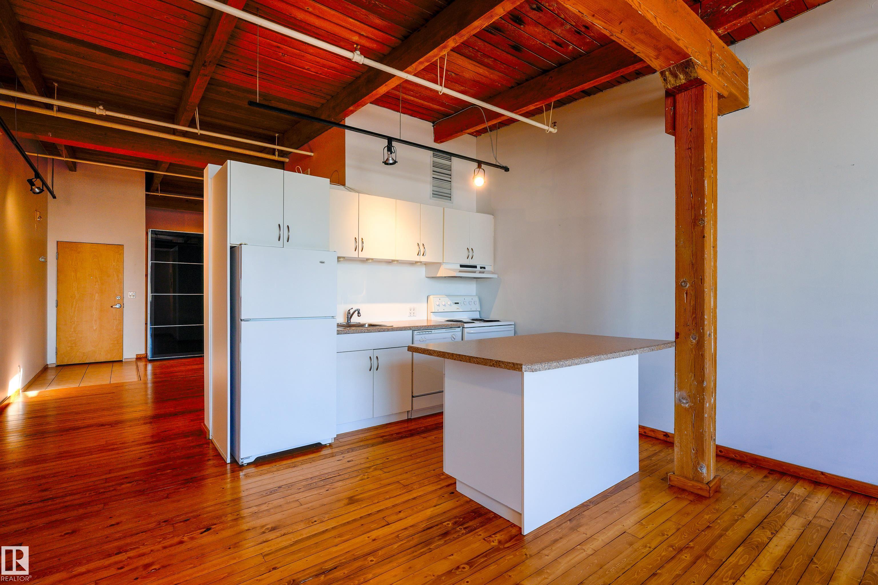 LOFT LIVING IN THE ICONIC SEVENTH STREET LOFTS! Discover unbeatable value in this 1-bed gem, set in the historic 1929 John Deere Warehouse by DUB Architects—where industrial character meets modern style.This unique space features massive windows, soaring timber ceilings, a skylight above the bedroom, open kitchen, and plenty of storage. Recent updates include fresh paint, new window coverings & newly refinished original hardwood floors, blending old-world charm with modern comfort. Parking is just steps from your back door, making city living effortless. Located in the heart of the Downtown Warehouse District, you’re only moments from the Ice District, MacEwan University, Jasper Ave & the future Norquest LRT stop. Whether you’re an investor or looking for an inspiring urban home, this loft delivers unbeatable location, income potential & lifestyle. Take a look today & get ready to move right in!