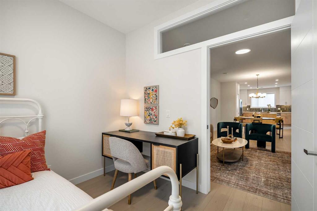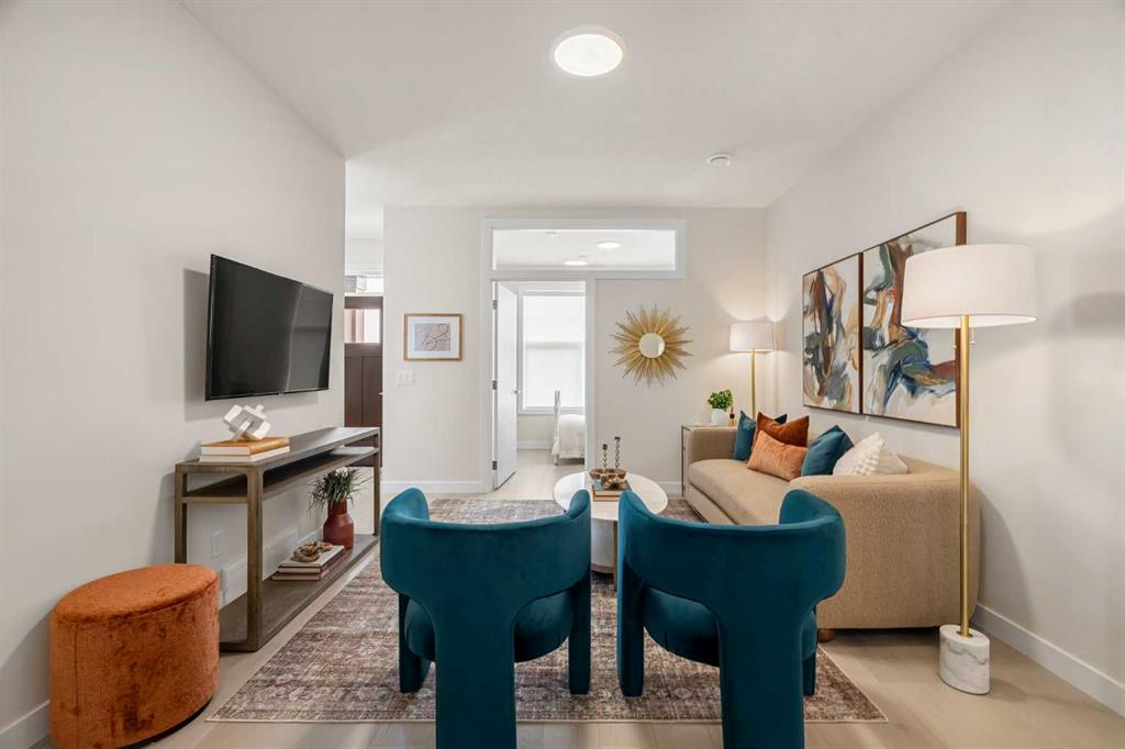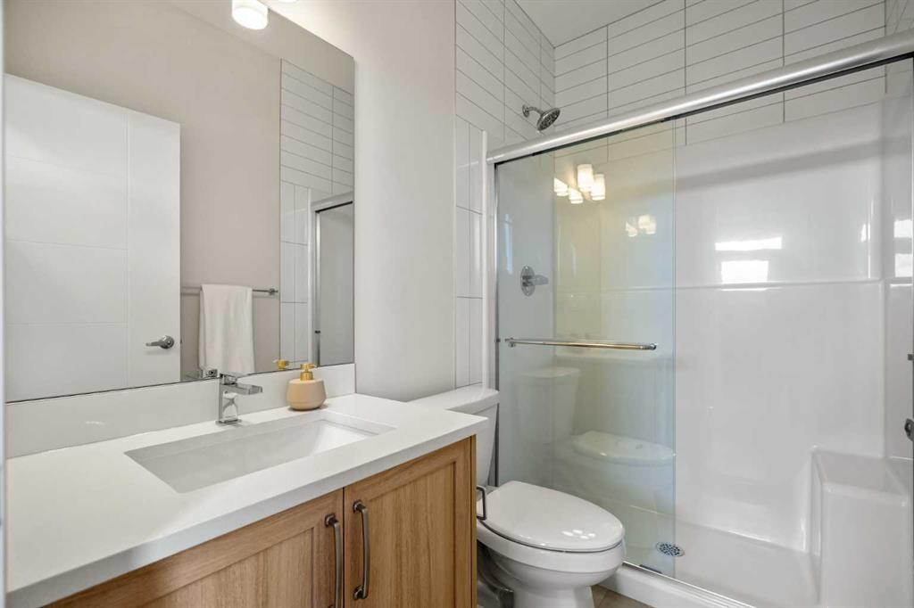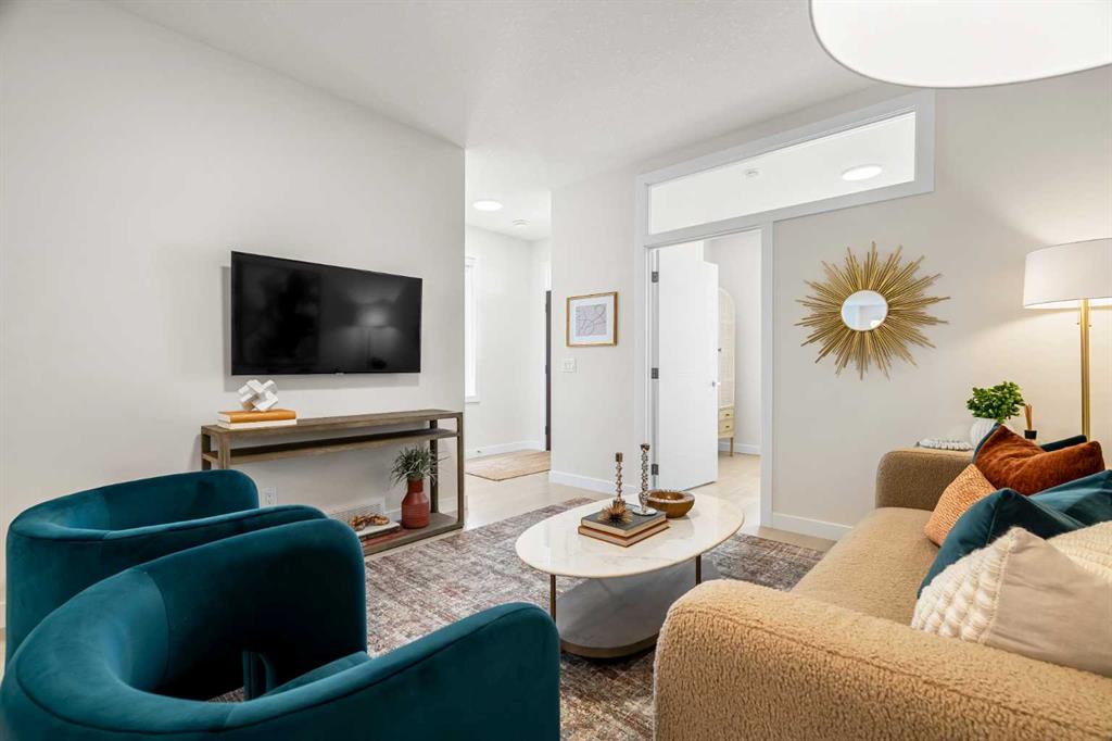 Welcome to The Edward by Partners Homes, a brand new quick possession opportunity in Keystone Creek, positioned on a premium corner lot directly across from green space. Featuring a separate side entrance and a 20’ x 21’ double detached garage, this home offers flexibility, strong curb appeal, and long-term potential in one of North Calgary’s newest communities. The main floor is thoughtfully designed for everyday functionality. A front flex room sits beside a full bathroom with a tiled walk-in shower, creating an ideal space for a private home office, study, or additional sitting area. At the rear of the home, the kitchen anchors the open living and dining areas and is finished with full-height cabinetry, quartz countertops, a large central island, stainless steel appliances, a chimney-style hood fan with built-in microwave, and a gas line rough-in for a future range. The layout flows comfortably for both daily living and entertaining. A rear mudroom adds practical organization, and a barbeque gas line is already installed for outdoor use. Upstairs, the primary suite includes a walk-in closet and a private ensuite with dual sinks and a tiled walk-in shower. Two additional bedrooms are complemented by a centrally located bonus room, offering flexible living space for a second lounge or media area. Upper-level laundry adds everyday convenience. The basement features 9 foot ceilings and rough-ins for future development, providing excellent potential to expand the living space over time. Additional highlights include knockdown ceilings, quartz surfaces throughout, completed front landscaping, and a Tudor farmhouse exterior elevation. Located in Keystone Creek, residents enjoy access to parks, wetlands, pathways, and convenient connections to Stoney Trail, Deerfoot Trail, CrossIron Mills, and YYC International Airport.