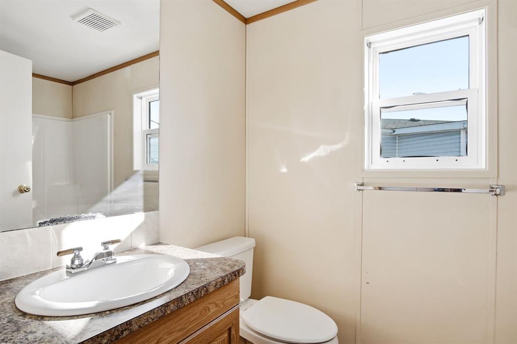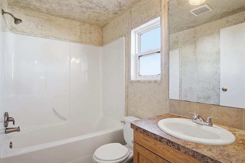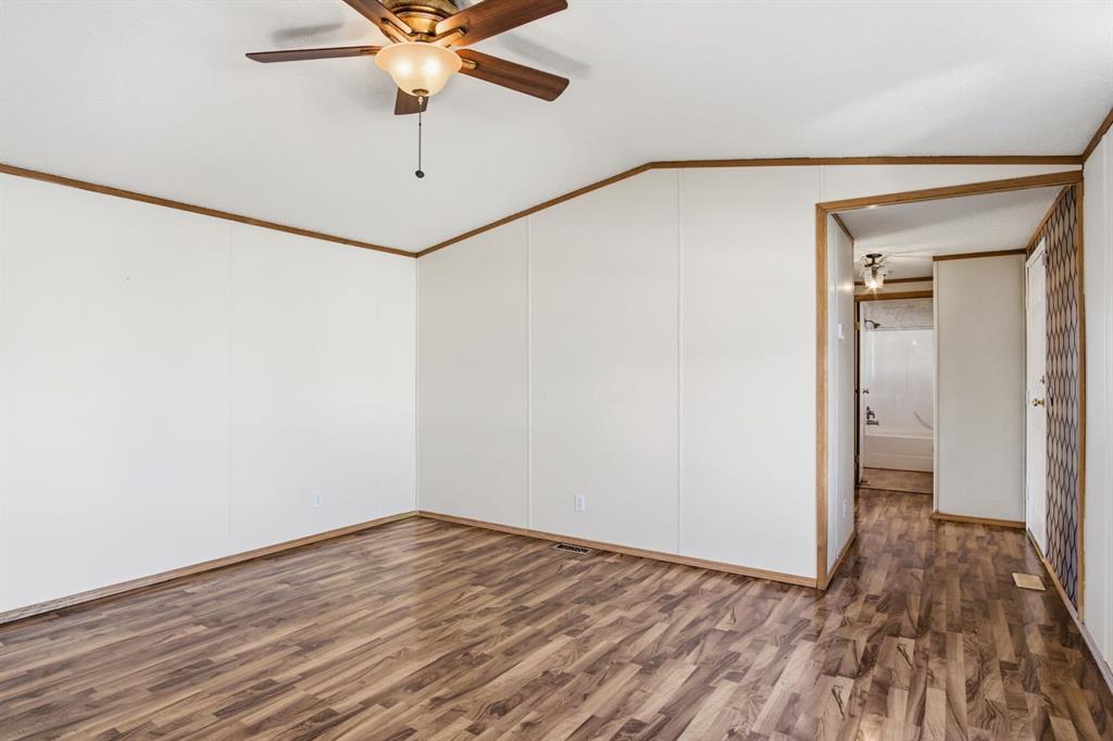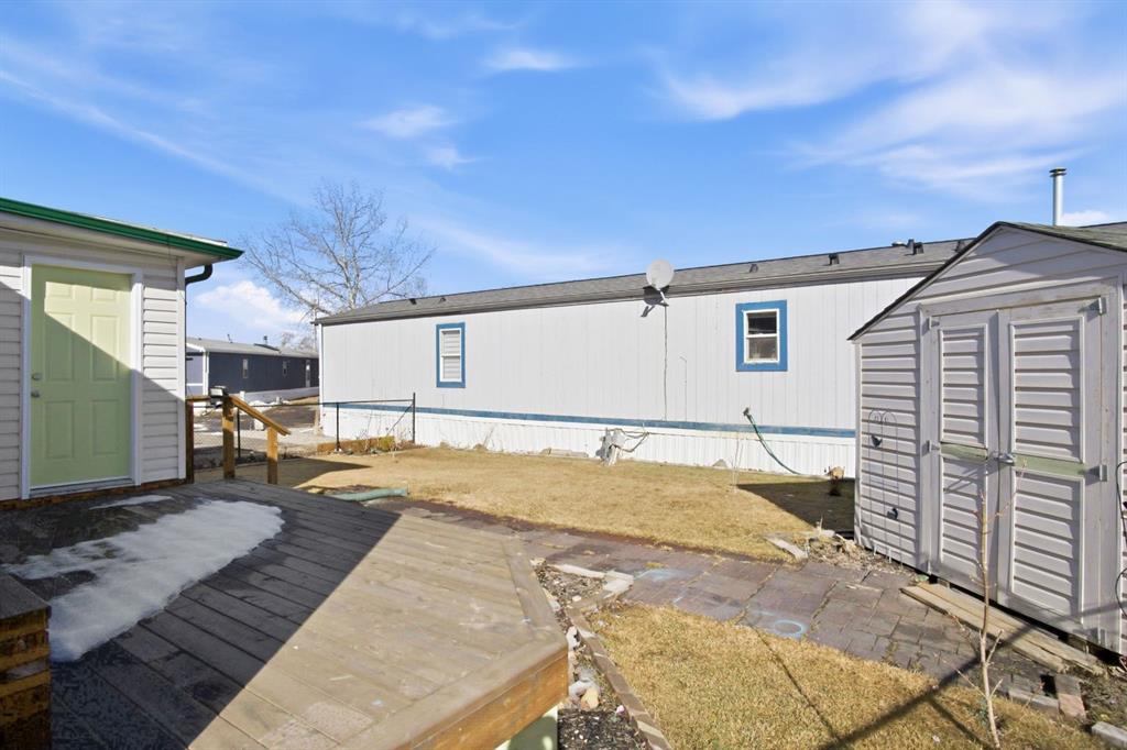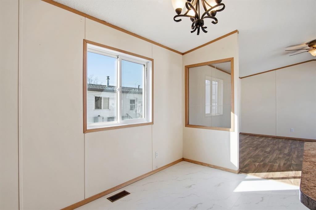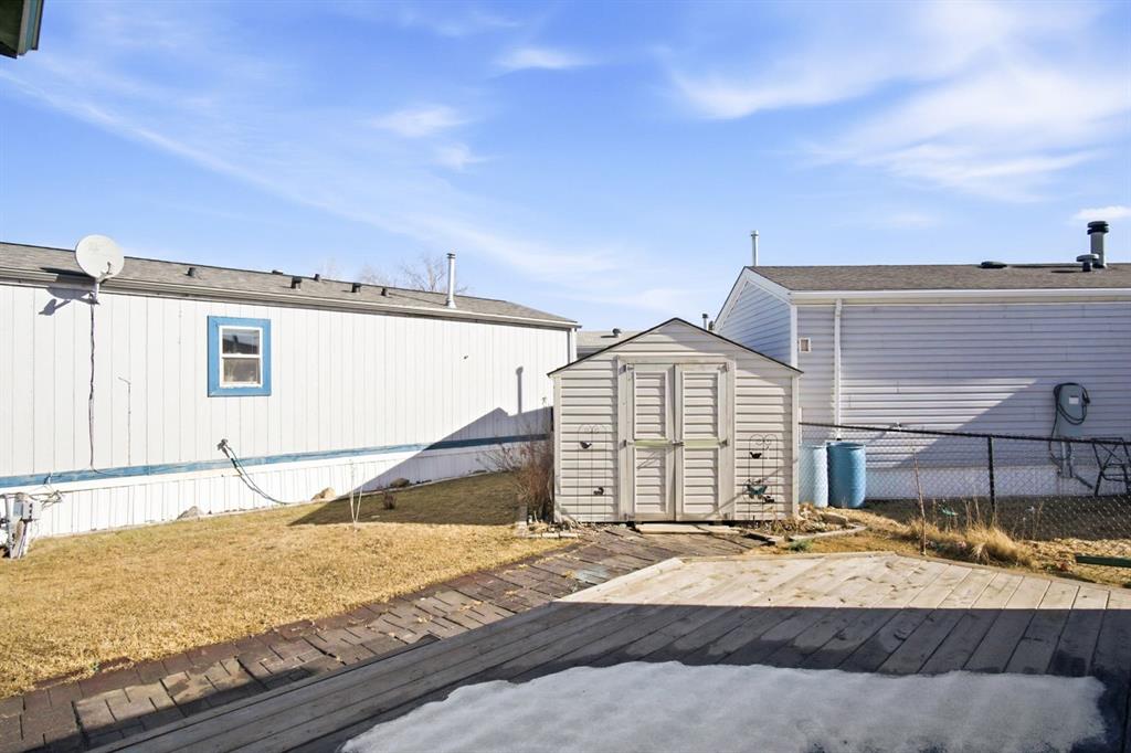 Welcome to this bright and well-maintained 3-bedroom mobile home offering over 1,190 sq ft of comfortable living space in the community of Olds. With a functional layout, great natural light, and thoughtful separation between living areas, this home is ideal for a variety of buyers. Step inside to a spacious and sun-filled living room, where large windows bring in an abundance of natural light, creating a warm and inviting atmosphere. The open-concept design flows seamlessly into the kitchen and dining area, making everyday living and entertaining effortless. The kitchen is both practical and spacious, featuring a central island, corner pantry, and plenty of cabinet and counter space to keep everything organized and within reach. Whether you're preparing meals or gathering with family, this space is designed to accommodate it all. The primary bedroom is privately situated at one end of the home, offering a quiet retreat complete with its own ensuite. On the opposite end, you’ll find two additional bedrooms and a full bathroom, providing great separation and flexibility for family, guests, or a home office setup. Additional highlights include a dedicated laundry area, durable laminate and linoleum flooring throughout, and an abundance of natural light that enhances the home’s bright and airy feel. Step outside to enjoy the rear deck perfect for relaxing or summer BBQs—along with a generously-sized yard and a convenient parking pad. Affordable, functional, and move-in ready, this is a fantastic opportunity to get into homeownership or downsize without compromise.