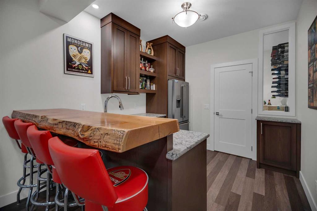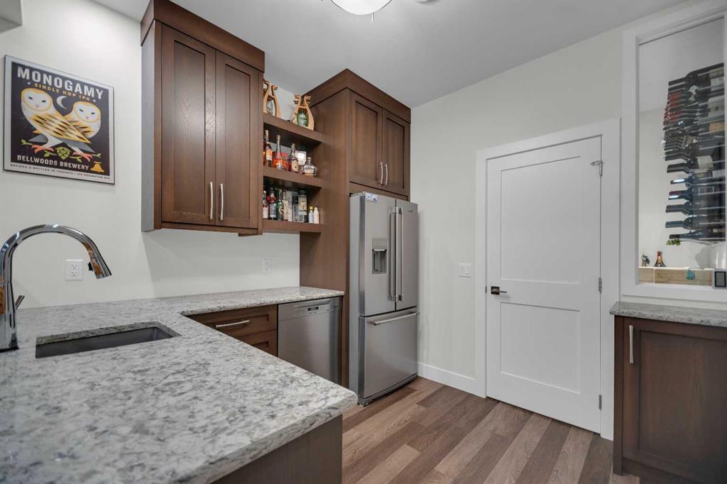 Welcome to this extraordinary custom-built bungalow, offering over 2,000 sq. ft. on the main floor plus a fully finished basement. Built in 2019, this home beautifully combines timeless craftsmanship with modern design, creating a warm and inviting atmosphere in one of Calgary’s most established neighborhoods. From the moment you enter, soaring 10 ft ceilings and oversized windows (triple-pane with double Low-E, double Argon, and full metal-clad exterior) set the tone for an airy, light-filled space. The open-concept main level flows seamlessly, anchored by a stunning kitchen that inspires gathering—complete with a large island, walk-in pantry, and high-end Miele appliances: steam combination oven, full-size oven, speed oven, warming drawer, ceramic induction cooktop, and two dishwashers. The adjoining living and dining areas open gracefully to the outdoors, perfect for hosting or quiet evenings at home. The primary suite is a private retreat, featuring expansive windows and a luxurious spa-inspired ensuite. Here, you’ll find a walk-in shower, dual vanities, and elegant finishes that make everyday living feel indulgent. A separate walk-in closet offers ample storage and thoughtful design, while convenient access to the main floor laundry is located just outside the suite for added practicality. The finished lower level extends your living space, with a generous recreation area, wet bar with full fridge and dishwasher, wine cellar, fitness room, and two additional bedrooms—one with its own ensuite and walk-in closet. In-floor zoned heating throughout ensures year-round comfort. Every detail of this home reflects a commitment to quality, from the building envelope finished with James Hardie siding and shakes, to the careful selection of features designed to maximize comfort and minimize maintenance. Professionally landscaped outdoor spaces further enhance the appeal, blending beauty with low upkeep to create a seamless living experience both inside and out. An attached heated garage adds everyday convenience to this well-planned home. Blending sophistication with functionality, this property is more than a home—it’s a lifestyle. A rare opportunity to own a truly spectacular residence in a mature, welcoming community just steps away from Fish Creek Park’s endless walking and biking trails, The Bow Valley Ranch, Annie’s Café, and Park 96, while still enjoying quick access to Deerfoot Trail and a short drive to shopping, dining, and amenities. Parkland offers the perfect balance of nature, convenience, and community spirit—whether you’re raising a family or seeking a peaceful, connected place to call home.