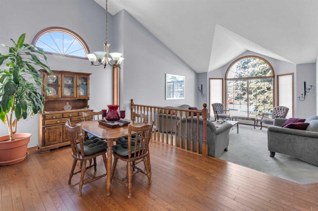 Welcome to this spacious and beautifully maintained 2-storey home located on an oversized lot in the highly desirable community of Woodbine. Offering over 3,000 sq ft of total living space, this home features breathtaking mountain views and a sunny southwest-facing backyard perfect for relaxing or entertaining. The main floor offers a functional and elegant layout with a formal living room, formal dining room, main floor office, convenient laundry room, and a 2-piece bathroom. The bright family room showcases large windows and a cozy gas fireplace, creating a warm and inviting space. The kitchen features hardwood floors, oak cabinetry, and opens directly onto a huge deck where you can enjoy stunning mountain views and beautiful sunsets. Upstairs, you will find two spacious bedrooms, a 4-piece bathroom, and a large primary retreat complete with a walk-in closet, private ensuite, and spectacular mountain views. The fully finished basement provides incredible additional living space, including a fourth bedroom, 3-piece bathroom, a large and very bright family room with gas fireplace, and a mini kitchen — perfect for extended family or guests. Additional features include two furnaces, air conditioning, and a newer hot water tank for added comfort and efficiency. Ideally located close to Stoney Trail, all levels of schools, shopping, parks, and amenities, this home sits in a well-established, family-friendly community and offers the perfect blend of space, comfort, and location.