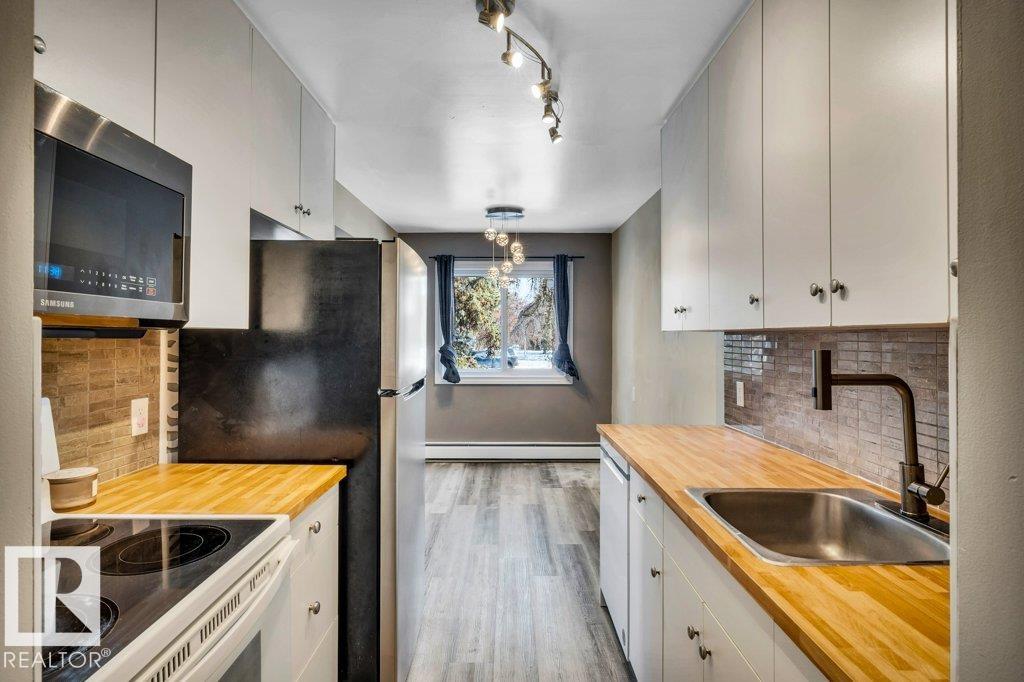 Amazing value for this 2-bedroom apartment in sought after Riverbend. Incredible location, only 2 minutes away from the River Valley trails & 7 minutes walk away from the Fort Edmonton Footbridge/beach. Public transit out your front door, two-minute drive to the Whitemud & ten minutes commute to the University of Alberta, your accessibility is unparalleled. Multiple schools including Brander Gardens Elementary, Riverbend Junior high, Tempo & St. Monica’s are all minutes from the building. Riverbend Manor is a very well taken care of complex and will impress anyone looking in this price point. Inside the unit has been beautifully upgraded & renovated with professional installed flooring in the living area, kitchen & halls. Brightly upgraded kitchen with white cabinets, butcher block counters & dishwasher, fridge, Microwave all less than 3 years old. Nicely appointed bathroom was completed within last year. You wont want to miss this oppourtunity!