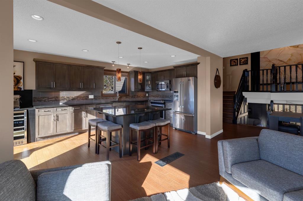 Nestled in a serene cul-de-sac in Calgary’s family-friendly Ranchlands community, 224 Ranchridge Bay NW is a beautifully maintained 4-level split on an expansive 11,603 sq ft(over a quarter acre) pie-shaped lot, enveloped by mature trees that ensure ultimate privacy while creating a playful paradise for kids—with gentle slopes perfect for winter tobogganing or summer slip-and-slide adventures. Step inside the welcoming large foyer, where the main level unfolds into a cozy family room with sliding doors to the deck and sprawling backyard, alongside a versatile den/office, convenient laundry room with direct deck access, and a 2-piece bath. Ascend to the upper level to discover three generous bedrooms and two full bathrooms, —including the primary suite with a private balcony overlooking the lush yard—highlighted by a spacious 3-piece ensuite with luxurious heated floors. Over the past 16 years, this home has undergone extensive thoughtful updates: a cozy gas fireplace in the family room, furnace, modernized bathrooms, a stunning main-floor renovation opening the living and dining areas to a gourmet kitchen featuring a spacious island, energy-efficient exterior doors and Pela windows throughout the finished living spaces, a brand new water heater, 2017 shingles, 2018 insulation-backed vinyl siding, refreshed eaves, fascia, soffits, and stone accents, durable Duradek and railings on balconies, replaced much of the fencing, and sleek modern garage doors to boost curb appeal. The oversized garage boasts epoxy-coated floors, a 240V outlet, and room for two large vehicles. Just steps from public and Catholic elementary schools, abundant amenities, scenic walking paths, and lush community parks, this move-in-ready gem offers the perfect blend of comfort, style, and outdoor bliss.