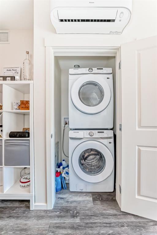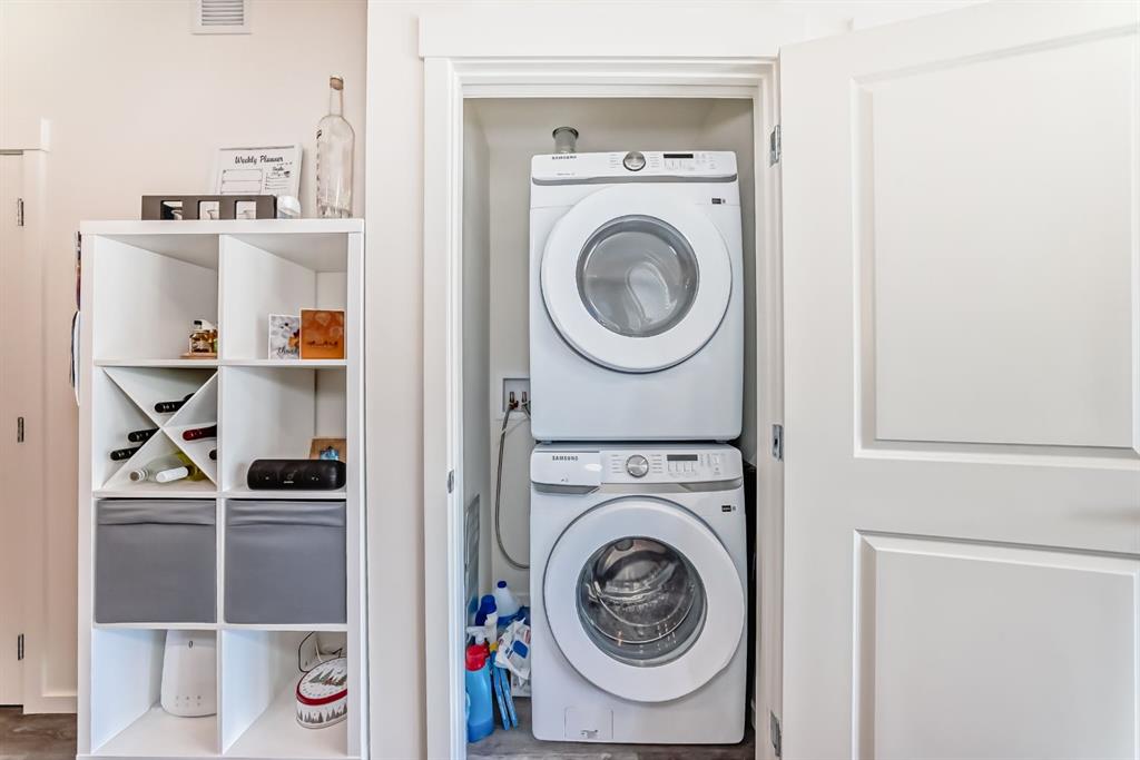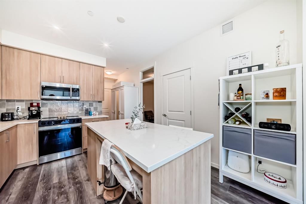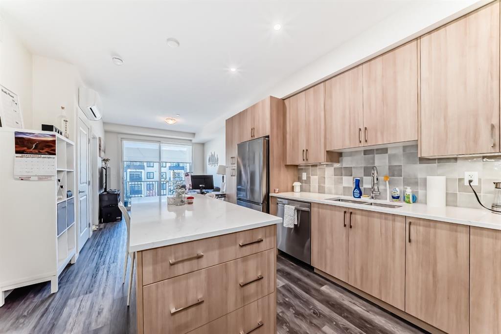 Welcome to Legacy Park III – a stylish and modern condo community in the heart of SE Calgary. This 2-bedroom, 2-bathroom “Dakota” floor plan offers 704 sq. ft. of thoughtfully designed living space with a bright, open-concept layout. The home features an upgraded kitchen complete with Samsung stainless steel appliances, quartz countertops, pantry storage, and 42” upper cabinets, flowing seamlessly into the living and dining area with upgraded pot lighting. The private balcony extends your living space outdoors, perfect for morning coffee or evening relaxation. Both bedrooms are well-sized, including a primary suite with a walk-in closet and ensuite finished with upgraded tile, fixtures, and a deluxe shower package. Additional highlights include vinyl plank flooring, upgraded bathroom tile, custom closet organizers, and in-suite laundry with Samsung washer/dryer. This unit includes a titled underground parking stall and access to visitor parking. Monthly condo fees cover exterior maintenance, management, reserve fund contributions, and common area upkeep. Enjoy peace of mind with the Alberta New Home Warranty Program (1-year workmanship, 2-year delivery/distribution systems, 5-year building envelope, 10-year structural). Located in the highly sought-after community of Legacy, you’ll be steps from pathways, parks, shopping, dining, schools, and quick access to Stoney Trail and Macleod Trail. Perfect for first-time buyers, downsizers, or investors seeking a low-maintenance lifestyle in a vibrant, growing community.