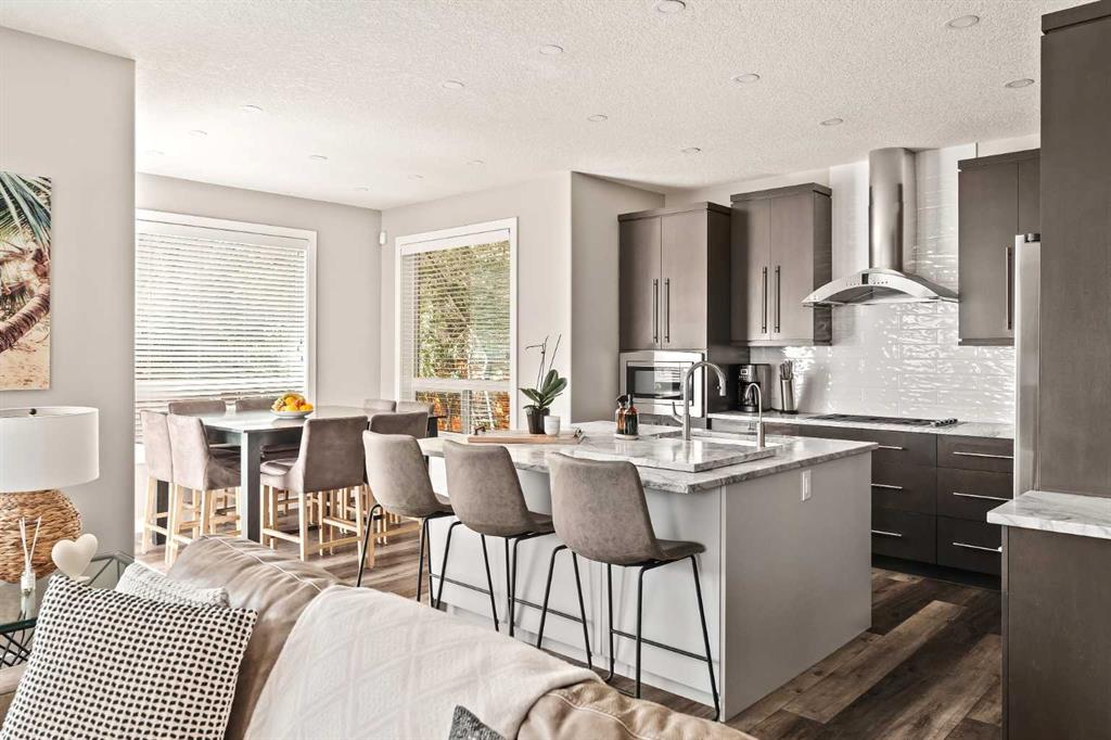 Welcome to this beautifully renovated and impeccably maintained home in the sought after community of Aspen Woods. Ideally located on a quiet cul-de-sac and set on a spacious corner lot, this home has so much to offer. From the moment you enter, you’re greeted by a thoughtfully updated interior that blends warmth with modern design. The bright, open-concept main floor is flooded with natural light from expansive windows and features a spacious living room centered around a cozy gas fireplace. A versatile flex space near the foyer provides the perfect area for a home office, den, formal dining, or additional seating area. The gourmet kitchen is a true highlight, showcasing stunning quartzite countertops, a large island with seating, stainless steel appliances including a Dacor gas cooktop, and a sunlit dining area — ideal for family meals or entertaining. A walkthrough pantry connects directly to the mudroom, while a stylish two-piece powder room completes the main level. Upstairs, the primary suite offers a private retreat with a spa-inspired ensuite and a generous walk-in closet. Two additional bedrooms, a full bathroom, upper-level laundry, and a spacious bonus room provide plenty of space for the whole family. The home features new flooring throughout and is equipped with air conditioning for year-round comfort. The massive unfinished basement awaits your personal touch, with plumbing already roughed in, the additional space offers endless possibilities. Outside, you'll find a beautifully landscaped, west facing backyard; a private and inviting space perfect for relaxing or hosting guests. This exceptional home combines thoughtful design with functional living, all just minutes from top-tier schools, shopping, amenities, and with easy access to downtown Calgary and the mountains. Don’t miss your chance to own a move-in ready home in one of the city’s most desirable neighborhoods. Schedule your private showing today.