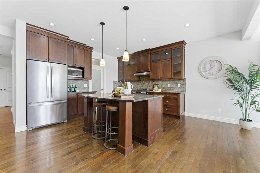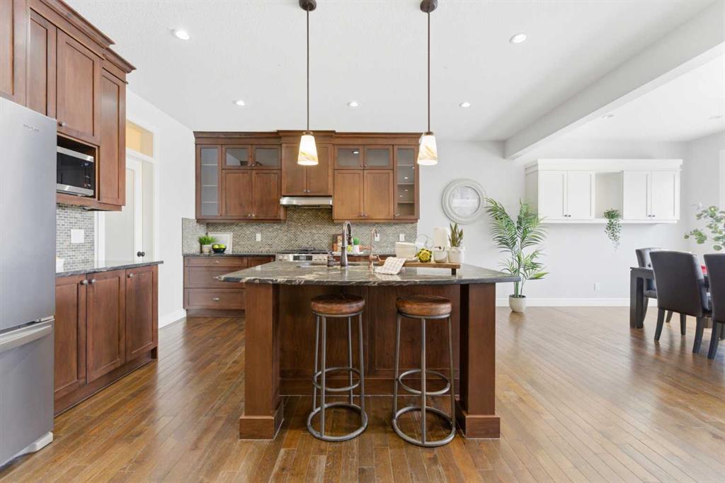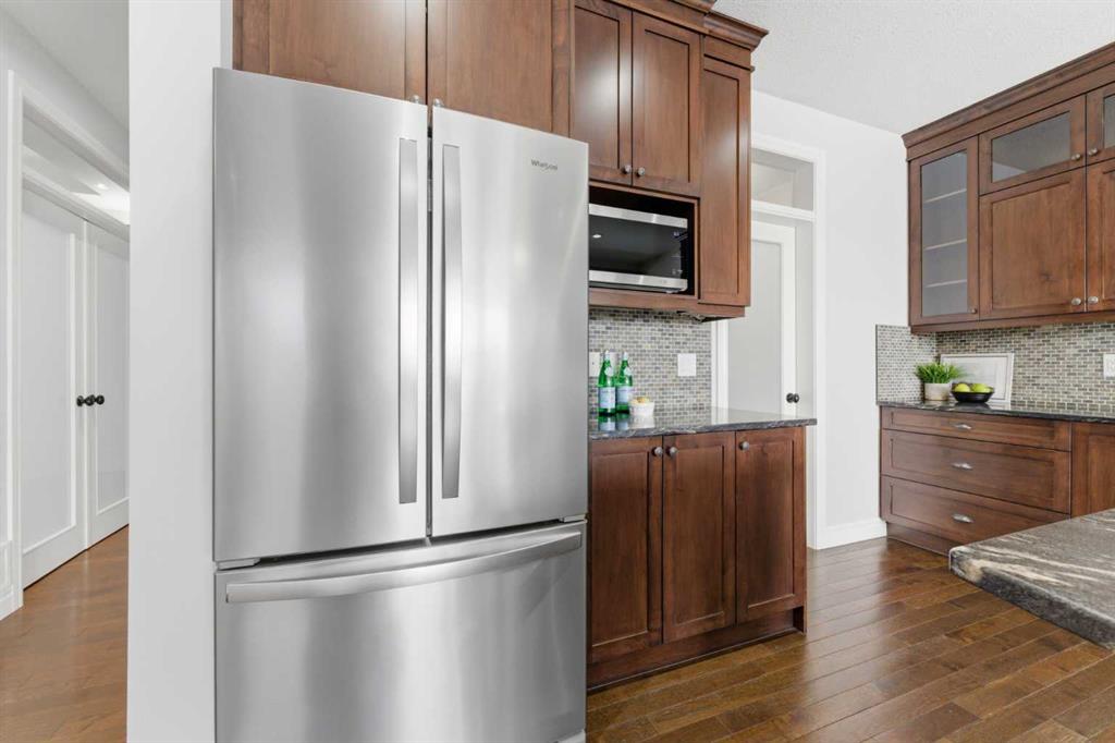 Tucked away on a quiet cul-de-sac with no neighbours behind, this 5BR, 3.5 Bath home offers a rare sense of space, privacy, and connection to nature. The backyard is truly something special—one of the largest in the area, just under 10,000 sq ft—offering a setting that feels more like your own private park. It’s the kind of space where kids can run freely, explore, and imagine, while parents enjoy peaceful evenings surrounded by open skies and greenery. Inside, an abundance of windows allows natural light to pour in, creating a bright, warm, and welcoming atmosphere throughout. Designed with family life in mind, the main floor offers a dedicated office with built in cabinetry is ideal for working from home, alongside comfortable living and dining spaces that invite connection and everyday ease. Rich hardwood flooring adds warmth and character, enhancing the overall feel of the home. At the heart of the home, the kitchen is both beautiful and highly functional, featuring quartz countertops, a massive central island, a walk-in pantry, and newer appliances—perfect for the chef in the home and a natural gathering place for family and friends. It overlooks the inviting living room with a gas fireplace, creating a seamless flow for everyday living and entertaining. The dining area is filled with light and offers views of the backyard and deck, making indoor-outdoor living feel effortless. Upstairs, you’ll find a layout families love, with 4 generously sized bedrooms all on one level. A cozy bonus/flex room at the top of the stairs offers incredible versatility—perfect as a secondary office, reading nook, or play area. The primary suite is impressively sized, offering a peaceful retreat with room to truly unwind. The convenience continues with an upper-level laundry room, complete with a window for natural light and plenty of cabinetry for added storage and organization. The fully developed walkout basement continues the theme of flexibility, offering a fifth bedroom and full bathroom, along with a spacious recreation area that can easily adapt to your needs—whether it’s a home gym, playroom, or dedicated movie night space. With direct access to the backyard, it creates a seamless extension of your living space—step outside and you’re instantly connected to your own private, park-like setting. This is more than just a house—it’s a place where your family can grow, gather, and create lasting memories. With a layout that truly works and a setting that’s hard to find, this is a home that needs to be experienced to be fully appreciated.