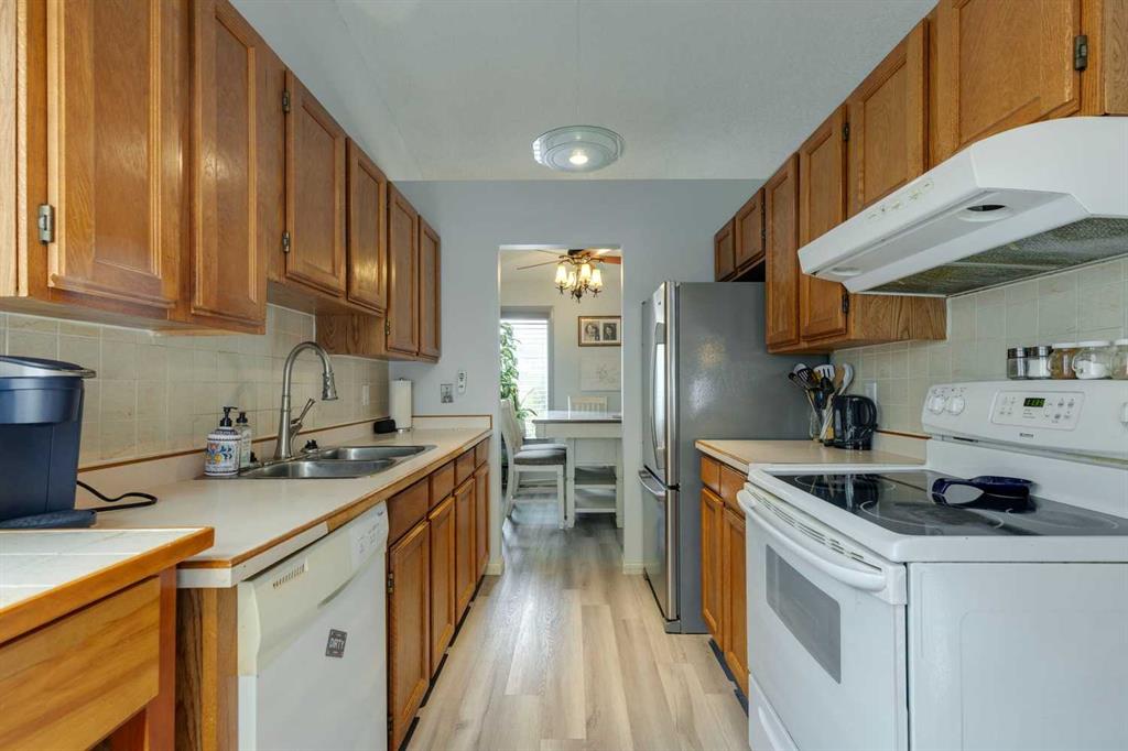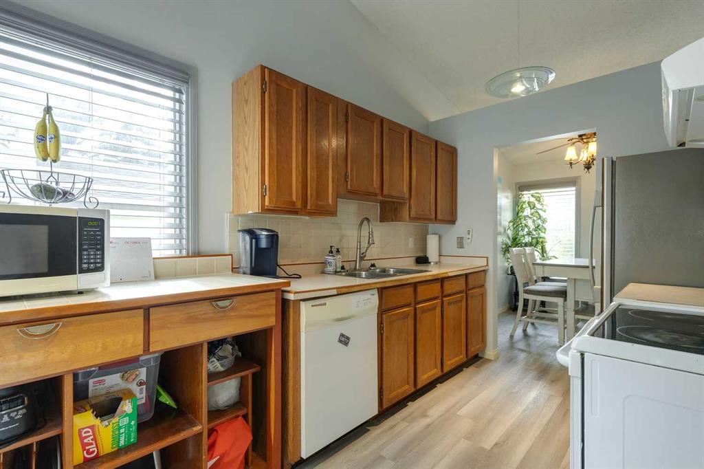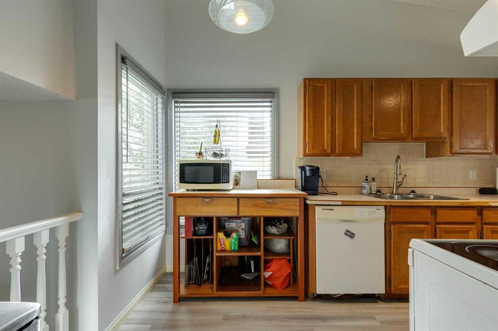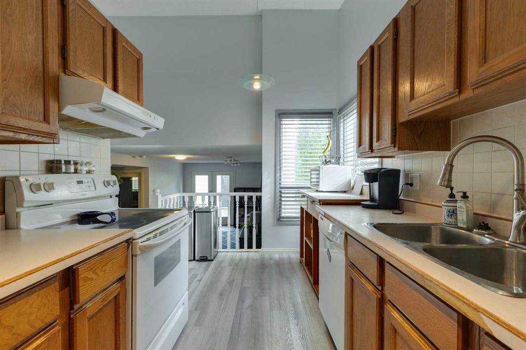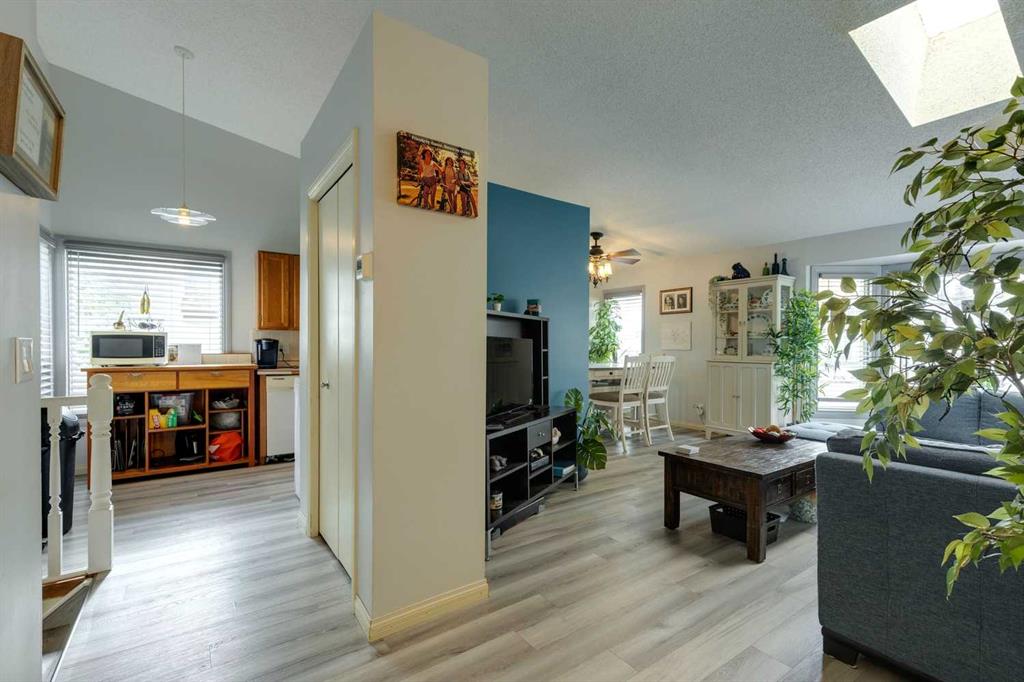 Welcome to your new home in the desirable community of Hawkwood. This delightful 4-level split is the perfect blend of style and function, with over 1700 sq.ft. of thoughtfully developed living space. This home features a heated double detached garage that’s perfect for both secure parking and a comfortable workspace. As you step inside, you’ll immediately notice the stunning luxury vinyl plank flooring that flows through the main and upper level, providing a modern durable finish. The main floor is a bright and inviting space, highlighted by a spacious living room featuring a west-facing bay window and skylight to fill the home with natural light all day long. The kitchen is large and functional with plenty of cupboard and counter space to spread out, and it flows seamlessly into the dining area, making it perfect for entertaining. The upper level is your private sanctuary. The primary bedroom is a true retreat, complete with a built-in dressing table, walk-in closet, and a convenient 4-pc cheater ensuite that it shares with a spacious second bedroom. The third level is a fantastic walkout that offers a cozy family room, perfect for movie nights. You’ll love the gas fireplace that keeps you warm on chilly evenings. Step out to your fully fenced backyard oasis with a deck, perfect for morning coffee or an evening cocktail. This level also features a third bedroom – a great option for a home office and a 3-pc bath that is ready for your personal touches. The fourth level makes for an excellent recreational space or a fourth bedroom, thanks to an egress window added in 2020. This home has been well-maintained with upgrades including new shingles, eaves and downspouts, the luxury vinyl plank flooring, furnace and electrical panel, all completed in 2019. The Poly B plumbing was professionally replaced in 2020 for your peace of mine, though a little bit of drywall repair is still required from the replacement. This home is conveniently located, close to shopping, dining schools, public transit, and major roads for easy access. This home is must-see!
