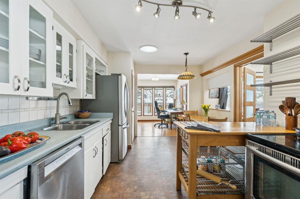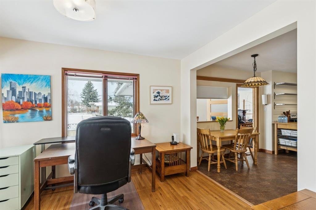 Welcome to an exceptional opportunity in the highly sought-after community of Banff Trail. This prime inner-city location is known for its family friendly atmosphere, proximity to top schools, parks, and unbeatable access to the University, transit, and McMahon Stadium. Situated on a generous sought after 50'x120' corner lot, this property offers incredible potential for redevelopment, investment, or long term holding. The prominent frontage and corner positioning provide added design flexibility and strong future value, making it an ideal candidate for builders, investors, or those looking to secure a premium lot in a rapidly evolving neighbourhood. The impeccable maintained home itself is filled with natural light and character. The main floor features hardwood floors throughout, a bright and open living groom with cozy gas fireplace, and a seamless flow into the dining area. The spacious kitchen includes glass-front cabinets, a convenient pass-through from the dining are to the breakfast nook, and solar tubes that enhance the already abundant natural light. A thoughtfully added den connects to the primary bedroom and provides direct access to the backyard. Two additional bedrooms, one also featuring a solar tube, and a 4pc bath complete the main level. The lower level offers a versatile layout with a. massive rec room, den which can ideally function as a bedroom, 3pc bathroom, laundry area with ample storage and a large workshop. Step outside to enjoy a large deck overlooking the yard and garden, perfect for summer entertaining. The property also includes a single detached garage and storage shed. Whether you're looking to move in, rent out, or redevelop, this property delivers outstanding value in one of Calgary's most desirable inner-city communities. A rare change to secure a corner lot with substantial frontage that's just minutes away from the LRT, Calgary Winter Club, and Confederation Park.