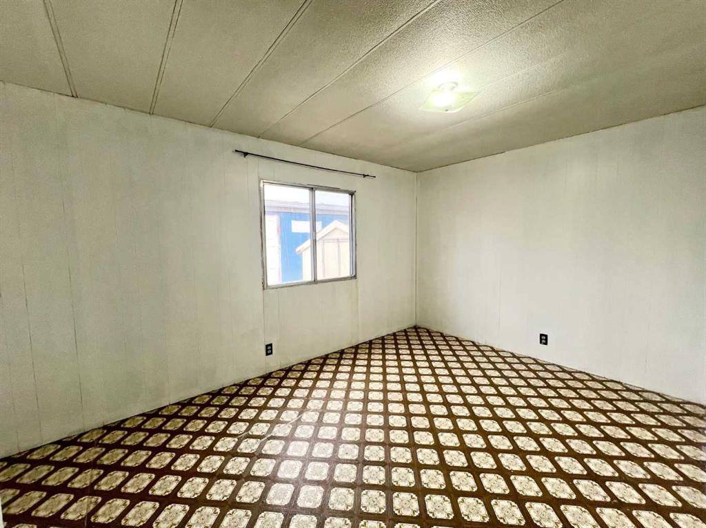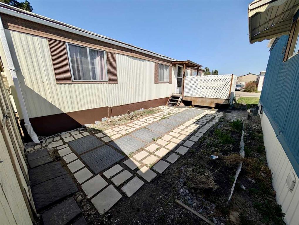 his 3-bedroom, 2-bathroom double-wide manufactured home in Greenwood Village is an estate sale and offers an excellent opportunity for the right buyer. With over 1,100 sq. ft. of living space, the home features a bright and open layout, including a spacious living room, dining area, and kitchen. Recent updates include new laminate flooring throughout the hallway, laundry room, and primary bedroom. The kitchen offers ample cabinetry, generous counter space, and an accessible-height prep area, while large windows fill the home with natural light. The primary bedroom comfortably fits a king-size bed and includes a 4-piece ensuite. Two additional bedrooms and a main full bath feature updated vanities, sinks, and low-flush toilets. A newer washer is included in the laundry room, and a new hot water tank was installed in 2023. Outside, enjoy a private, fenced backyard with no rear neighbors, a storage shed with dual access, a side patio, and a front side deck—perfect for morning coffee or evening barbecues. A newer accessibility ramp allows for easy entry, however can easily be removed with stairs underneath intact. While the home does need some work, it presents a great opportunity to add value and make it your own. Located steps from Calgary Farmers’ Market West, restaurants, and shops, and just minutes from Trinity Hills Shopping Center, C.O.P, Hwy 1, Stoney Trail, and transit.