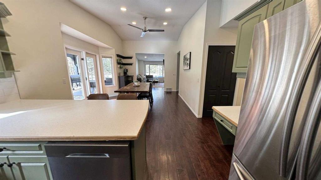 Private 2.94-acre treed acreage with direct access to the Red Deer River just steps from the edge of the property, all located minutes from Sundre. This well-maintained bungalow offers 5 bedrooms (3 up, 2 down) and 3 bathrooms, providing the perfect setup for families or those seeking space and privacy. The main floor features a bright, open layout with a spacious kitchen, vaulted ceilings, and a large primary suite complete with walk-in closet and ensuite. The fully finished basement includes a cozy wood-burning stove, large rec area, additional bedrooms, and a spacious craft/hobby room — ideal for projects, a home business, or extra workspace. A convenient wood chute from the garage to the basement makes heating efficient and hassle-free. Outside, the property is set up for true country living with a fully paved driveway, heated attached garage, and a detached heated garage complete with cabinets and shelving, offering excellent storage and workspace. An oversized shed, second driveway, and ample room for vehicles, toys, or equipment add even more functionality. A second driveway leads to a private rear camping and firepit area, perfect for entertaining, relaxing, or enjoying the outdoors. Additional features include a covered deck, RV parking space, and mature trees providing exceptional privacy. This acreage offers the perfect blend of peaceful rural living and convenient access to nearby amenities
