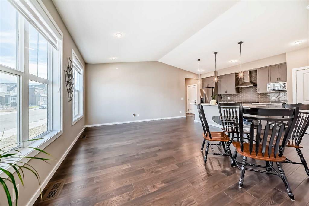 The ULTIMATE IN LUXURY BUNGALOW LIVING !!! CORNER UNIT with LOTS OF NATURAL LIGHT. This home features a STUNNING VAULTED CEILINGS and a MODERN STYLE KITCHEN. Master bedroom with large walk in closet and four piece Ensuite with full size shower and vanity with double sinks. Beautifully finished with REAL HARDWOOD FLOORS, gorgeous quartz counter top in the kitchen and Ensuite, triple pane windows as well as a fully upgraded kitchen complete with all stainless steel appliances. Minutes away from Deerfoot and Stoney trail, enjoy access to all amenities along with Livingston's world-class over 35,000 square feet of The Hub in Livingston for year round amenities exclusively for Livingston residents. Make this Bungalow your HOME today !