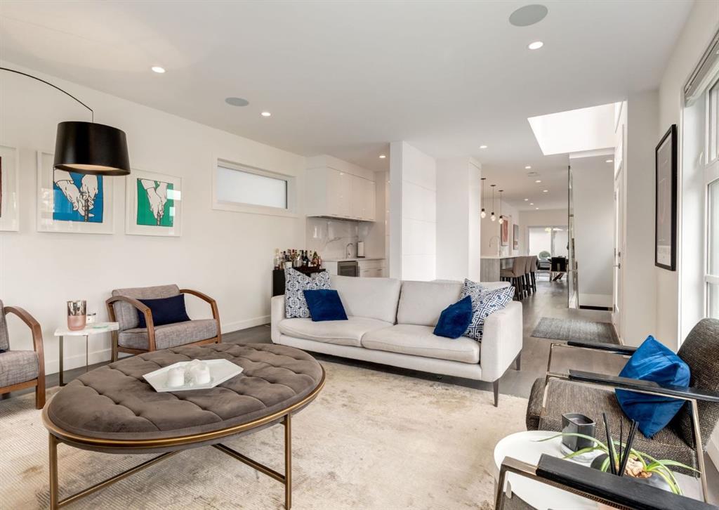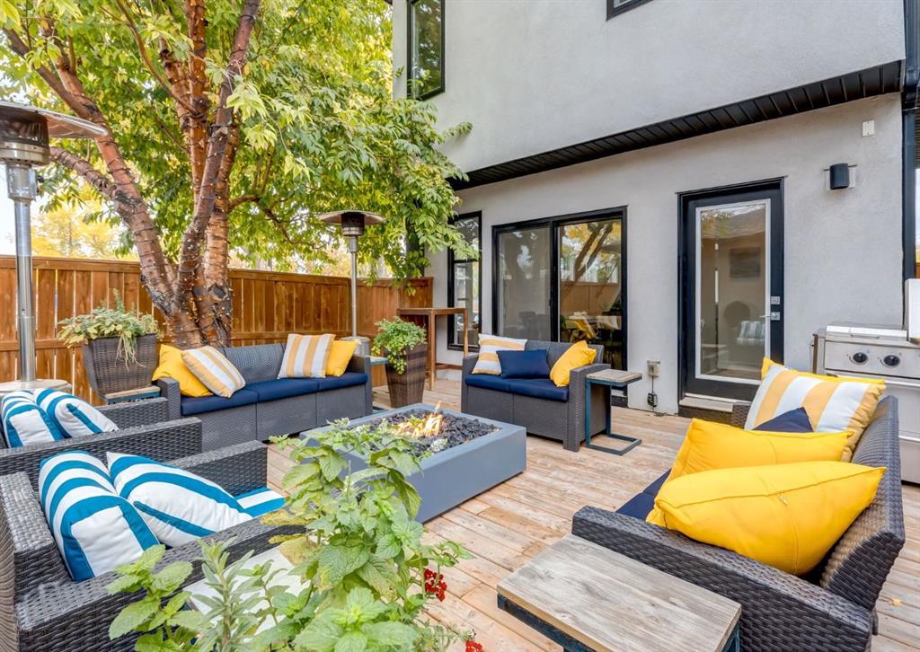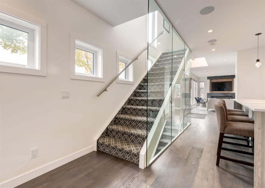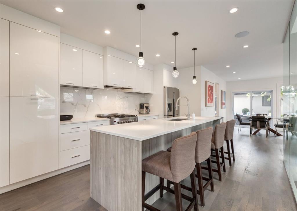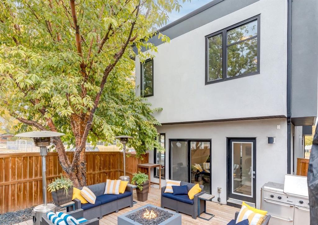 DETACHED HOME nestled on a quiet cul-de-sac in the heart of Richmond, this residence on a corner lot combines thoughtful design, a unique floor plan, and an unbeatable location. With parkside views and an abundance of natural light, this home is just steps to schools, public transit, and all the shops and restaurants of vibrant Marda Loop. The main floor is anchored by a full-width family room with custom fireplace millwork and a striking glass feature wall around the staircase. The chef’s kitchen offers a butler’s pantry, stainless steel appliances, a large gas range, quartz countertops, under-cabinet lighting, and a spacious dining room with patio doors that open onto the WEST-facing backyard. Here, a huge deck with gas lines for both BBQ and fire pit makes the perfect setting for entertaining. Upstairs, the primary retreat overlooks the green space with City skyline views. A large walk-in closet connects to the spa-inspired ensuite, complete with heated floors, dual vanities, soaker tub, curbless shower, and private water closet. Two additional bedrooms, a full guest bath, and a laundry room with sink complete this level. The fully developed lower level features a rec room with wet bar, a generous guest bedroom, sleek bathroom, and ample storage. Additional highlights include engineered hardwood flooring, ceiling speakers, built-in benches, custom millwork, air conditioning, and a fully insulated double garage with tire rack. Meticulously cared for by the original owners, this home is move-in ready. Floor plans and a 3D tour are readily available, providing a glimpse into this stylish home!