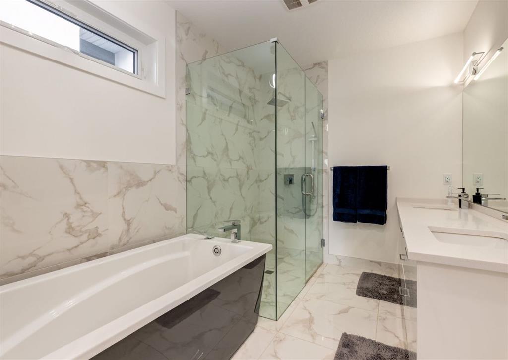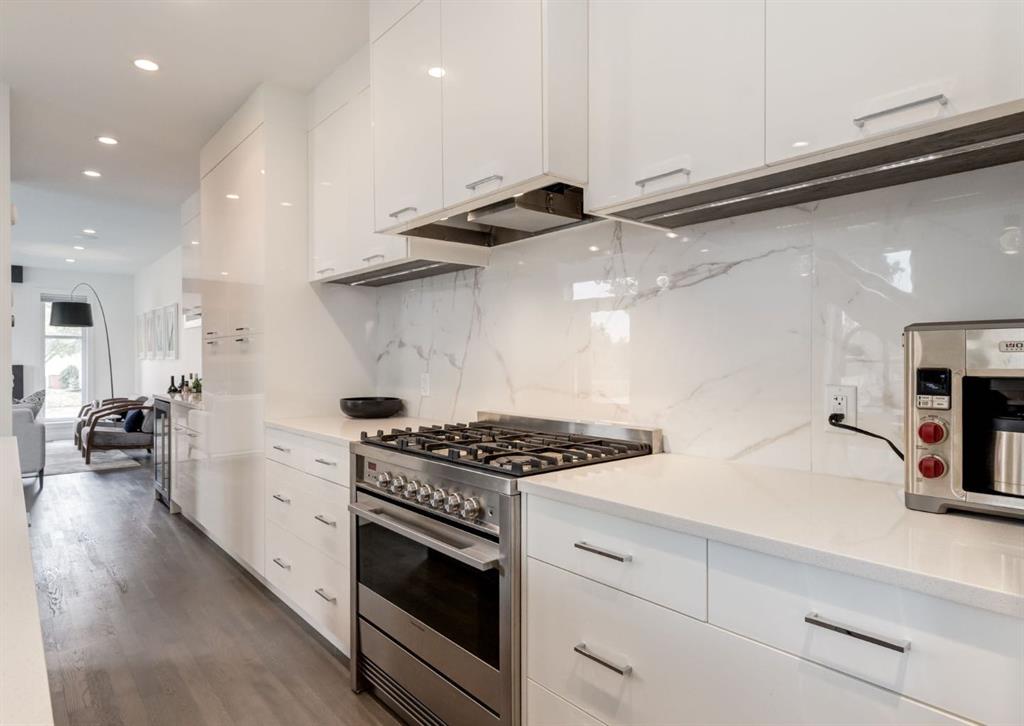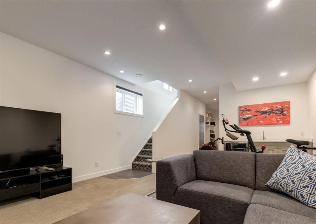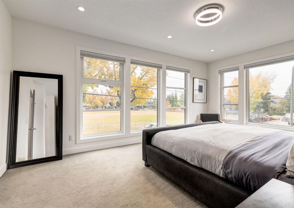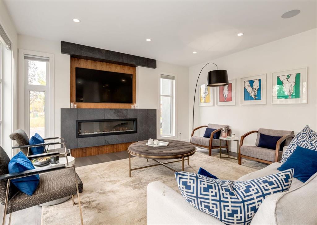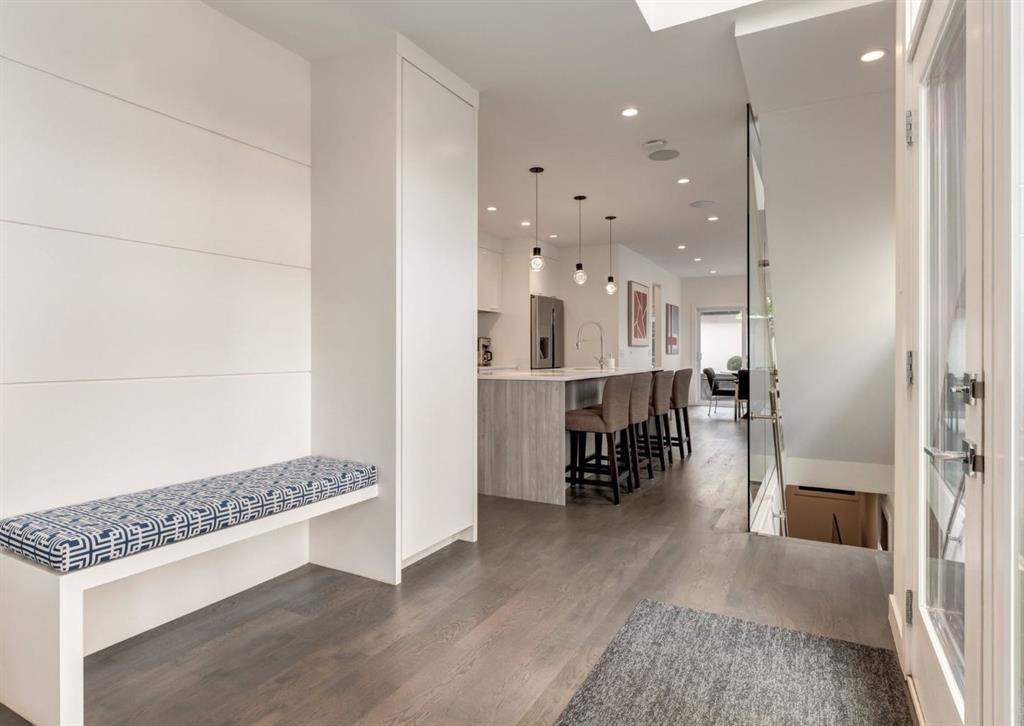 DETACHED HOME nestled on a quiet cul-de-sac in the heart of Richmond, this residence on a corner lot combines thoughtful design, a unique floor plan, and an unbeatable location. With parkside views and an abundance of natural light, this home is just steps to schools, public transit, and all the shops and restaurants of vibrant Marda Loop. The main floor is anchored by a full-width family room with custom fireplace millwork and a striking glass feature wall around the staircase. The chef’s kitchen offers a butler’s pantry, stainless steel appliances, a large gas range, quartz countertops, under-cabinet lighting, and a spacious dining room with patio doors that open onto the WEST-facing backyard. Here, a huge deck with gas lines for both BBQ and fire pit makes the perfect setting for entertaining. Upstairs, the primary retreat overlooks the green space with City skyline views. A large walk-in closet connects to the spa-inspired ensuite, complete with heated floors, dual vanities, soaker tub, curbless shower, and private water closet. Two additional bedrooms, a full guest bath, and a laundry room with sink complete this level. The fully developed lower level features a rec room with wet bar, a generous guest bedroom, sleek bathroom, and ample storage. Additional highlights include engineered hardwood flooring, ceiling speakers, built-in benches, custom millwork, air conditioning, and a fully insulated double garage with tire rack. Meticulously cared for by the original owners, this home is move-in ready. Floor plans and a 3D tour are readily available, providing a glimpse into this stylish home!