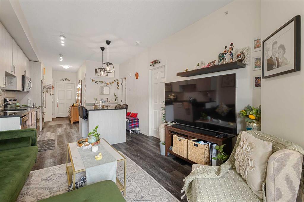 Welcome to Unit #2414 at 298 Sage Meadows Park NW — a beautifully designed top-floor condo built in 2020, nestled in the desirable northwest community of Sage Hill. This modern, move-in ready home offers 2 spacious bedrooms, 1 full bathroom, and stunning East-facing views of the peaceful pond and surrounding park. Inside, you'll find a bright, open-concept layout featuring 9’ ceilings, durable Luxury Vinyl Plank flooring throughout, and an abundance of natural light from oversized windows. The stylish kitchen is a true highlight, equipped with sleek quartz countertops, full-height cabinetry, stainless steel appliances, and a large island with seating—perfect for cooking, entertaining, or enjoying takeout nights. The living area flows seamlessly off the kitchen, offering a cozy space to relax and unwind. Step out onto your private balcony to enjoy your morning coffee with tranquil water views. The primary bedroom features a generous walk-in closet, while the second bedroom offers versatility for guests, a home office, or even a roommate setup. A well-appointed 4-piece bathroom is conveniently located nearby. Additional features include in-suite laundry, titled surface parking, and a storage locker—ideal for seasonal items, sports gear, or extra storage. This well-managed building offers access to scenic walking paths, green spaces, and nearby ponds and parks, all just steps from your door.