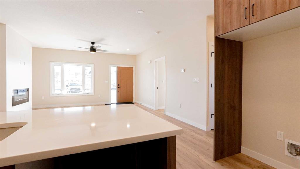 Welcome to Parkview Crescent, Bow Island’s newest subdivision, contemporary design meets small-town charm. This brand-new 1,070 sq. ft. south-facing home, built by JAYCO, is part of a thoughtfully designed four-plex offering an easy, low-maintenance lifestyle with no condo fees—ideal for downsizers, first-time buyers, or young families. Step inside to a bright, open-concept main floor featuring a stylish electric fireplace, spacious kitchen, and a functional dining area perfect for everyday living or entertaining. The main level offers two bedrooms, including a comfortable primary suite complete with a 4-piece ensuite. Enjoy flexible laundry options with the choice of main floor or basement setup. Built with an ICF foundation, this home delivers excellent energy efficiency and long-term durability. The attached heated single garage adds year-round convenience, while the undeveloped basement provides a blank canvas to create additional living space tailored to your needs. As an added bonus, take advantage of a $7,500 property tax credit offered by the Town of Bow Island. Move-in ready and built for modern living—this is your opportunity to enjoy the benefits of a brand-new home in a welcoming community. Some photos have been virtually staged and are not of this exact unit.