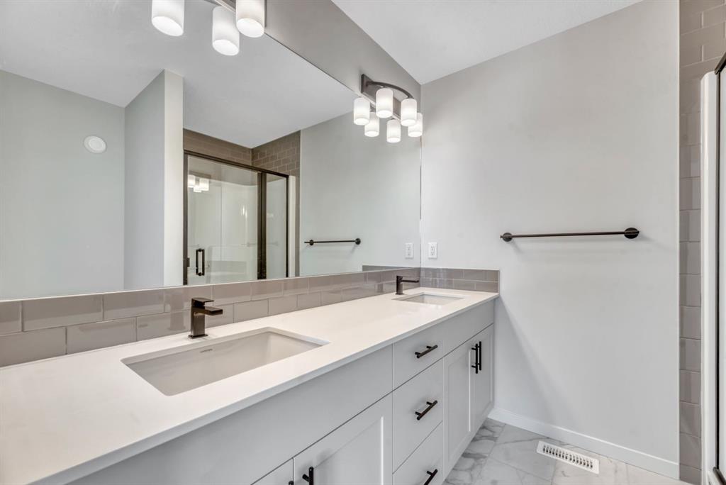 Welcome to this brand new MORRISON HOMES 1,364 sq. ft, Indigo II model home in Glacier Ridge, thoughtfully designed for modern living and future flexibility. Featuring 3 bedrooms, 2.5 bathrooms, and a sunny North West-facing backyard, this home offers a bright, functional layout in a growing, family-friendly community. The main floor showcases upgraded laminate flooring, and an open-concept great room anchored by a sleek electric fireplace, creating a warm and inviting space to relax or entertain. The gourmet kitchen is a standout with quartz countertops, stainless steel appliances, stylish cabinetry, and plenty of prep space with a spacious island —perfect for everyday living and hosting alike. Upstairs, you’ll find upgraded carpet, a spacious primary retreat with a private ensuite featuring quartz counters, dual sinks and shower, plus two additional bedrooms and a full bathroom—ideal for families, guests, or a home office setup. Washer and dryer are included for added convenience upstairs. The home also features an Exterior Side Entry, 9’ foundation, rough-ins for a future secondary studio suite (with City of Calgary permits and approvals), offering excellent potential for added value or income opportunities. Step outside to enjoy the 10’ x 10’ deck with stairs to grade, complete with a gas line for a future BBQ, and a 20’ x 22’ concrete parking pad ready for your finishing touch. Ideally located close to parks, the community centre, and quick access to 144 Avenue, this home blends comfort, style, and smart planning in one exceptional package. A fantastic opportunity to own brand new in Glacier Ridge—move in and make it yours.